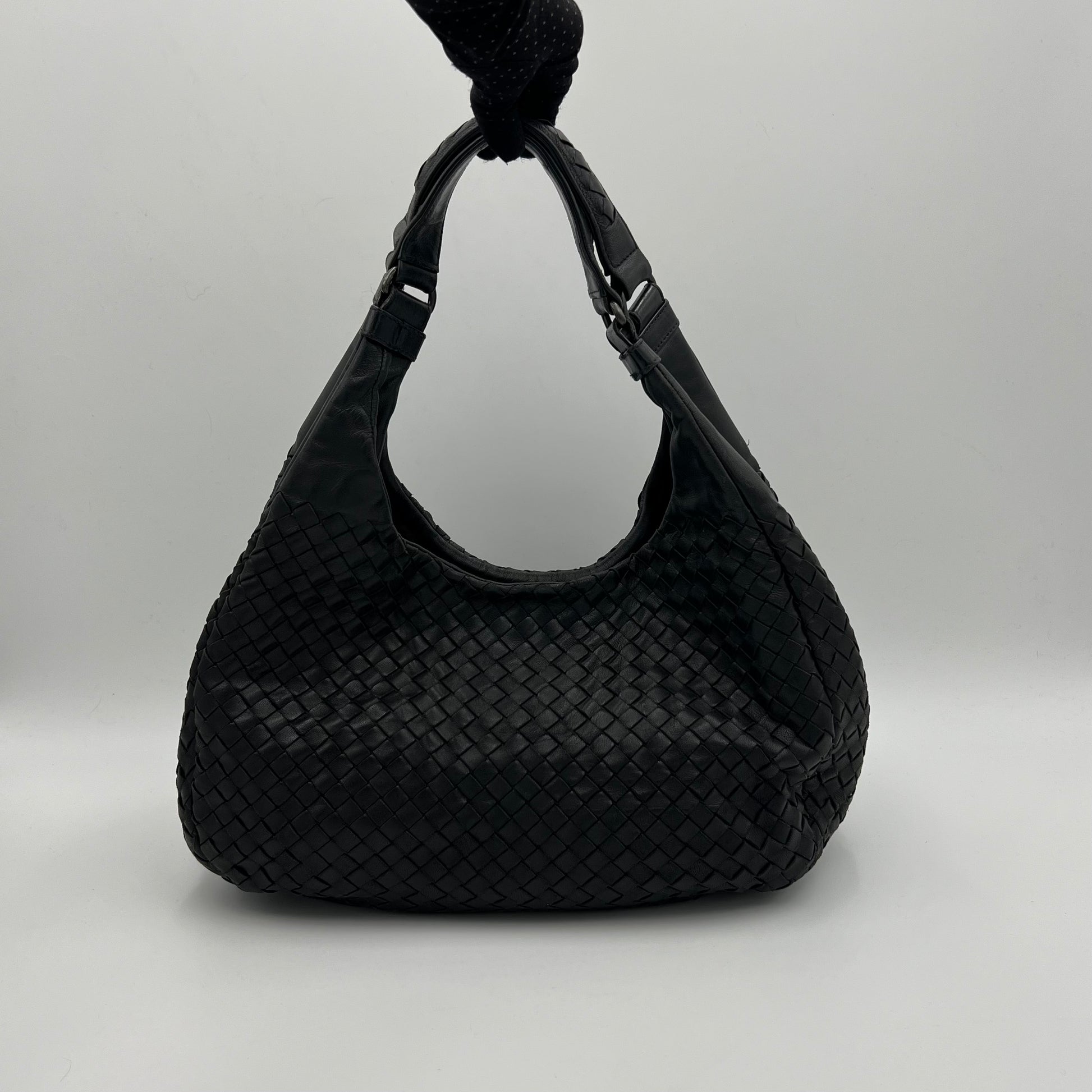 Bottega Veneta Black Intrecciato Campana Hobo Bag