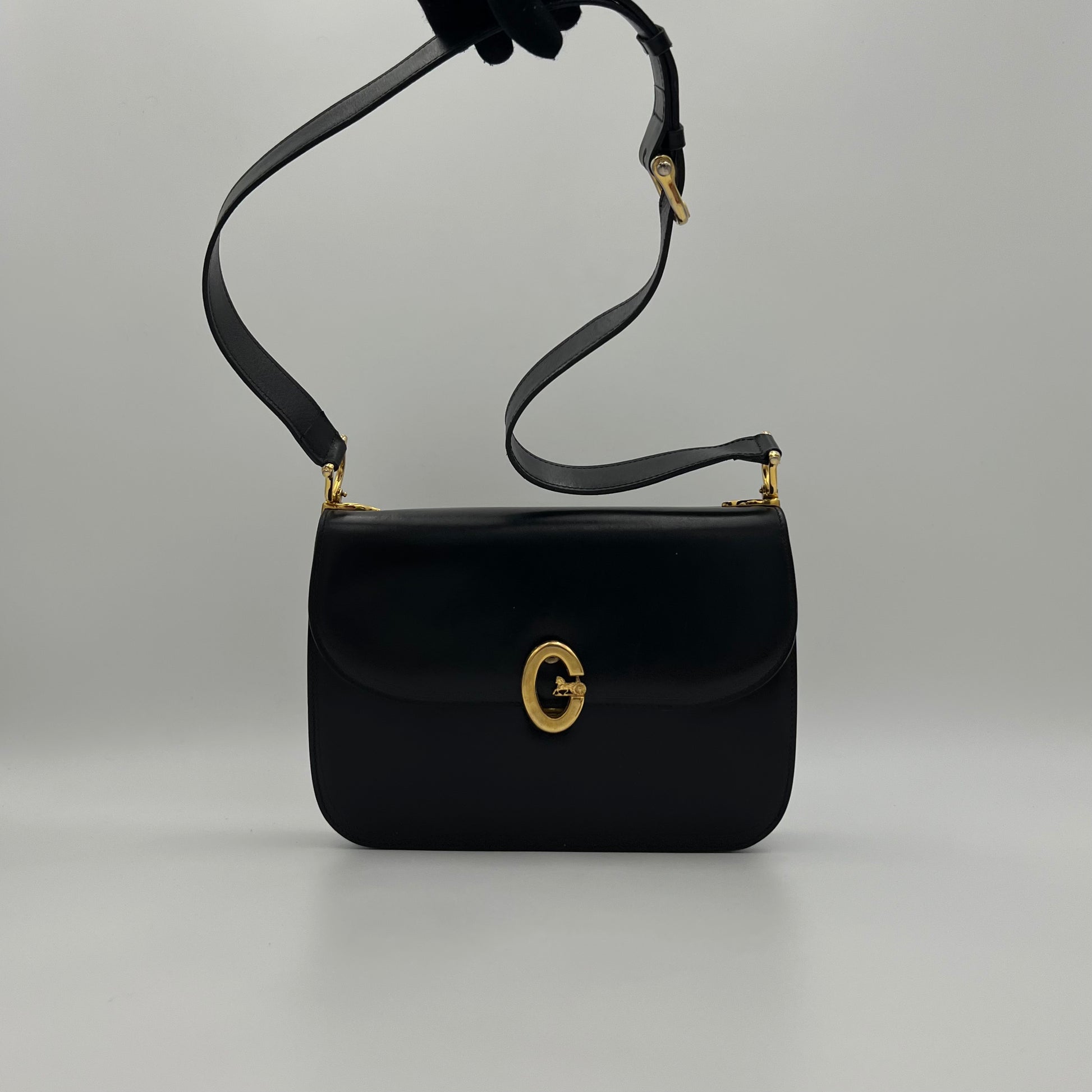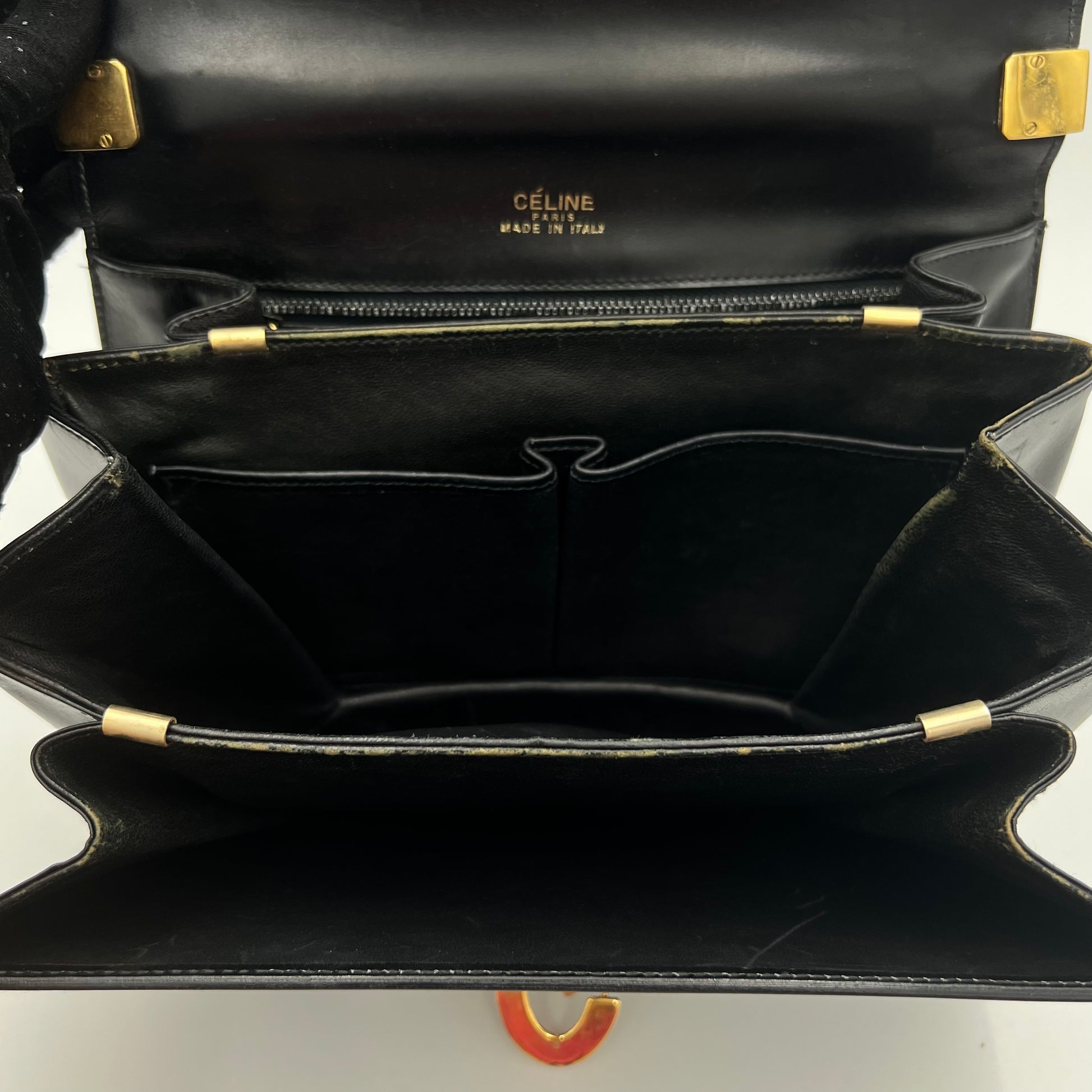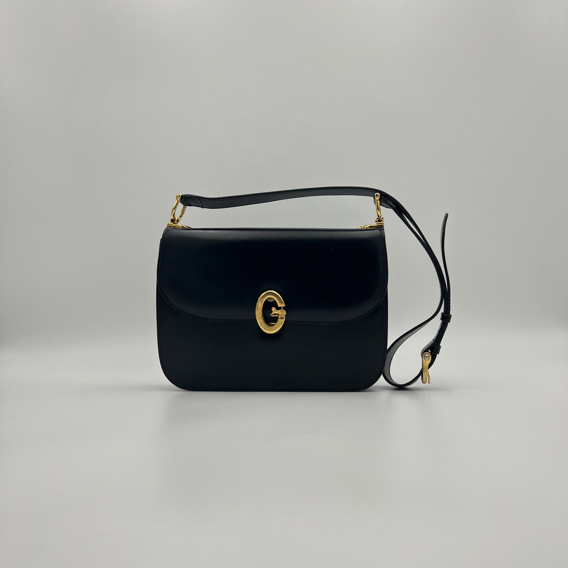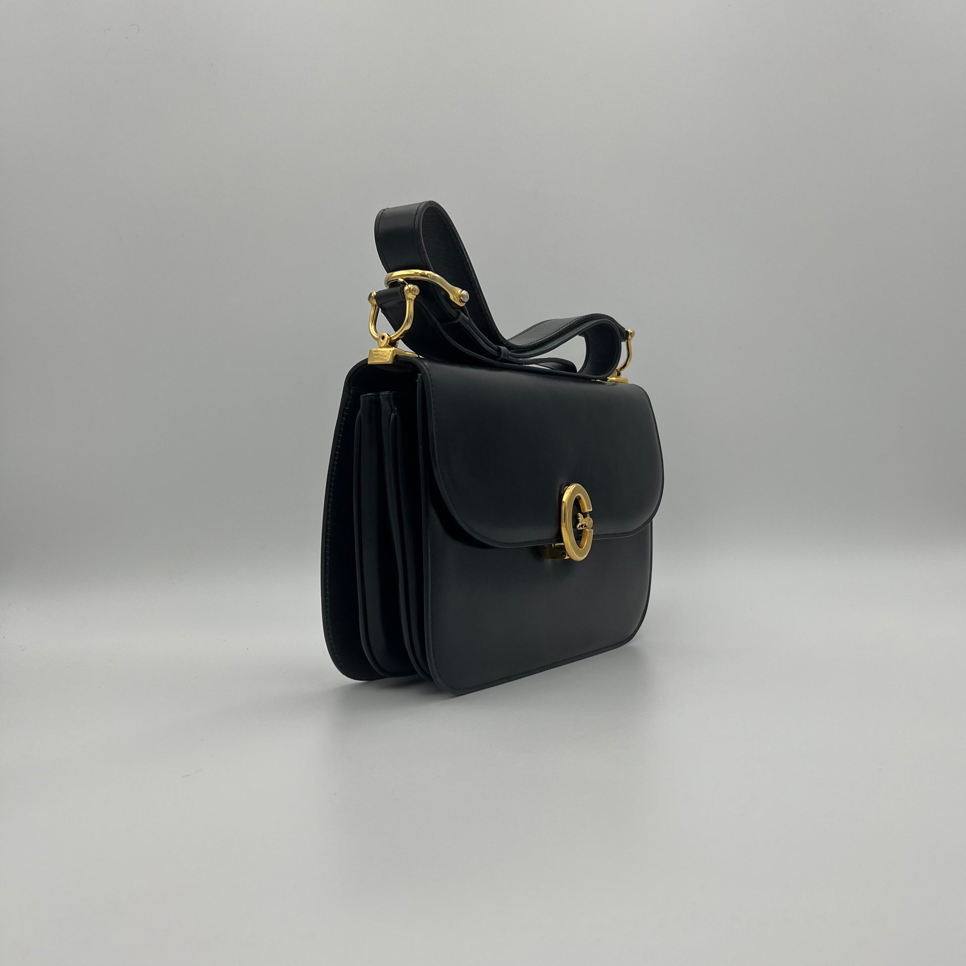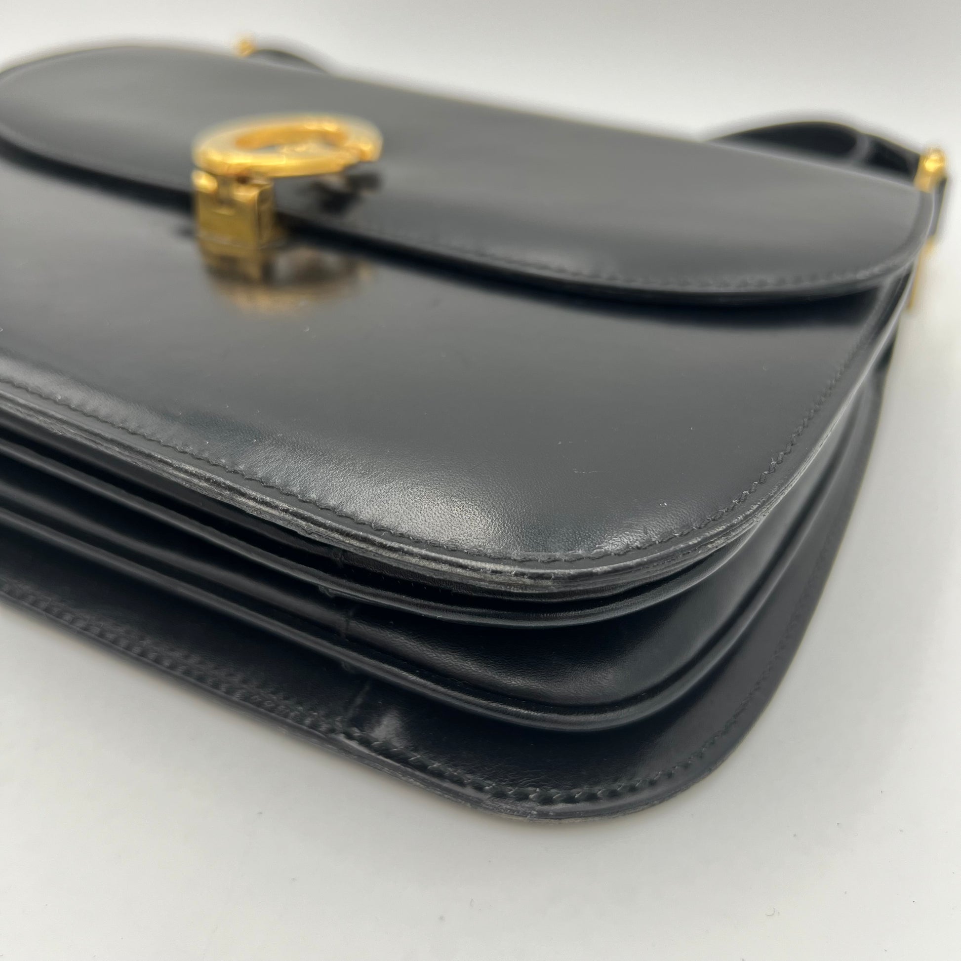 Celine Paris Black Leather C Horse Carriage Box Bag