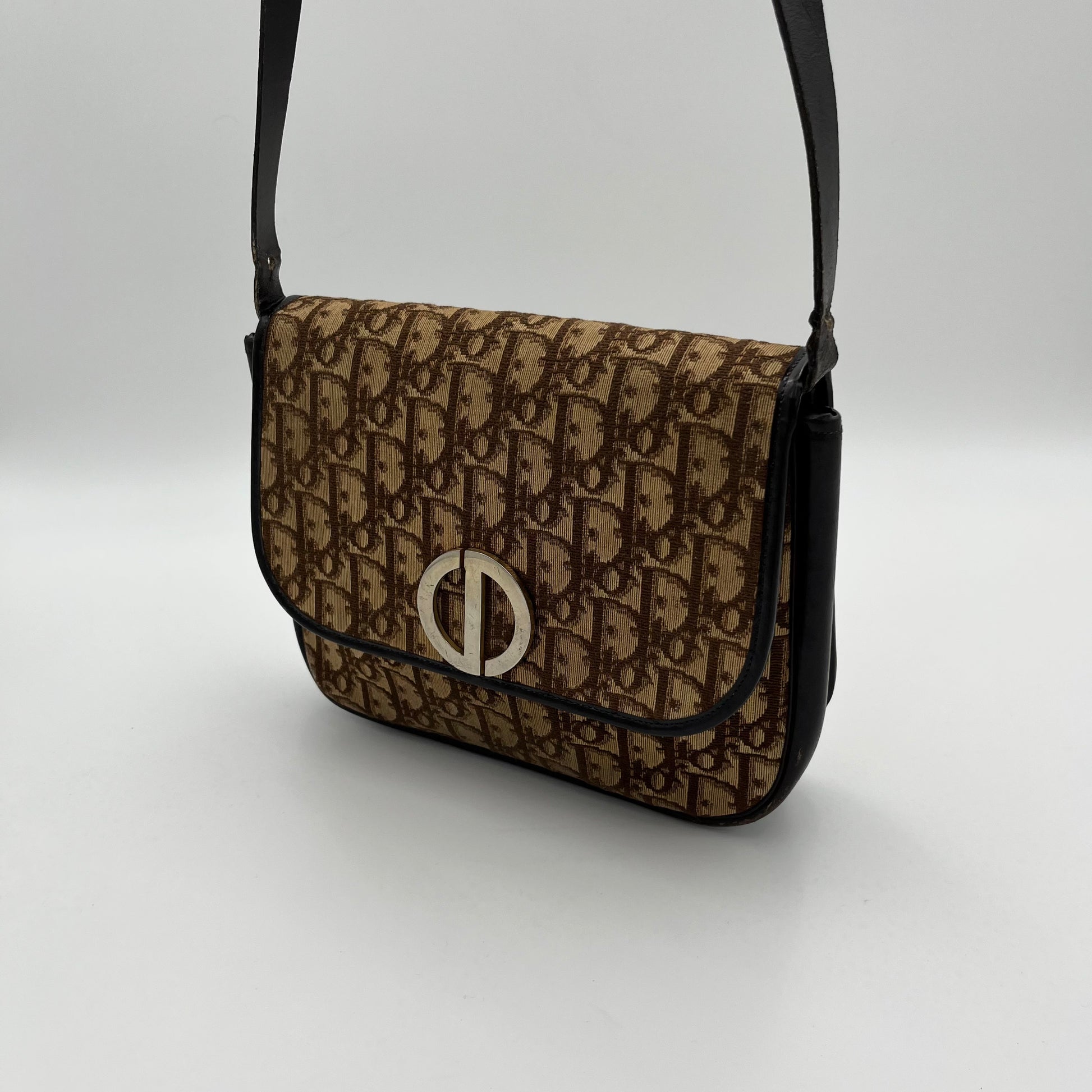 Christian Dior Vintage Brown Oblique Canvas Flap Shoulder Bag