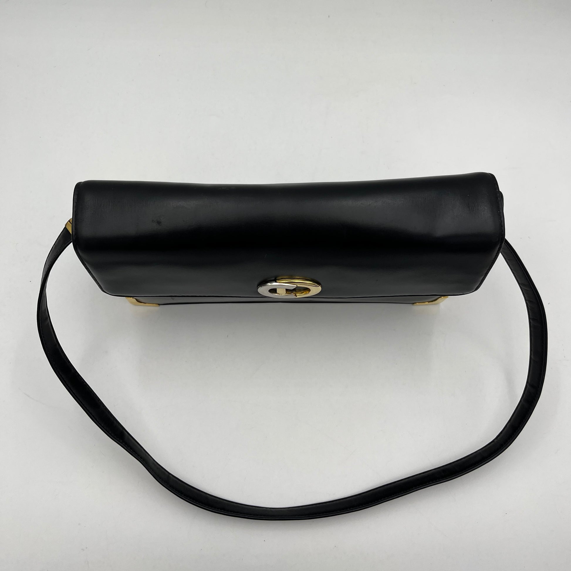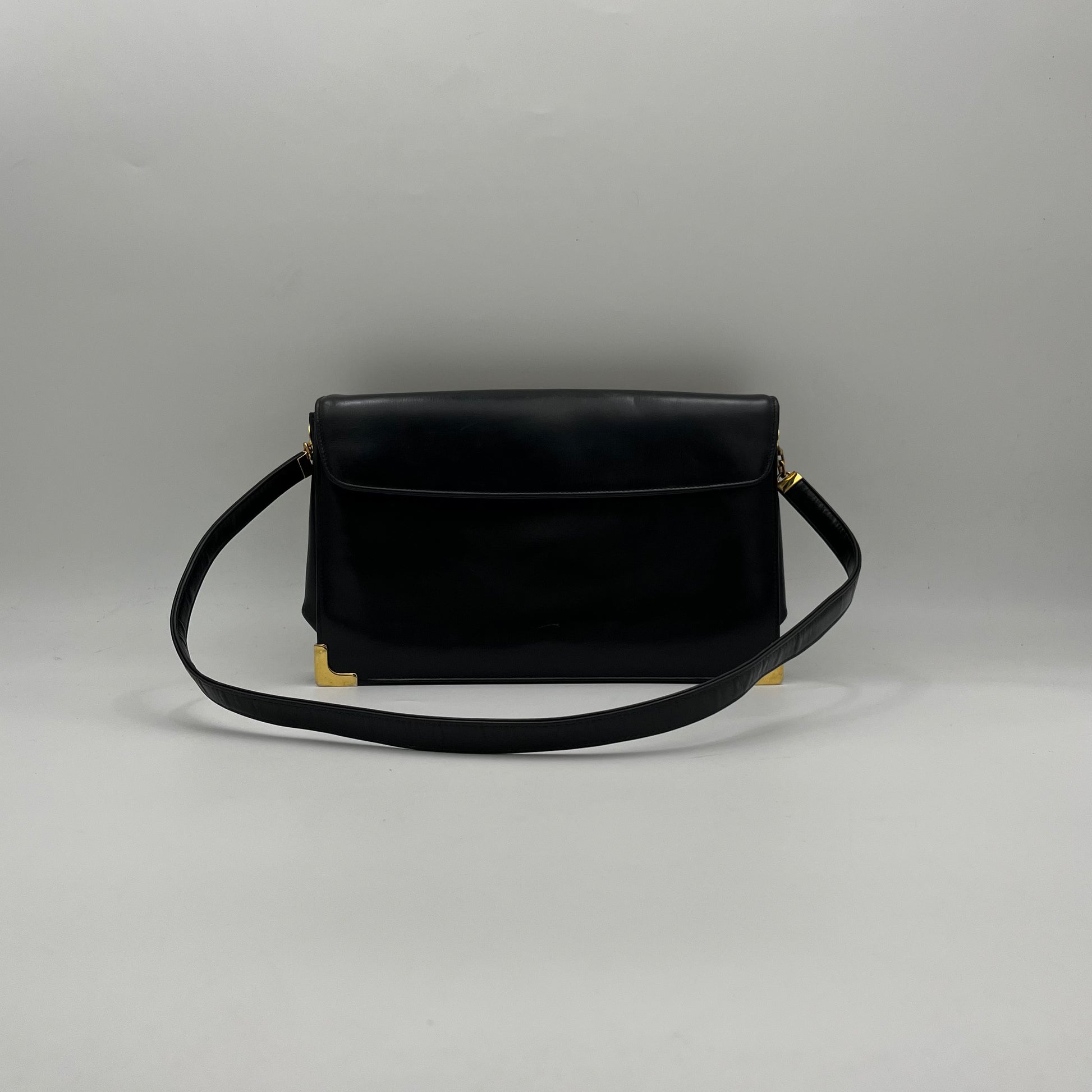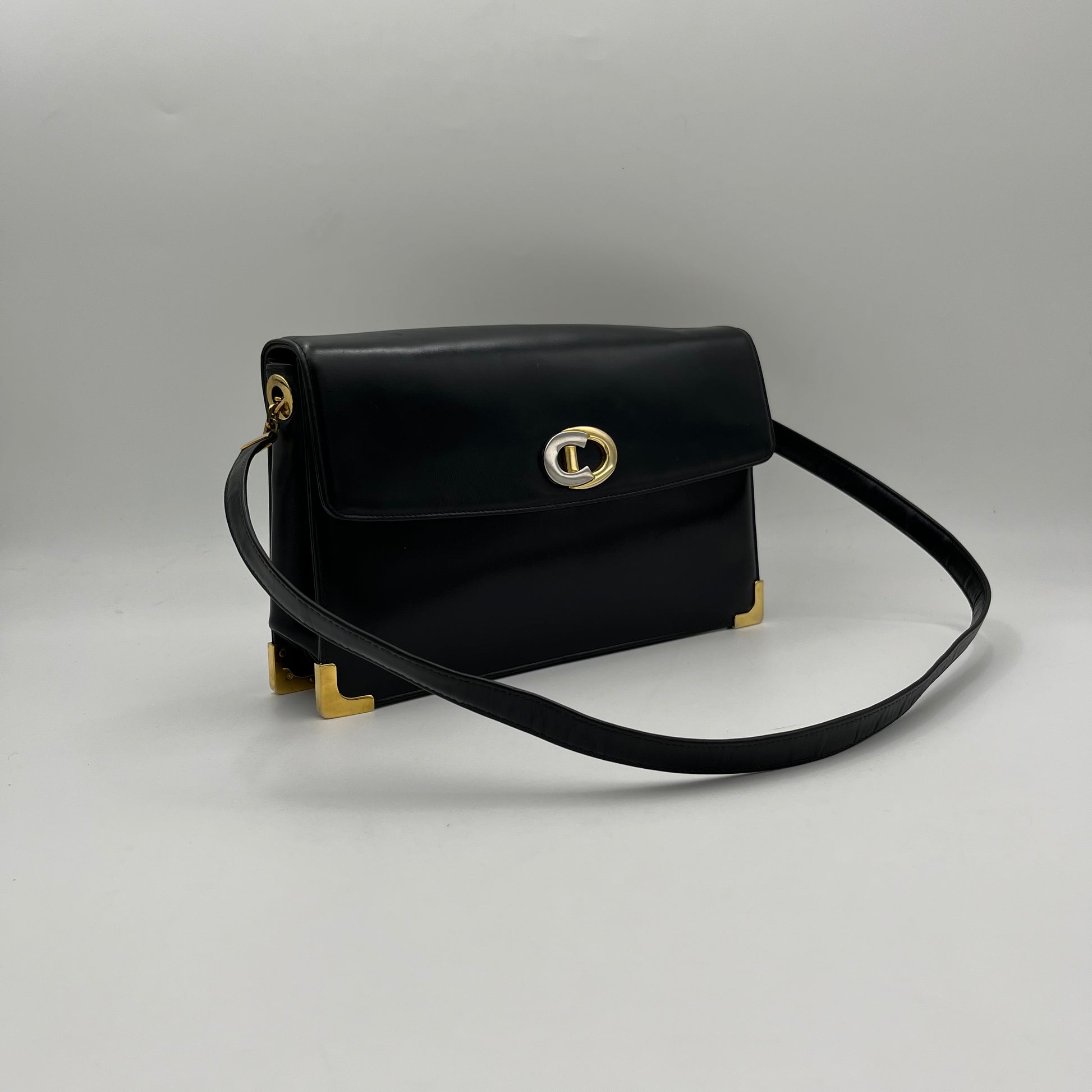 Christian Dior Vintage CD Logo Black Leather Flap Shoulder Bag