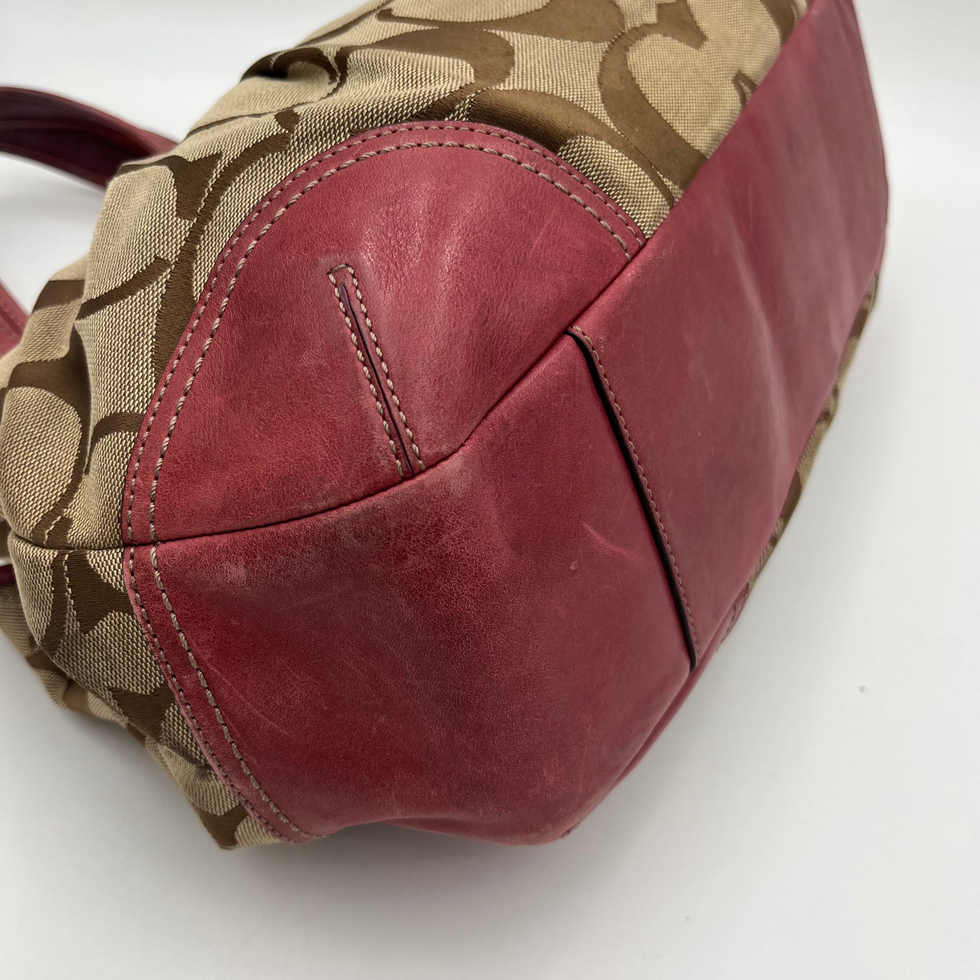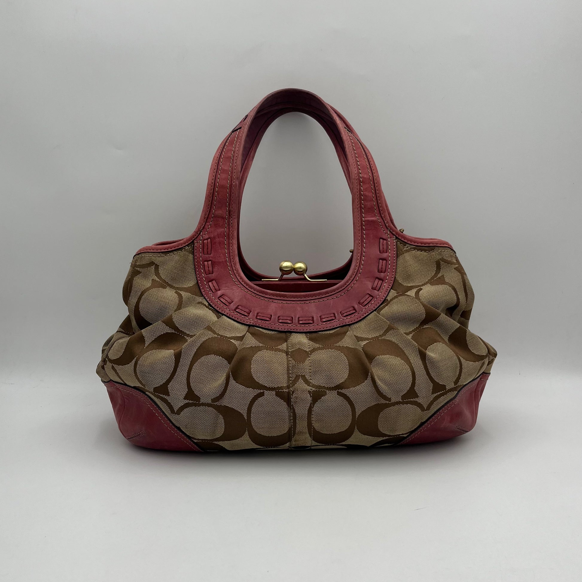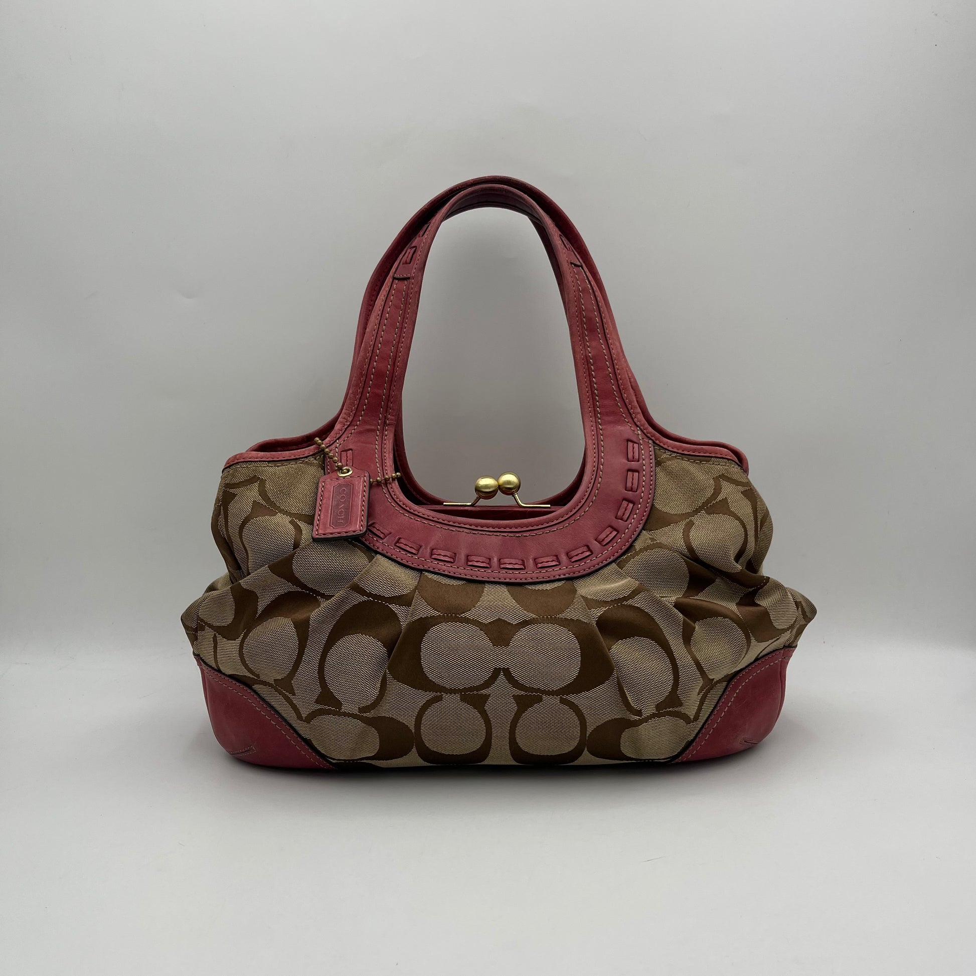 Coach Brown Big C Signature Canvas Pink Leather Large Ergo Shoulder Bag