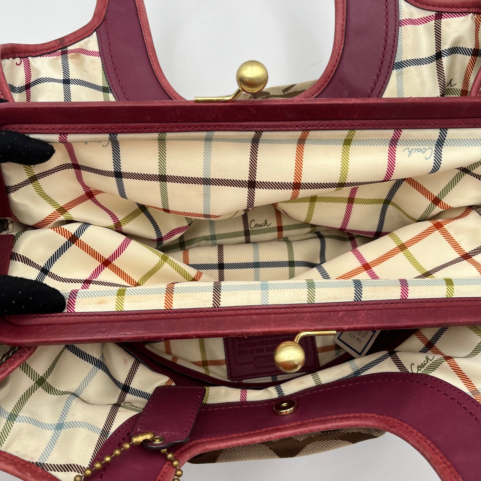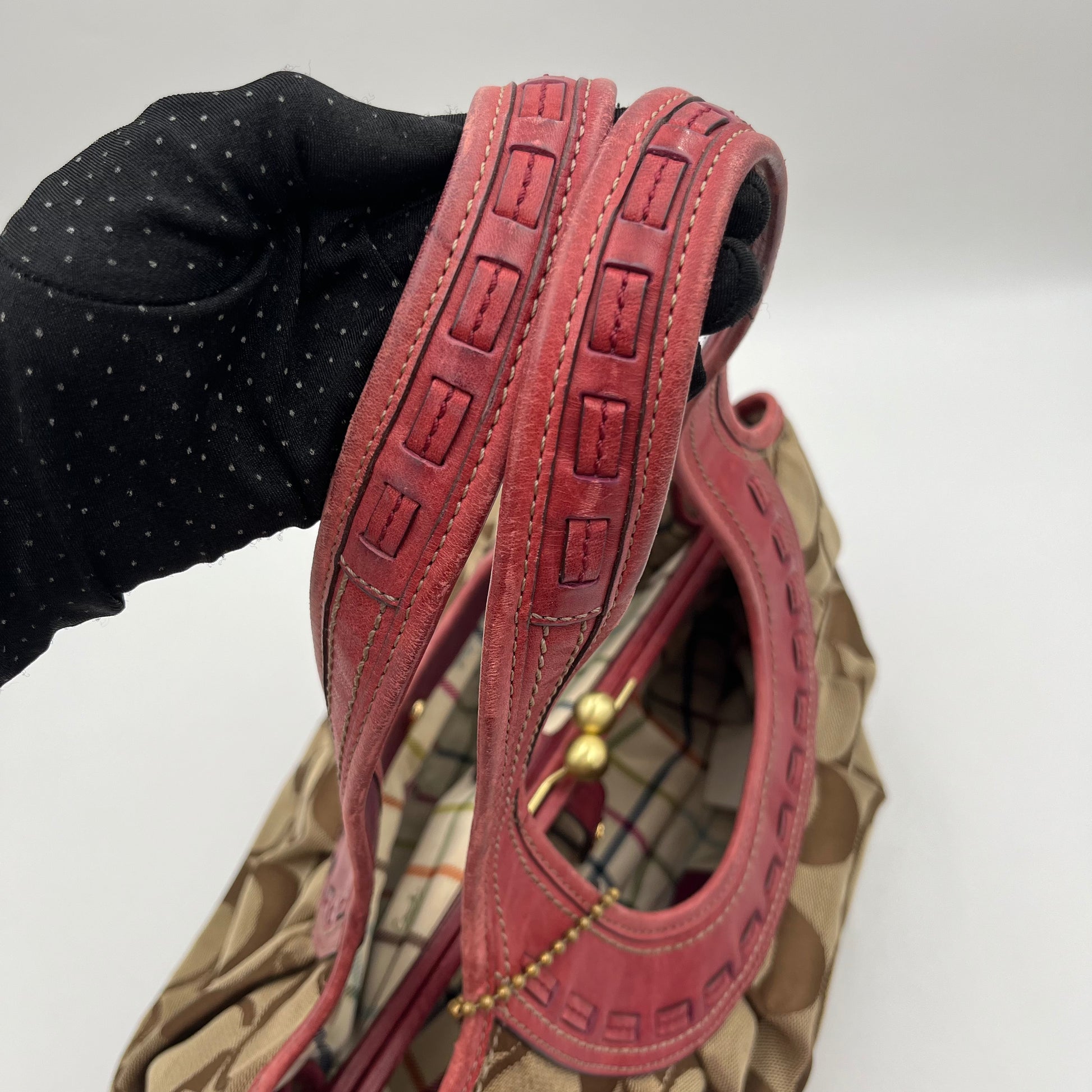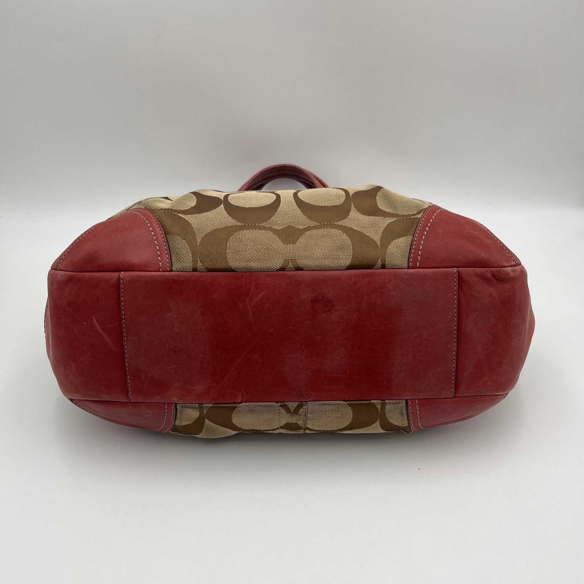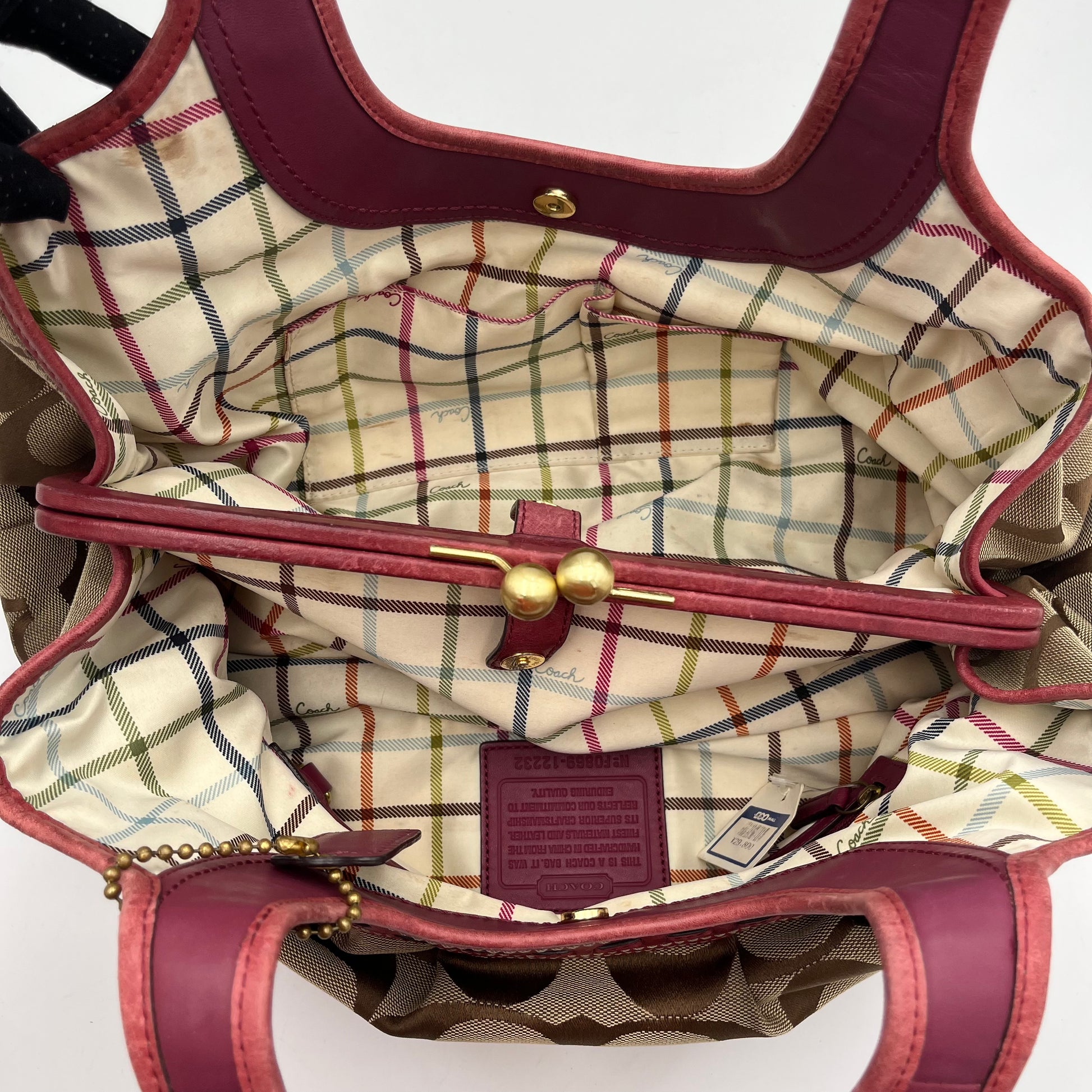 Coach Brown Big C Signature Canvas Pink Leather Large Ergo Shoulder Bag