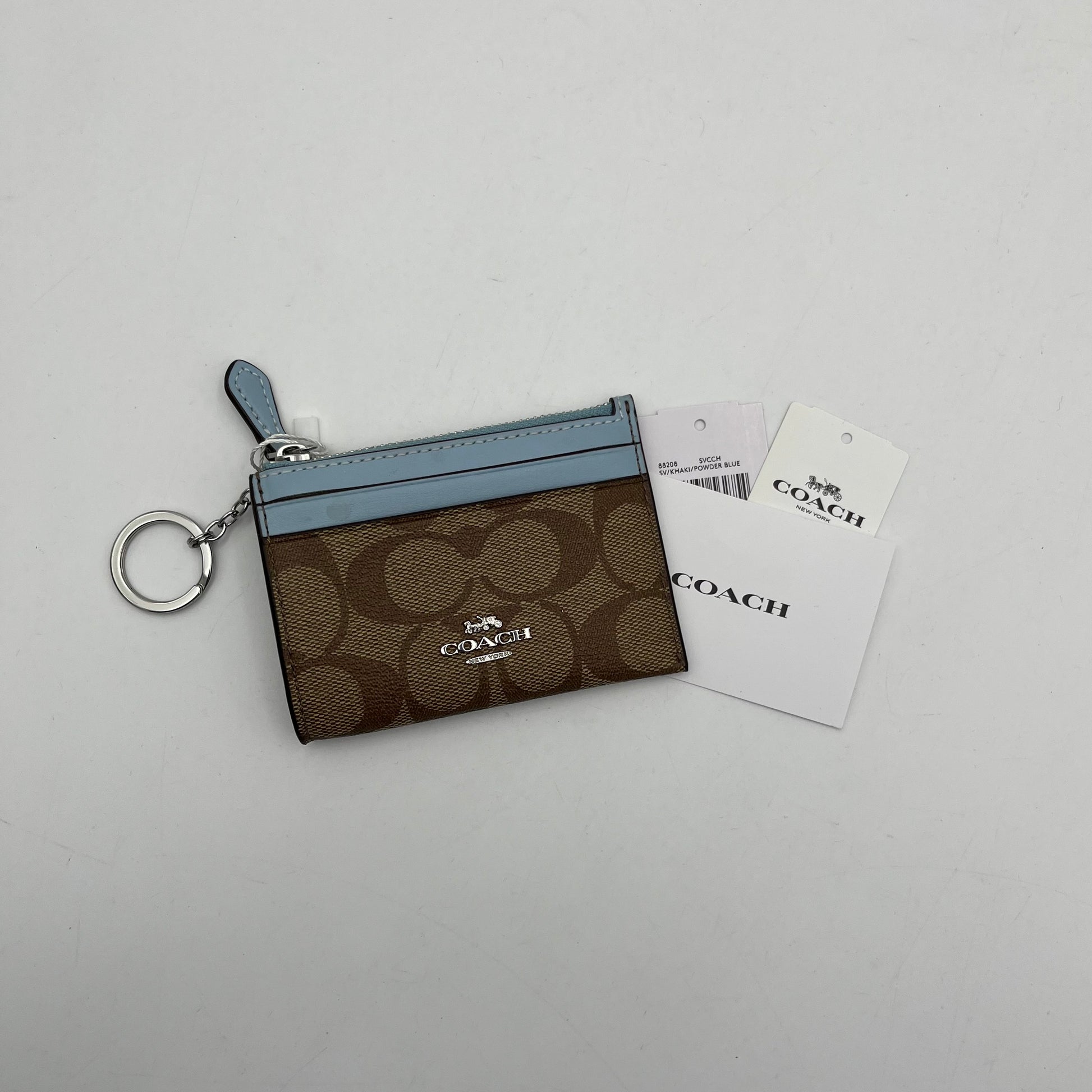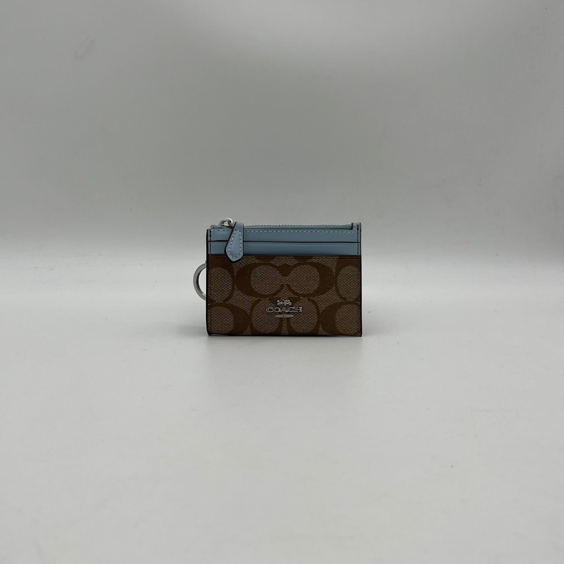 Coach Brown Signature Light Blue Leather Cardholder BNWT