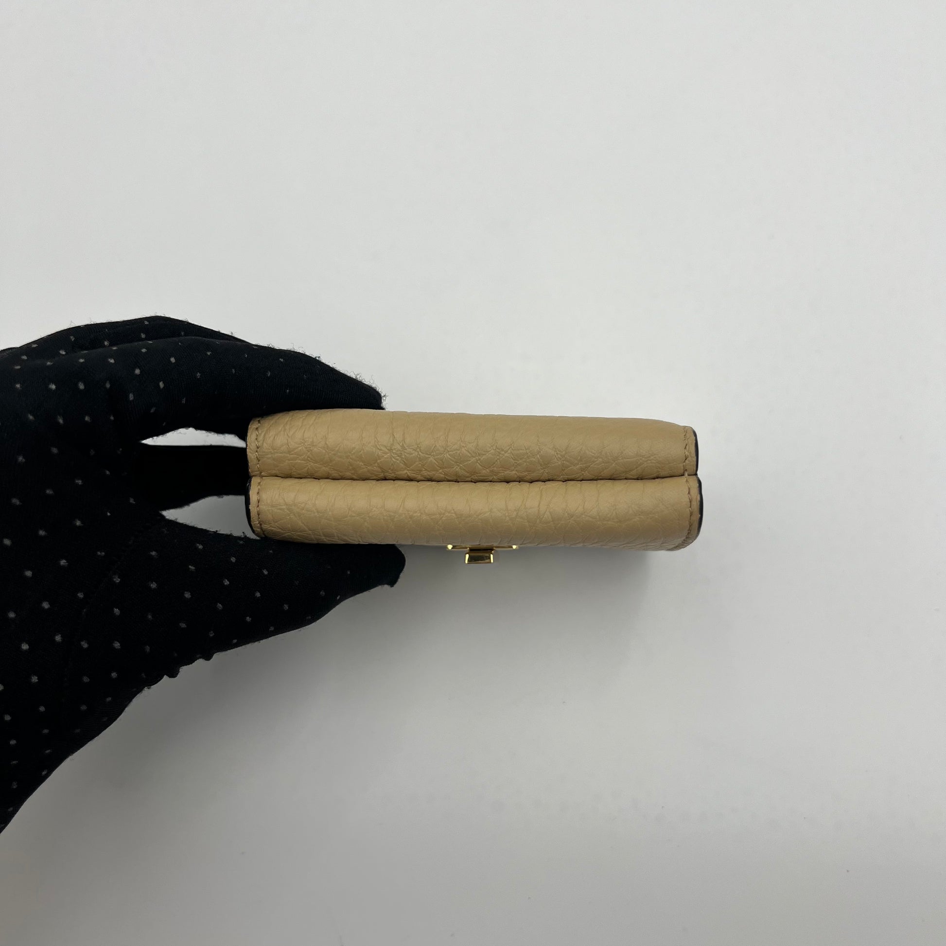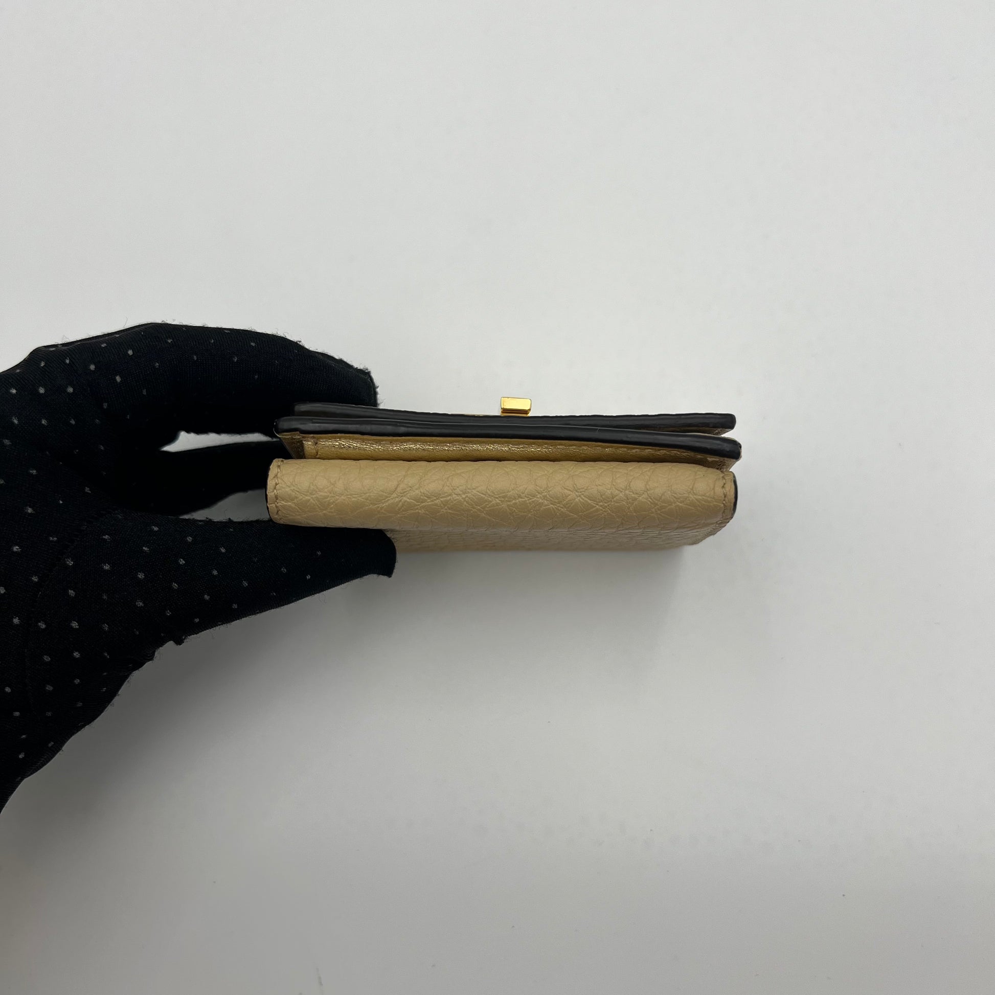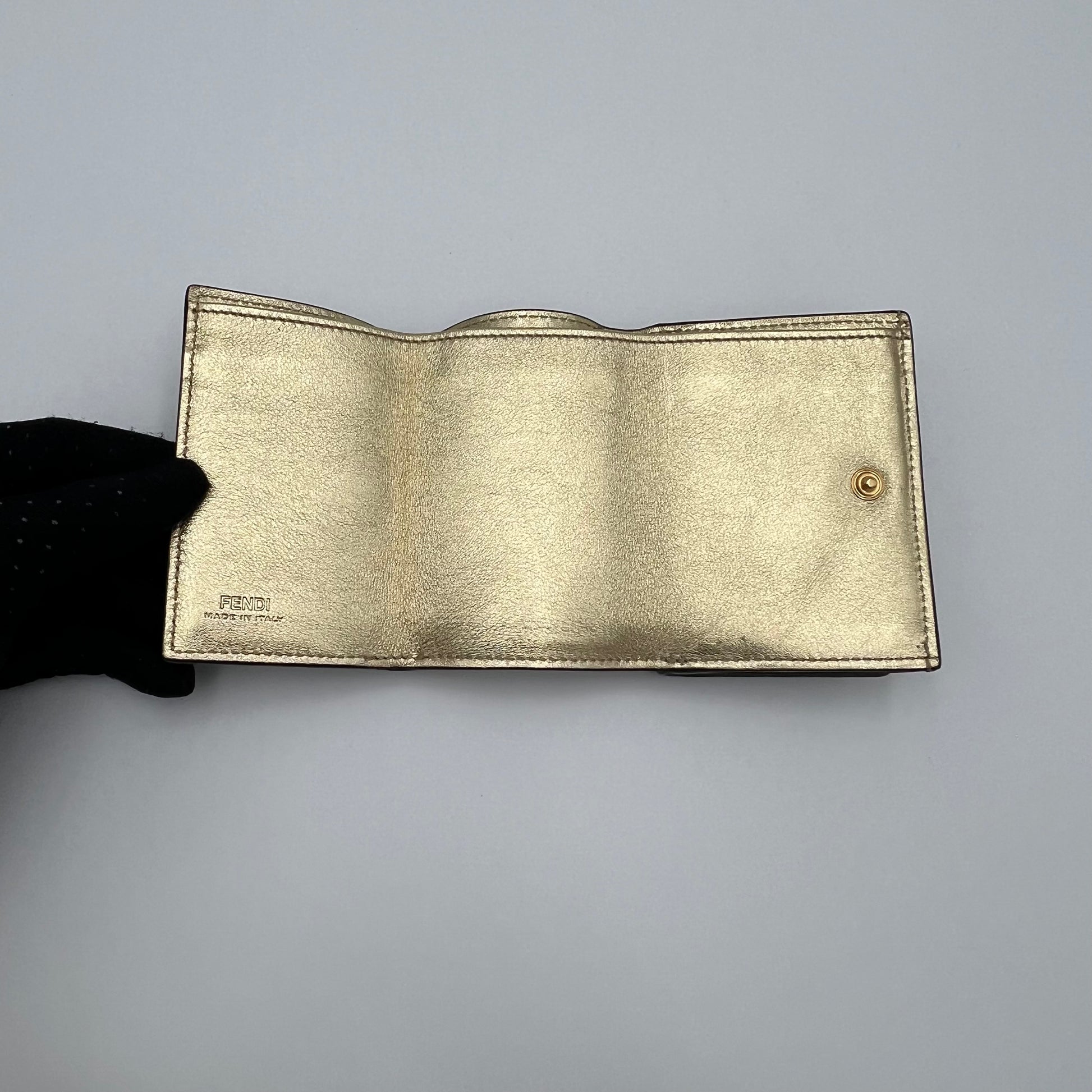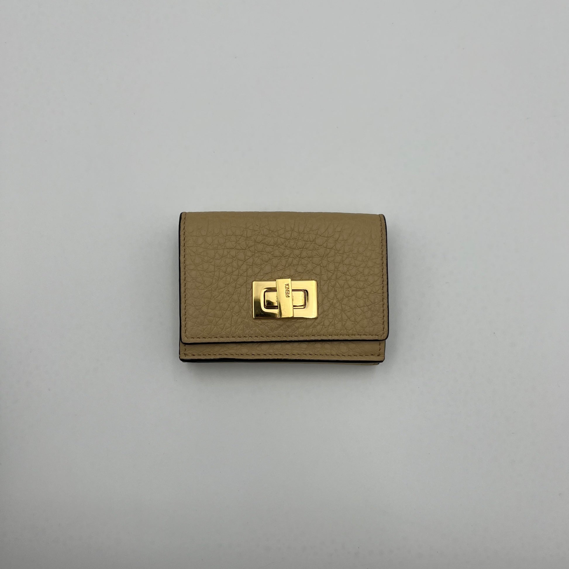 Fendi Beige Leather Peekaboo Mini Trifold Wallet