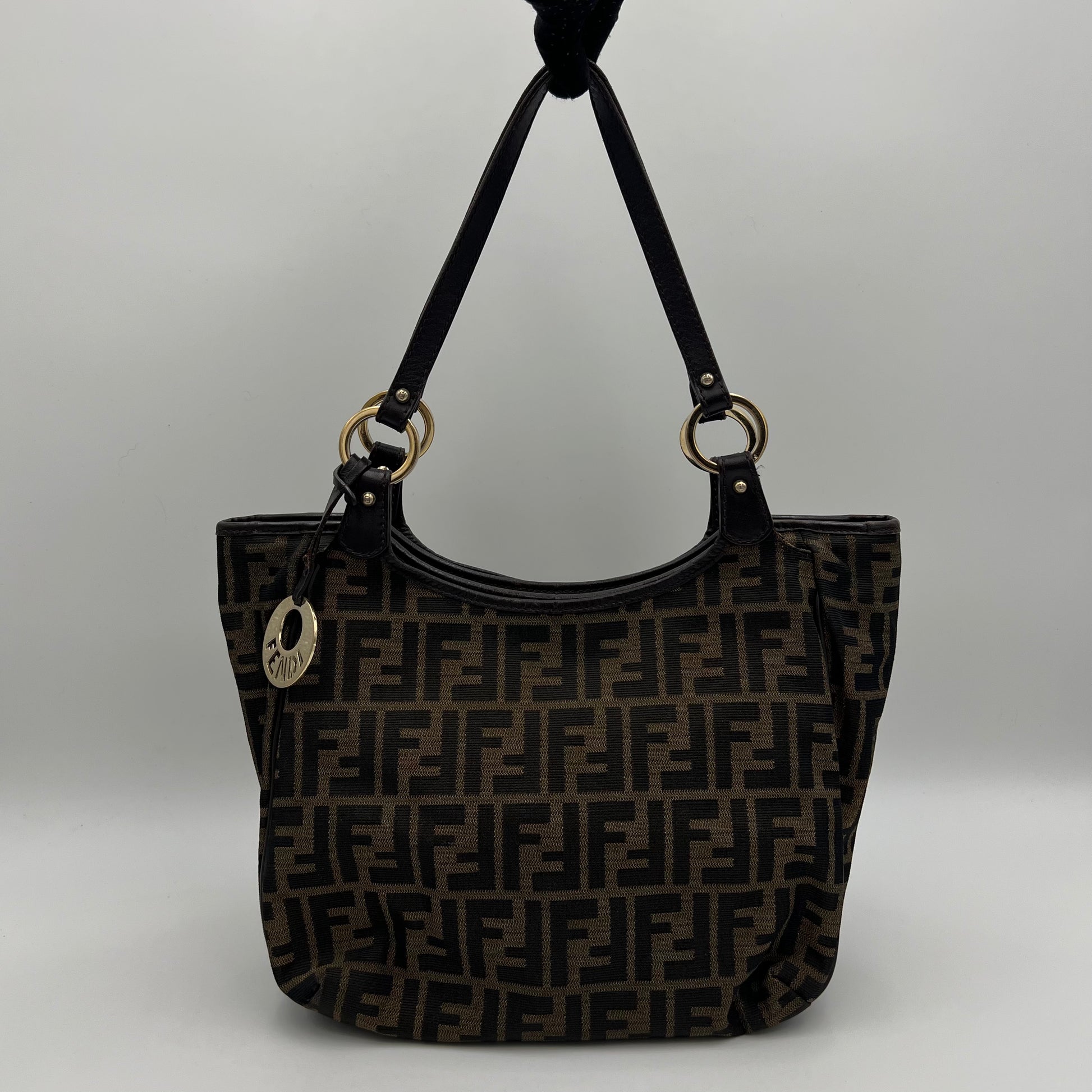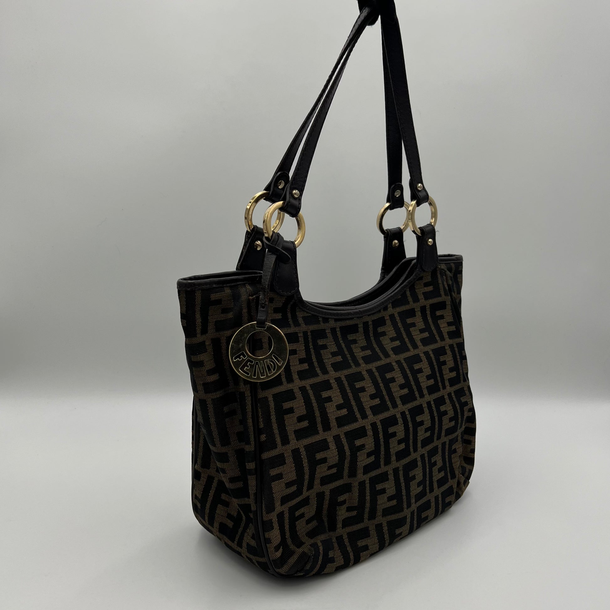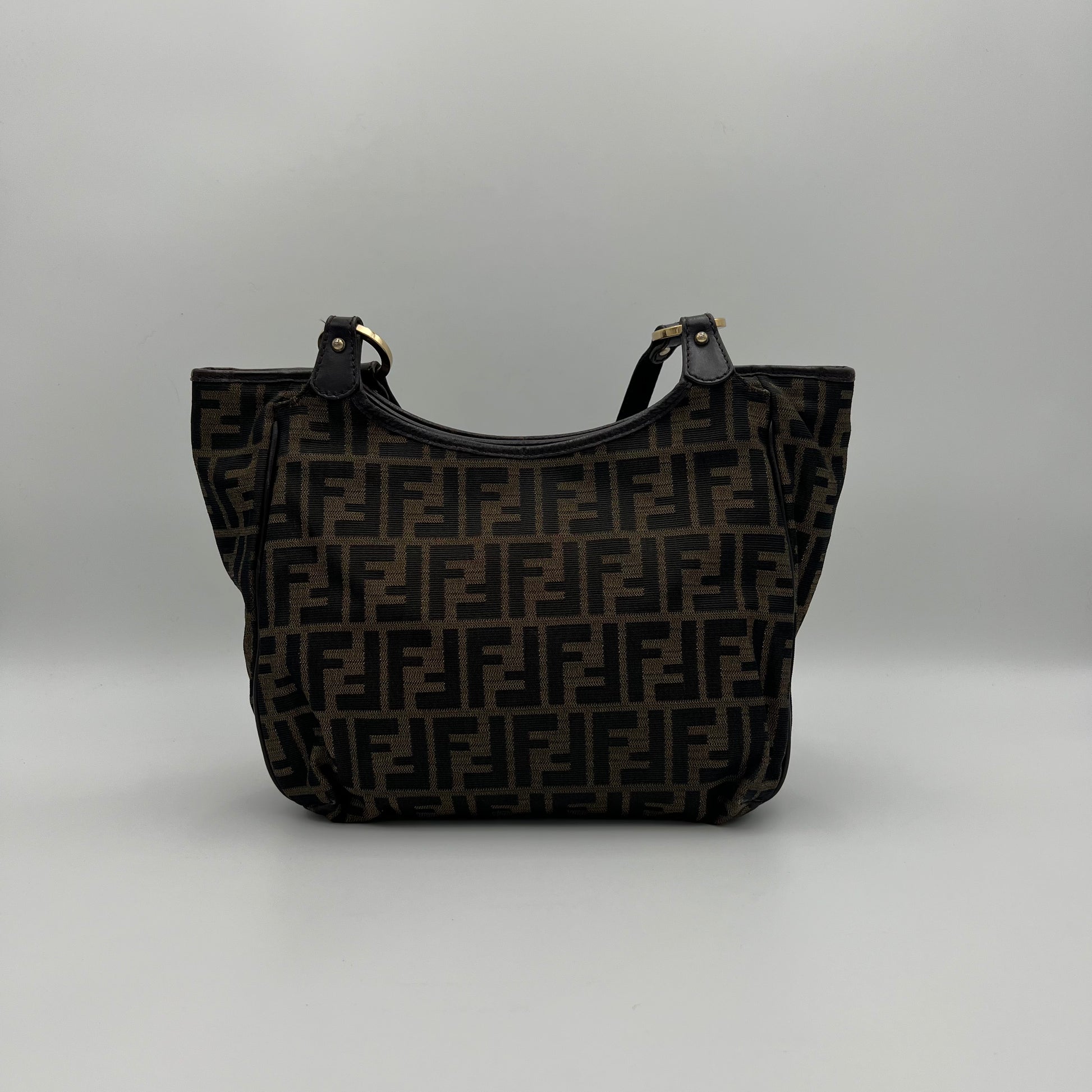 Fendi Black Zucchino Canvas and Leather Chef Hobo Shoulder Bag
