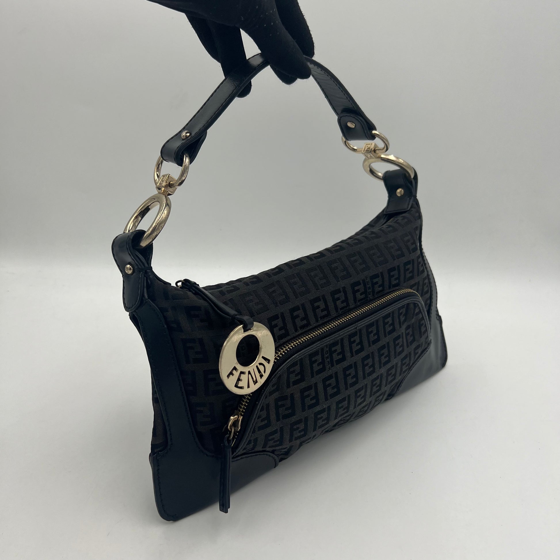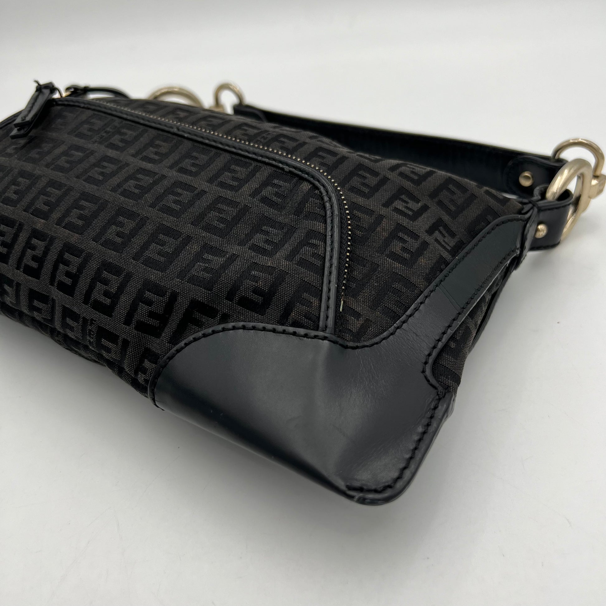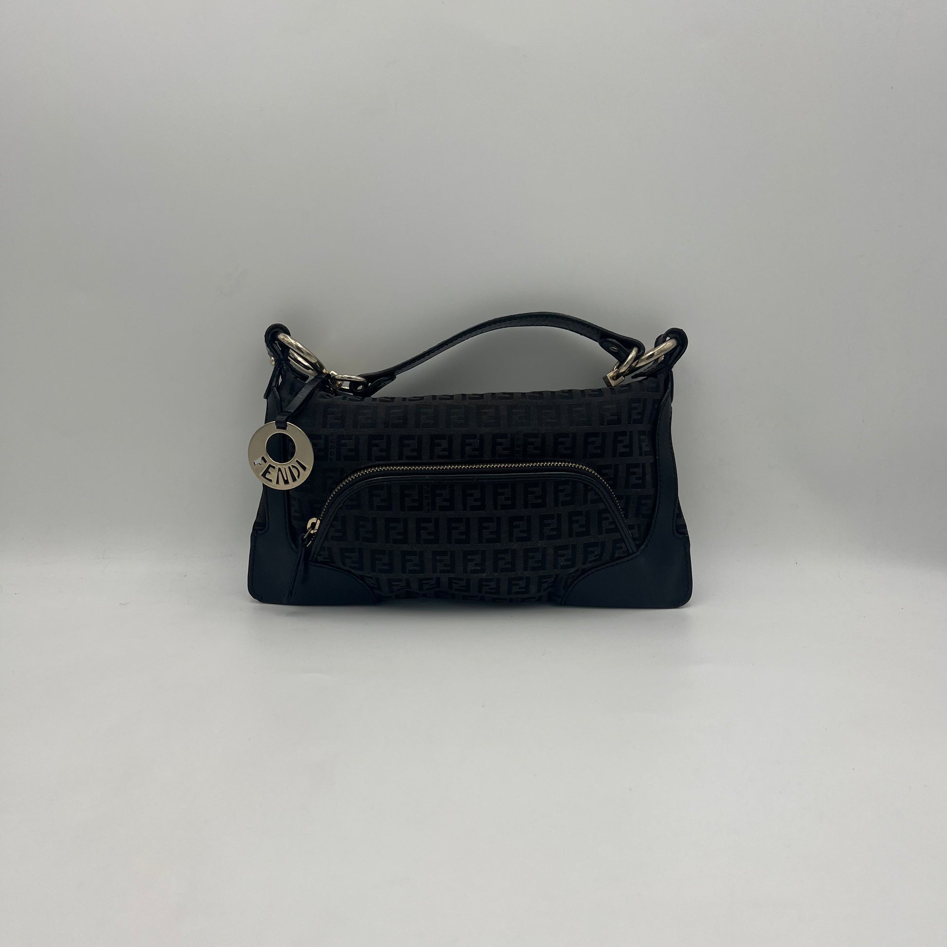 Fendi Black Zucchino Logo Charm Shoulder Bag