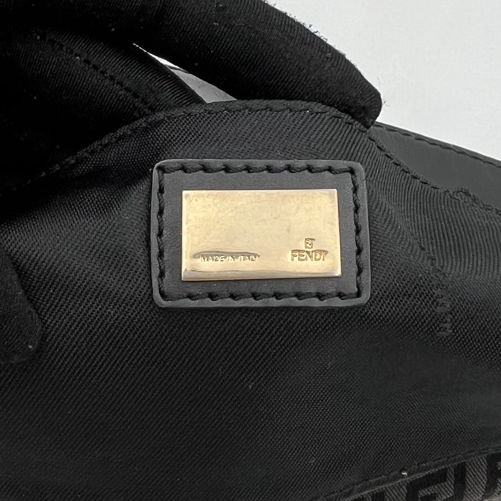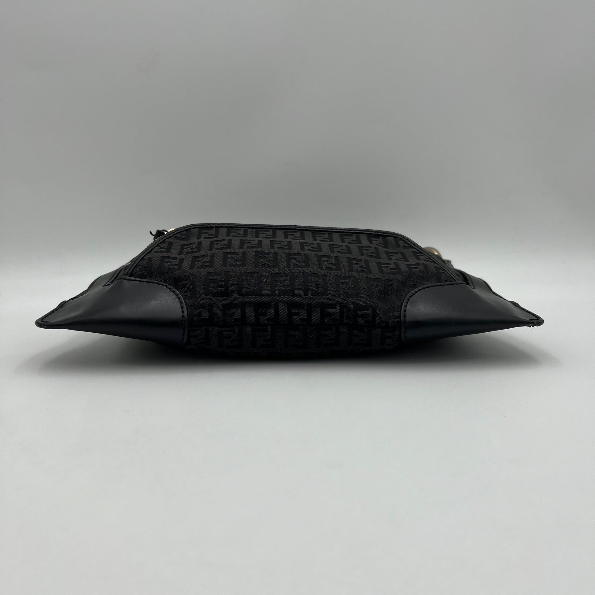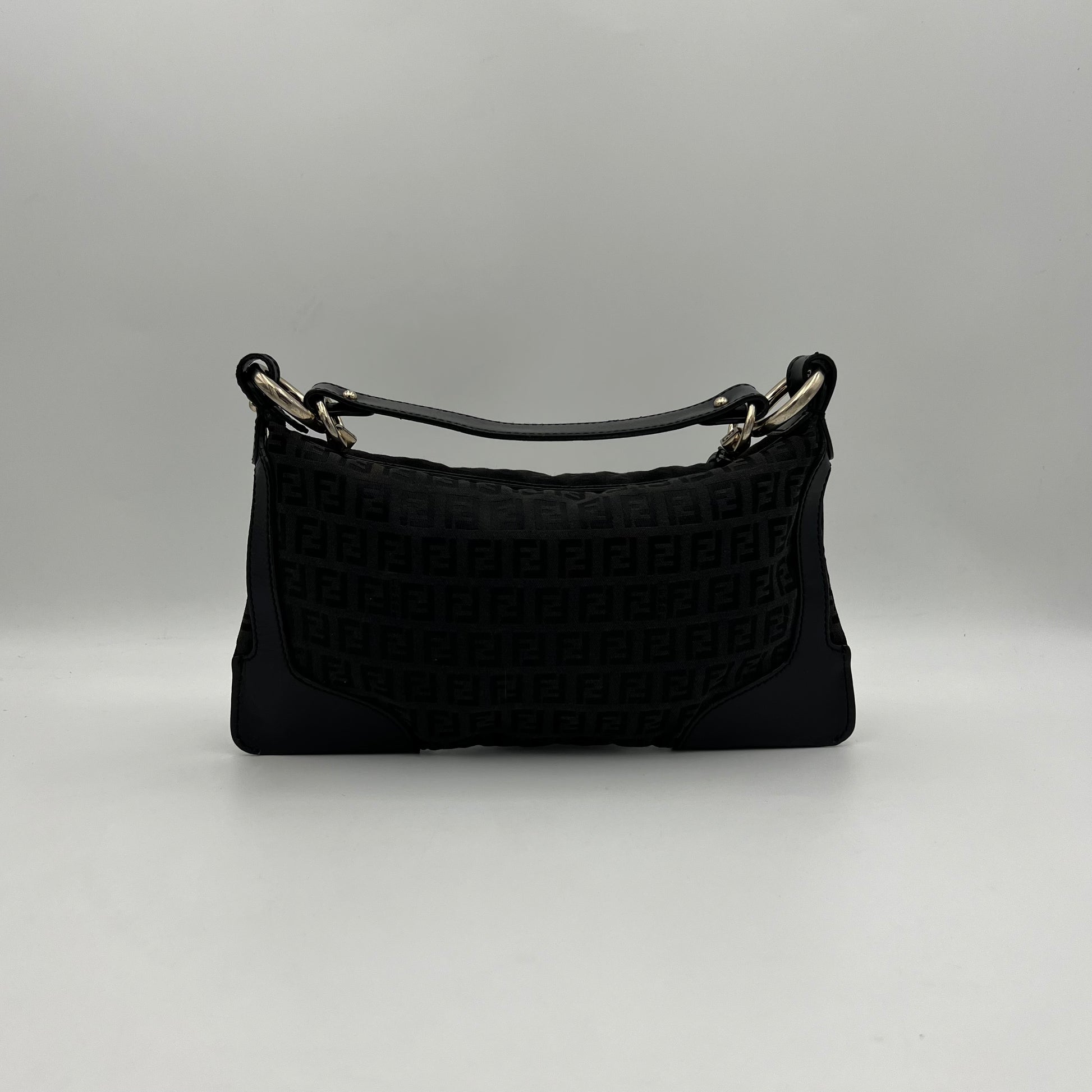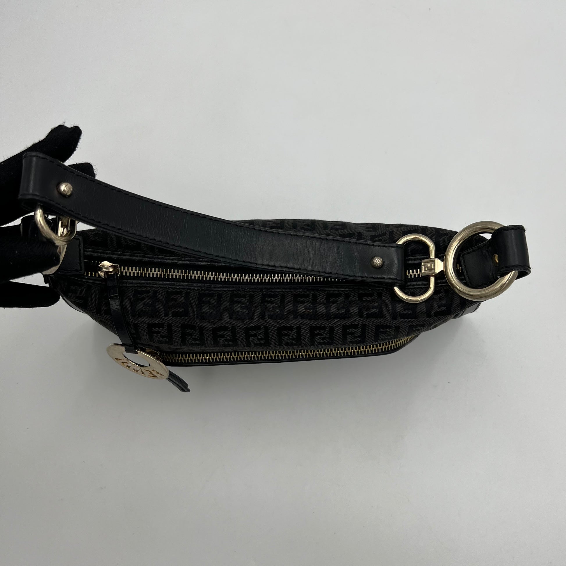 Fendi Black Zucchino Logo Charm Shoulder Bag