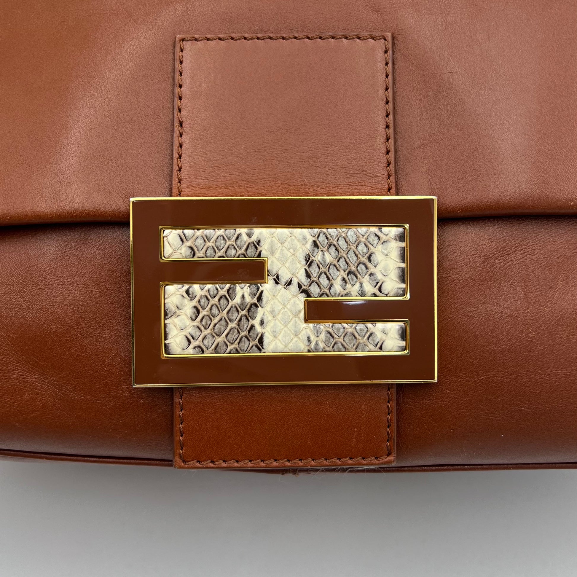 Fendi Brown Leather Watersnake FF Big Mamma Baguette