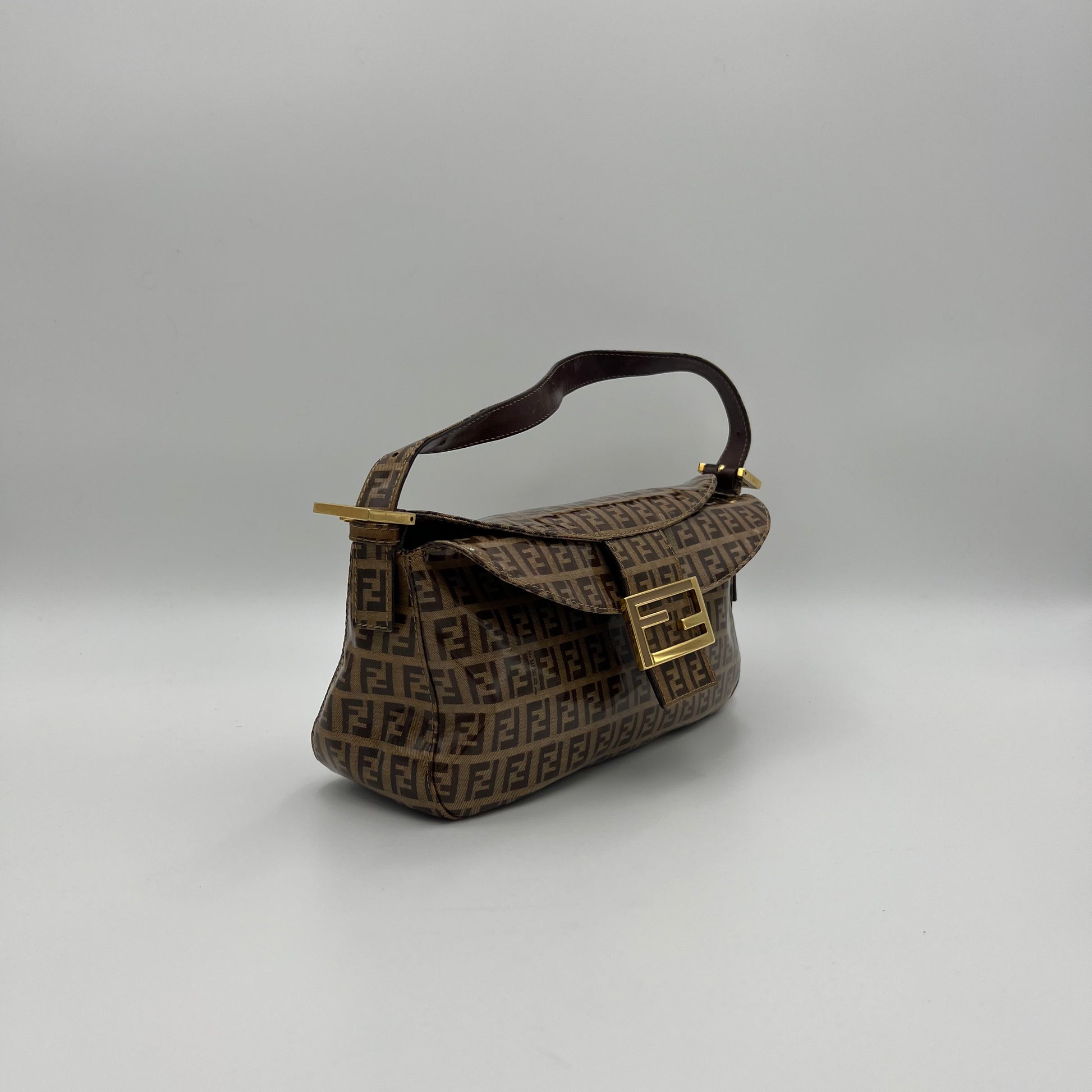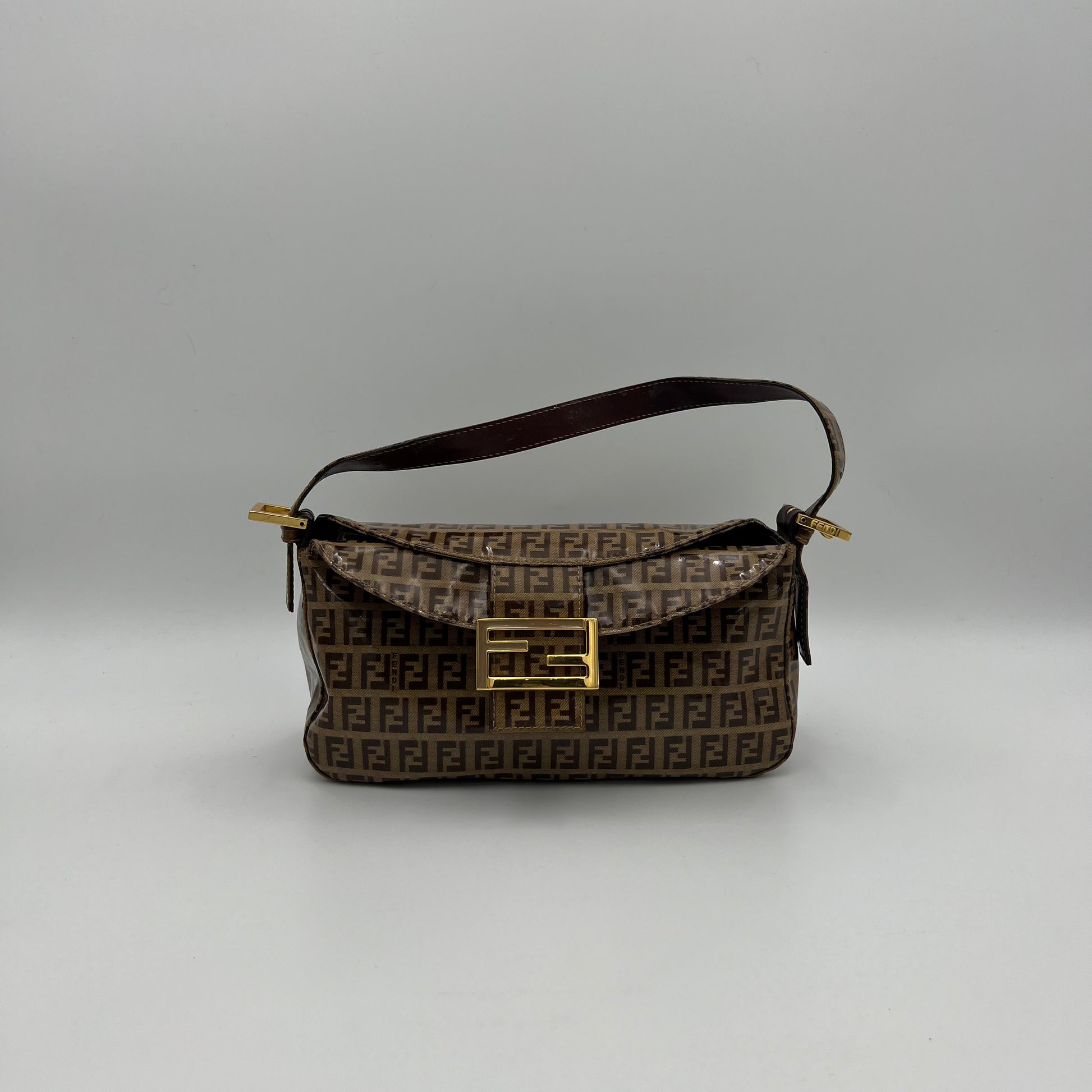 Fendi Brown Zucchino Coated Canvas Baguette