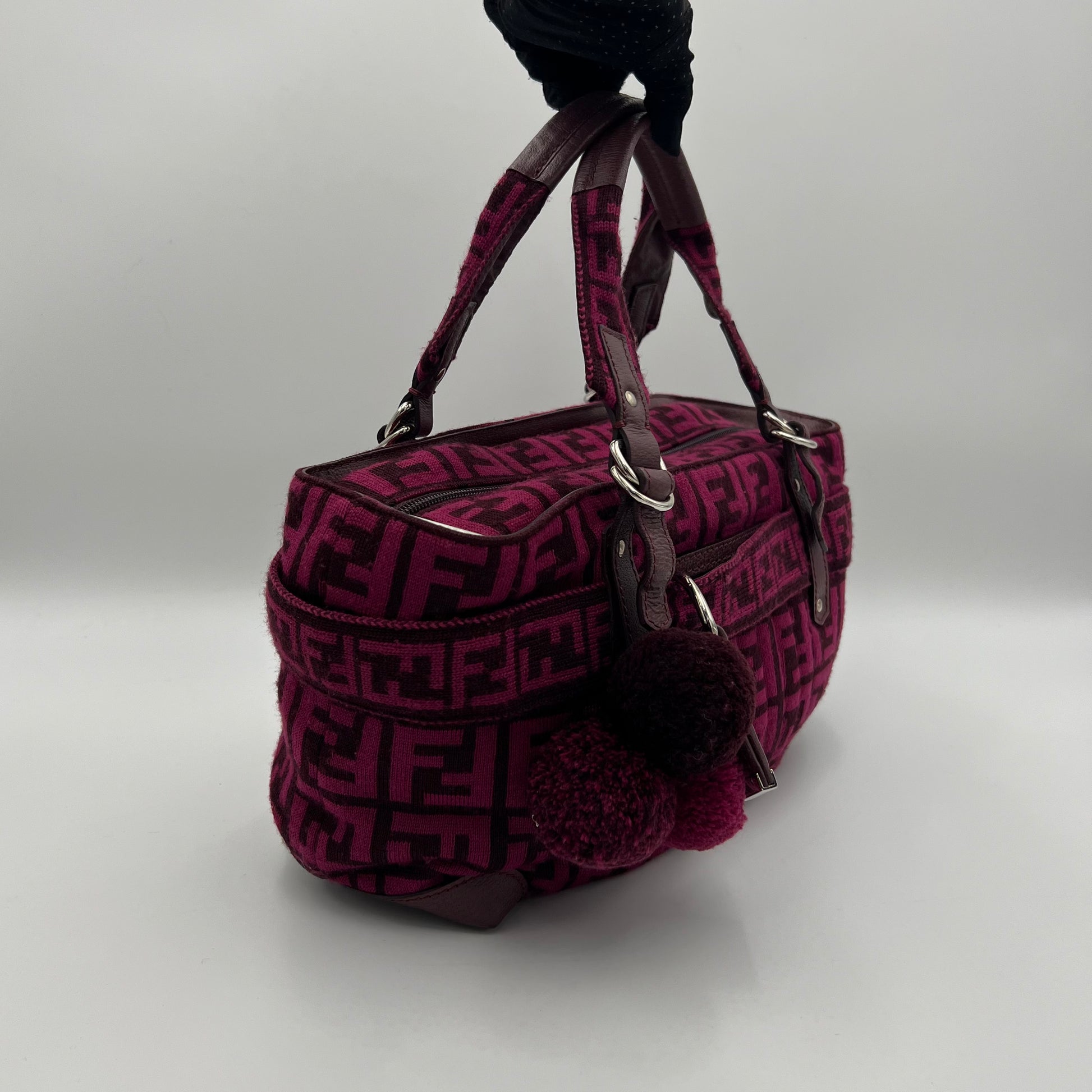 Fendi Pink Zucca Wool Pom Pom Handbag