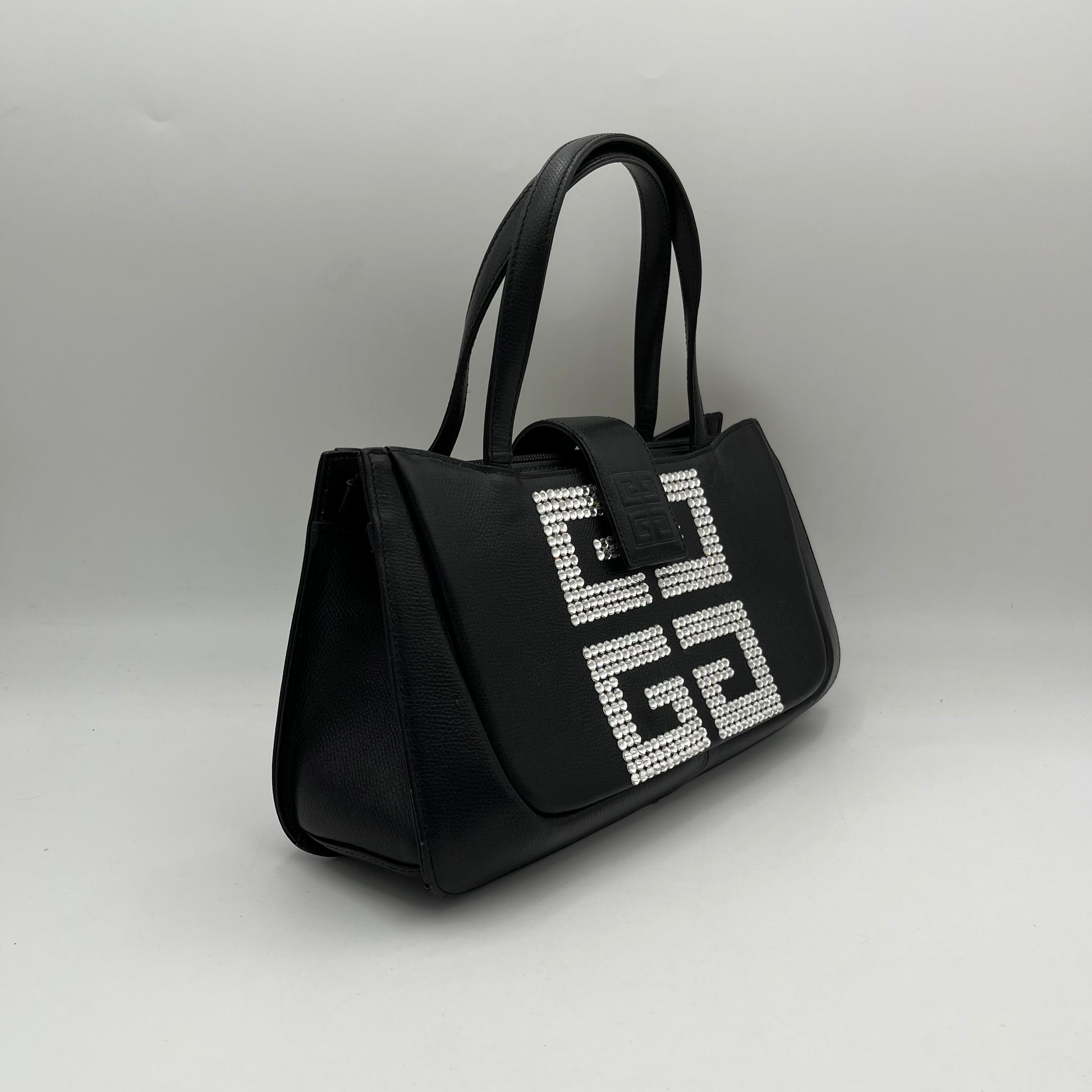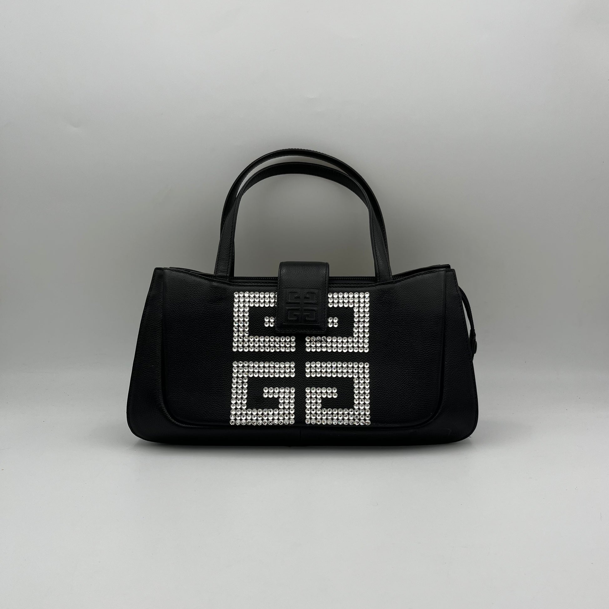 Givenchy Maroquinerie Black Leather Bedazzled Monogram Handbag
