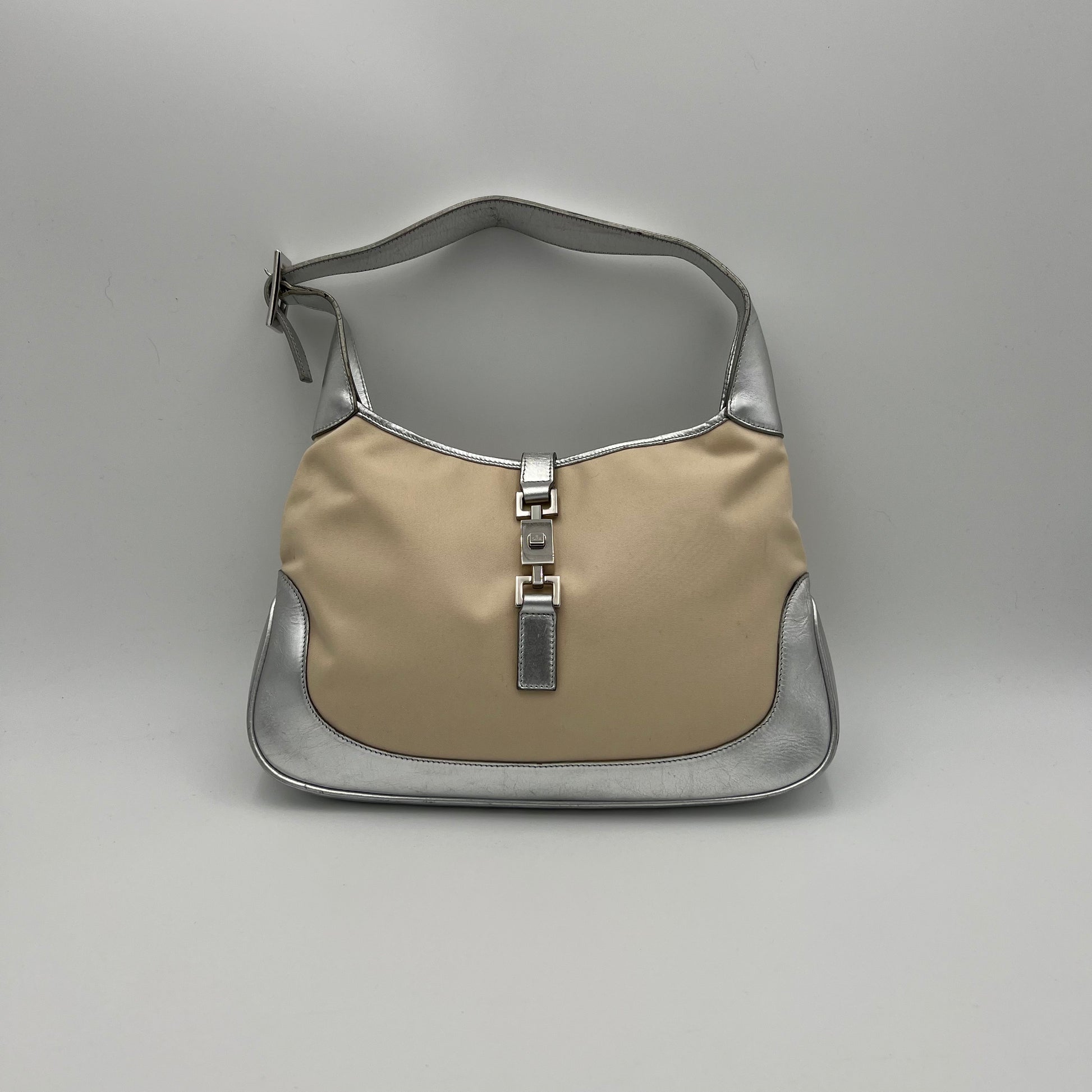 Gucci Beige Cloth Silver Leather Jackie O Bag