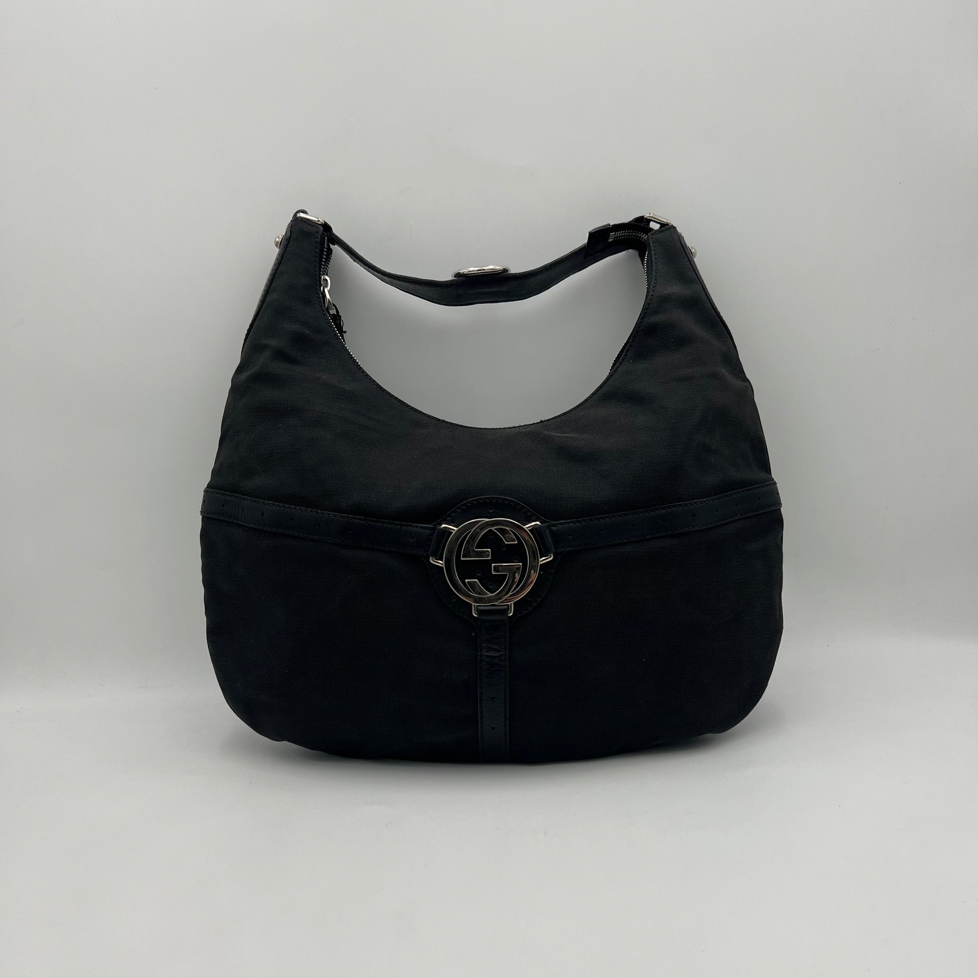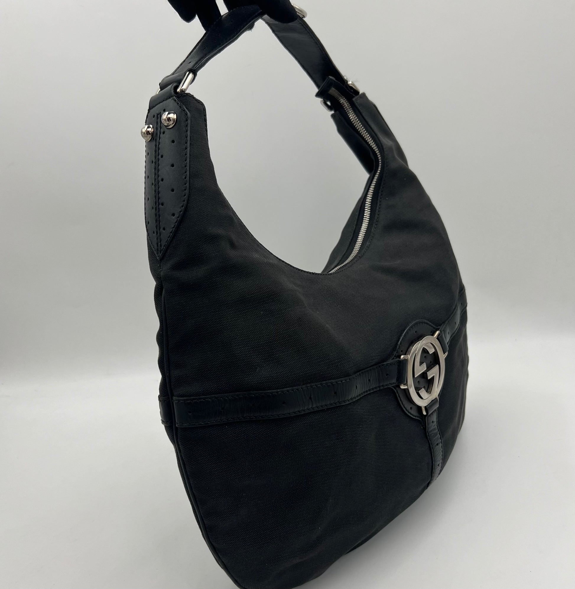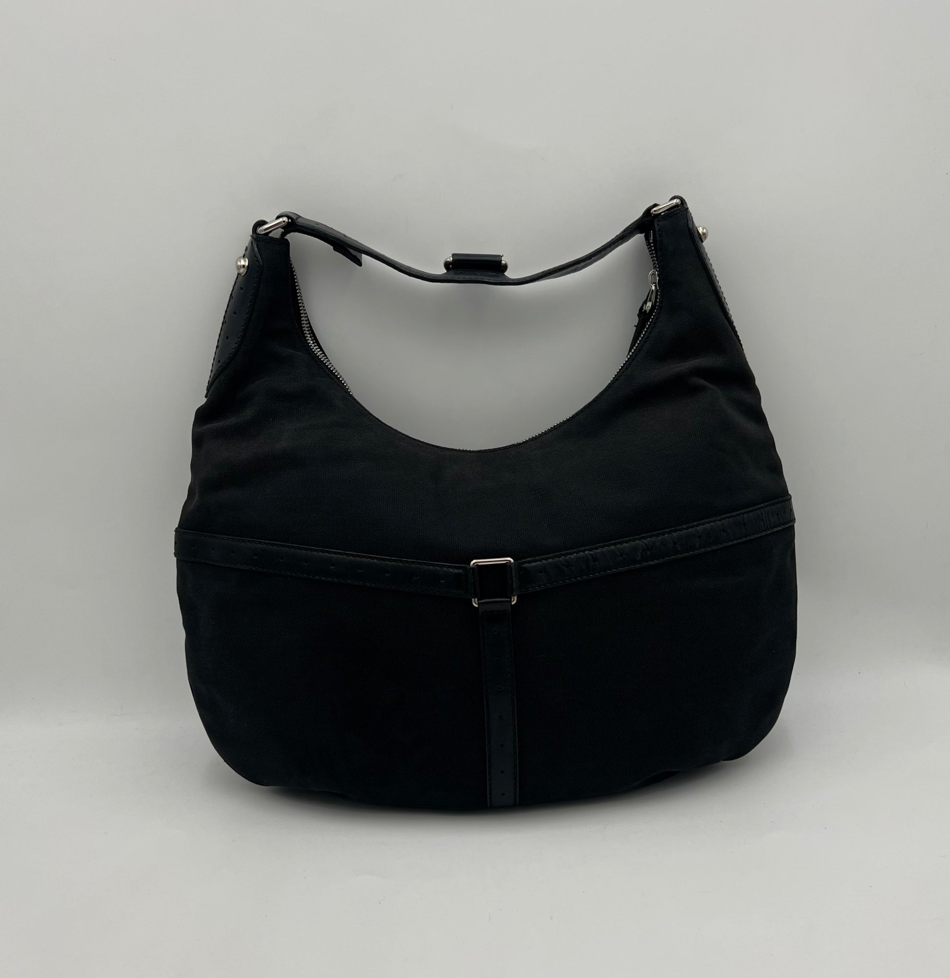 Gucci Black Canvas Reins Hobo Shoulder Bag