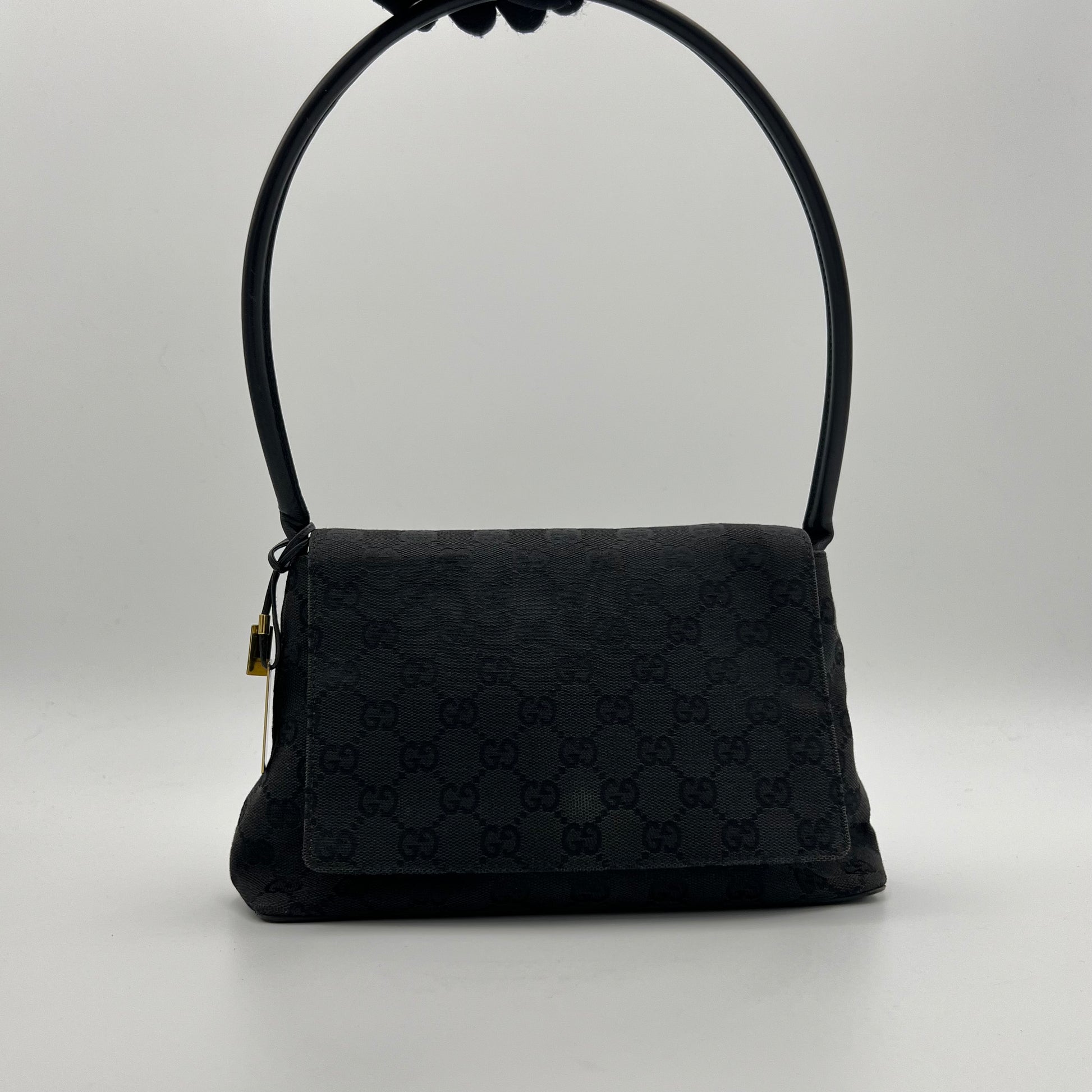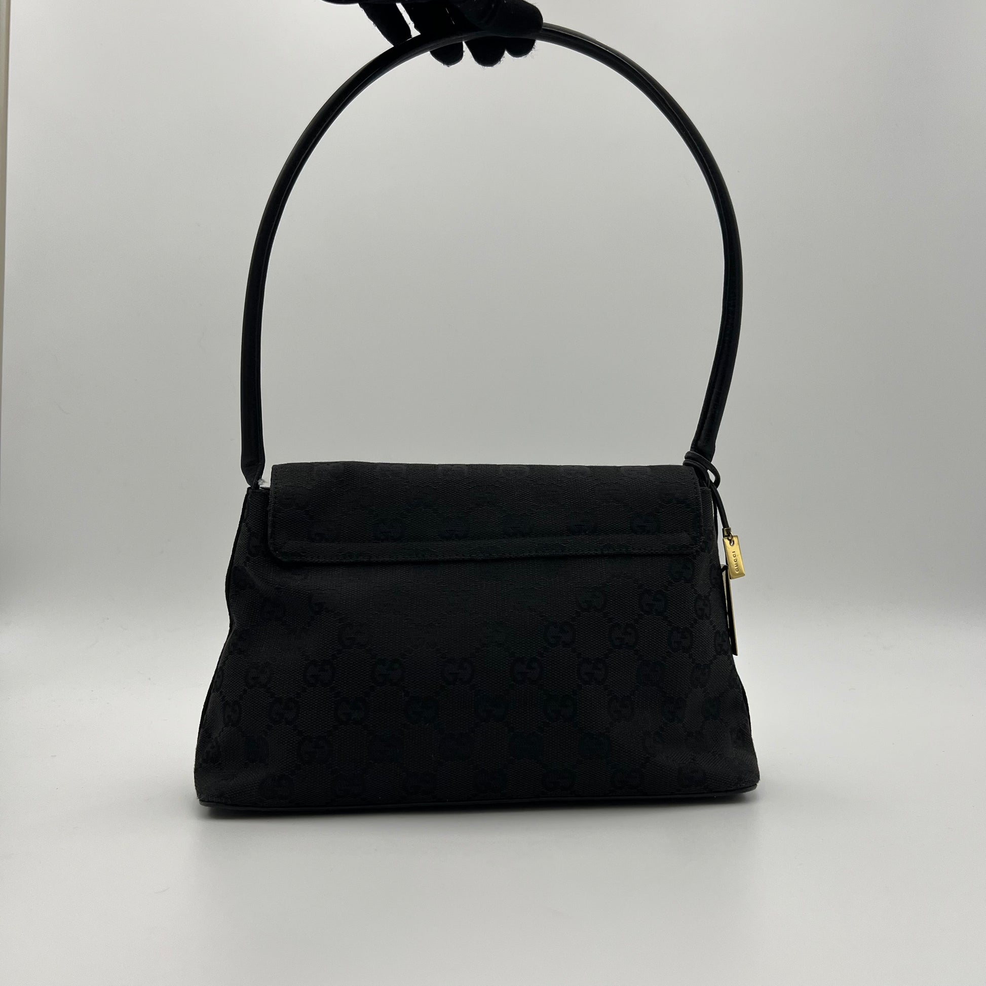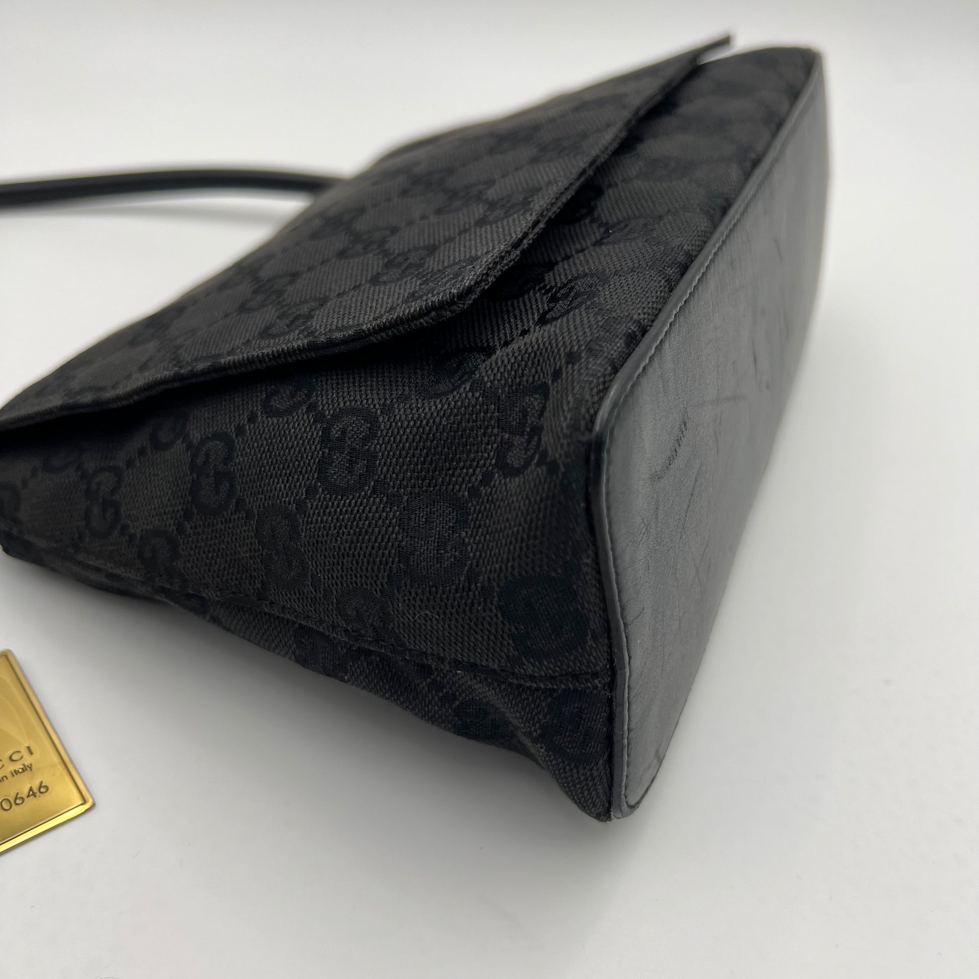 Gucci Black Monogram Canvas Flap Shoulder Bag