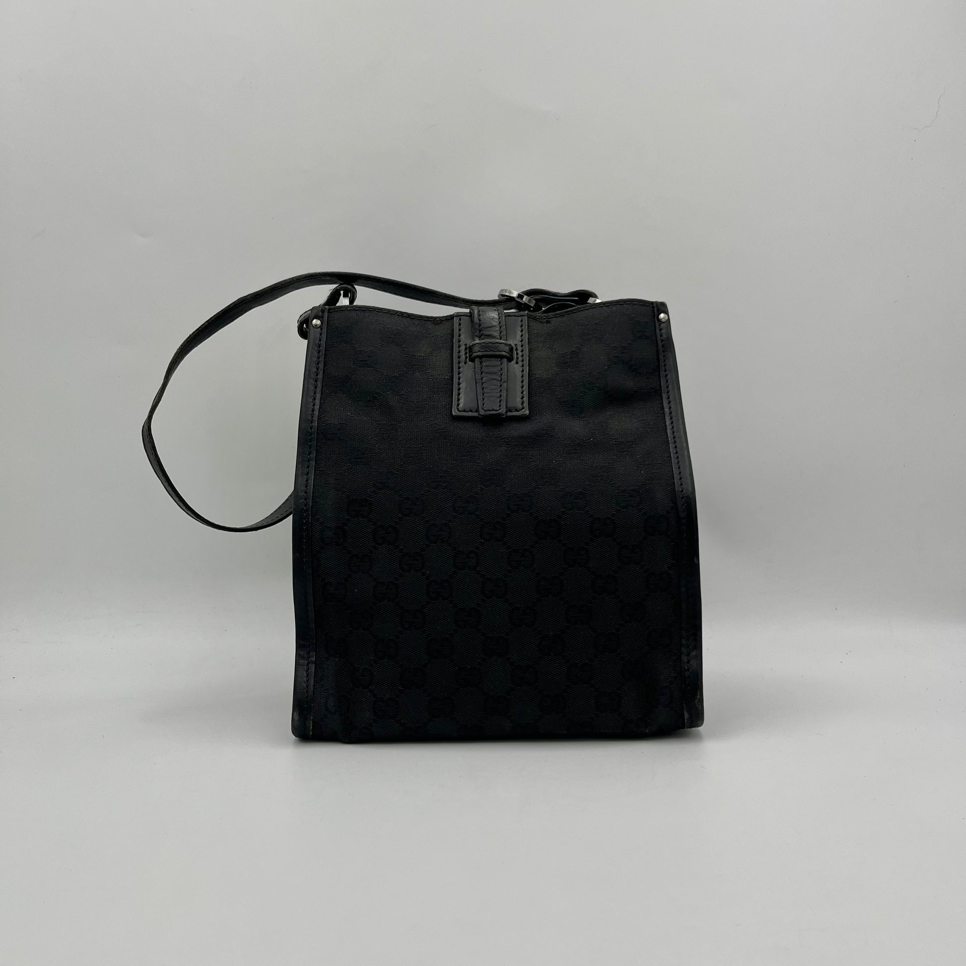 Gucci Black Monogram Canvas Leather Rectangular Shoulder Bag