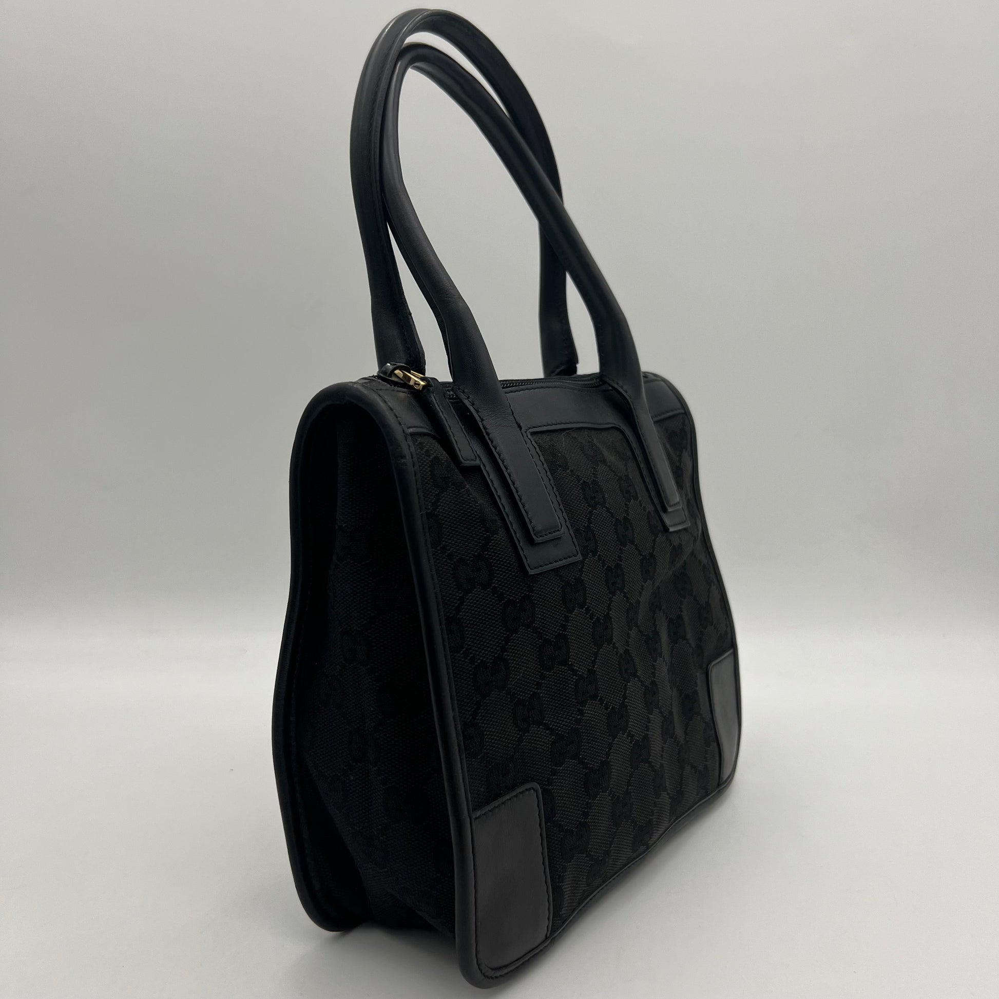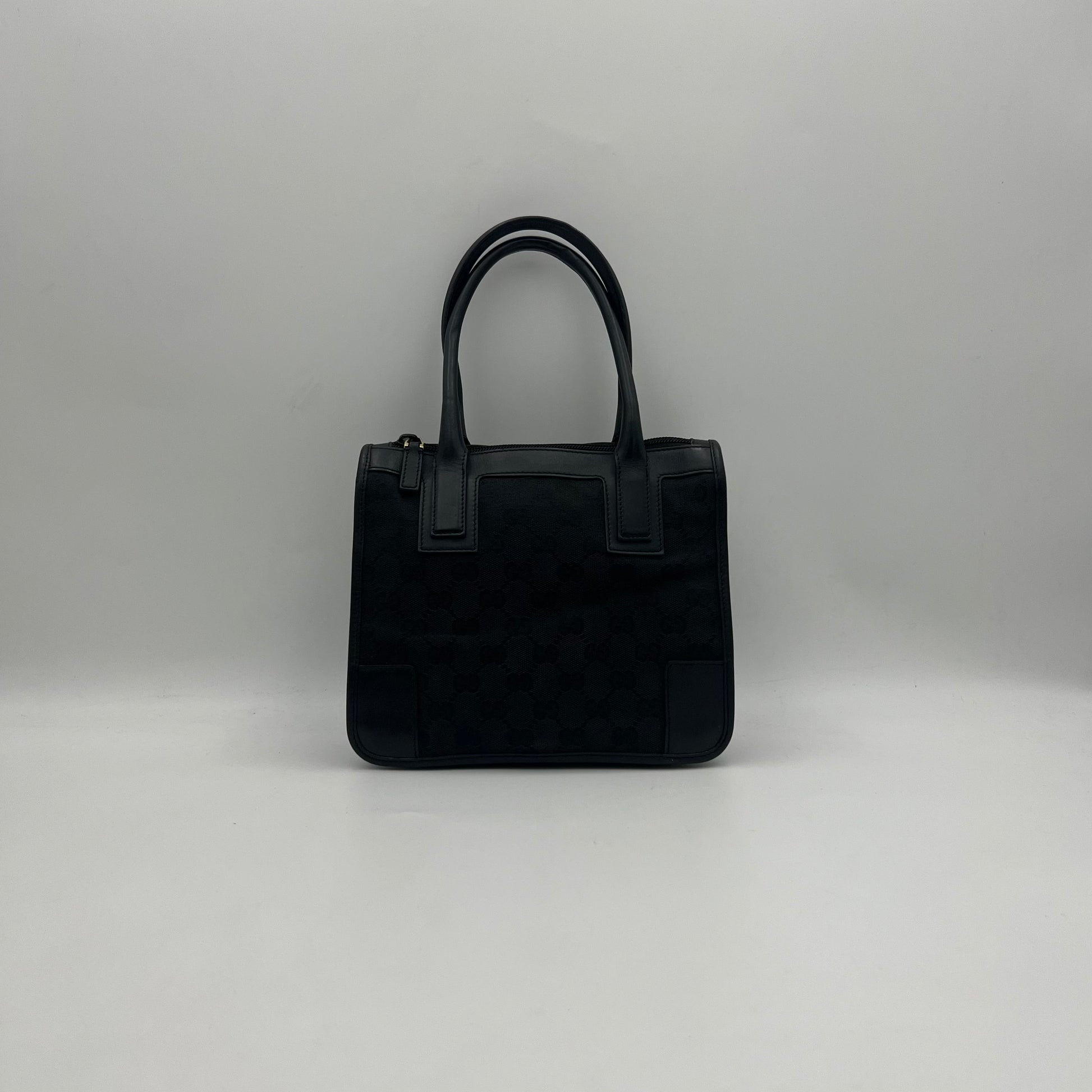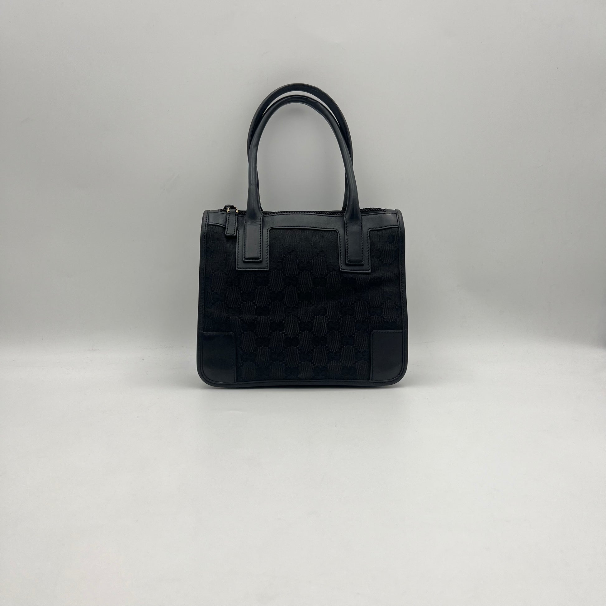 Gucci Black Monogram Canvas x Leather Small Handbag
