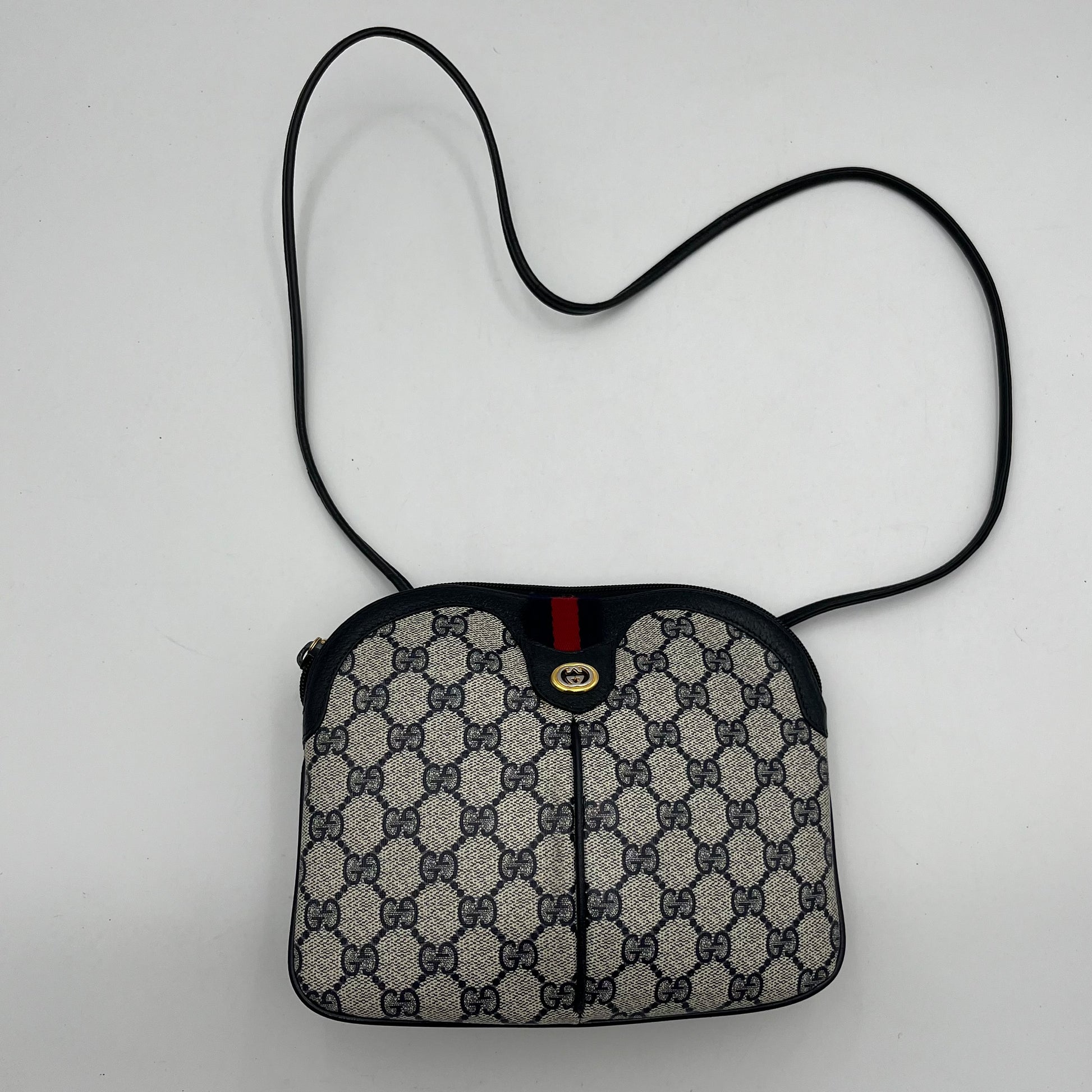 Gucci Blue Monogram PVC Sherryline Ophidia Semi Round Crossbody
