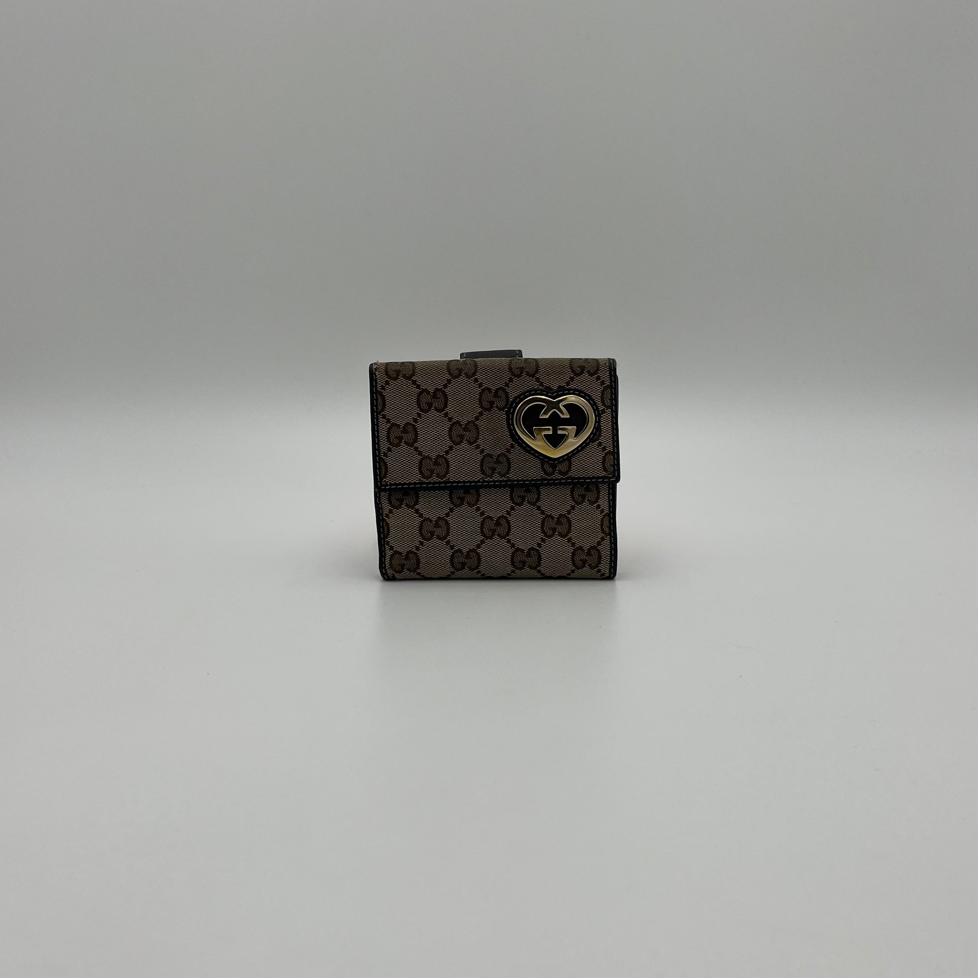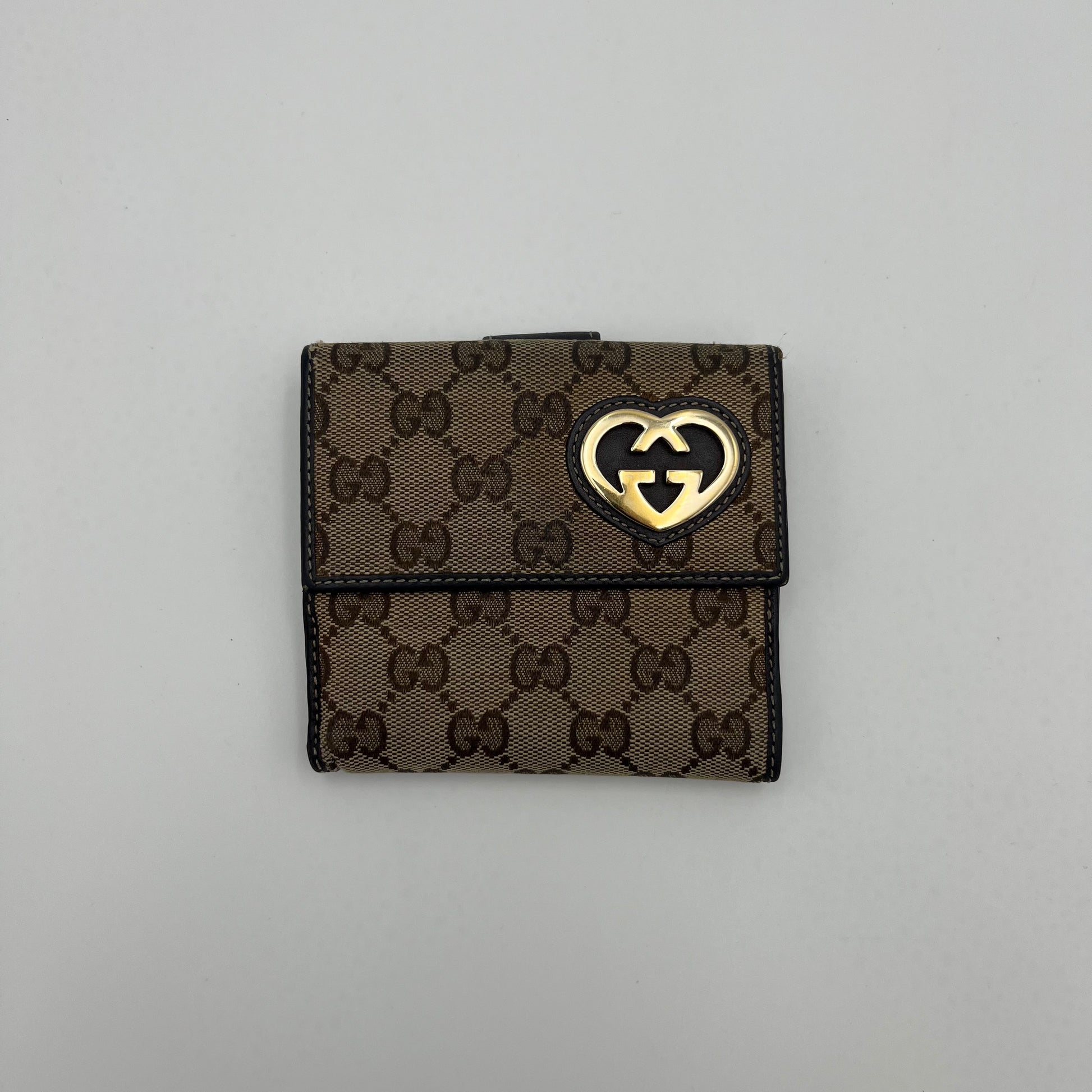 Gucci Brown Monogram Canvas and Leather Heart GG Short Wallet