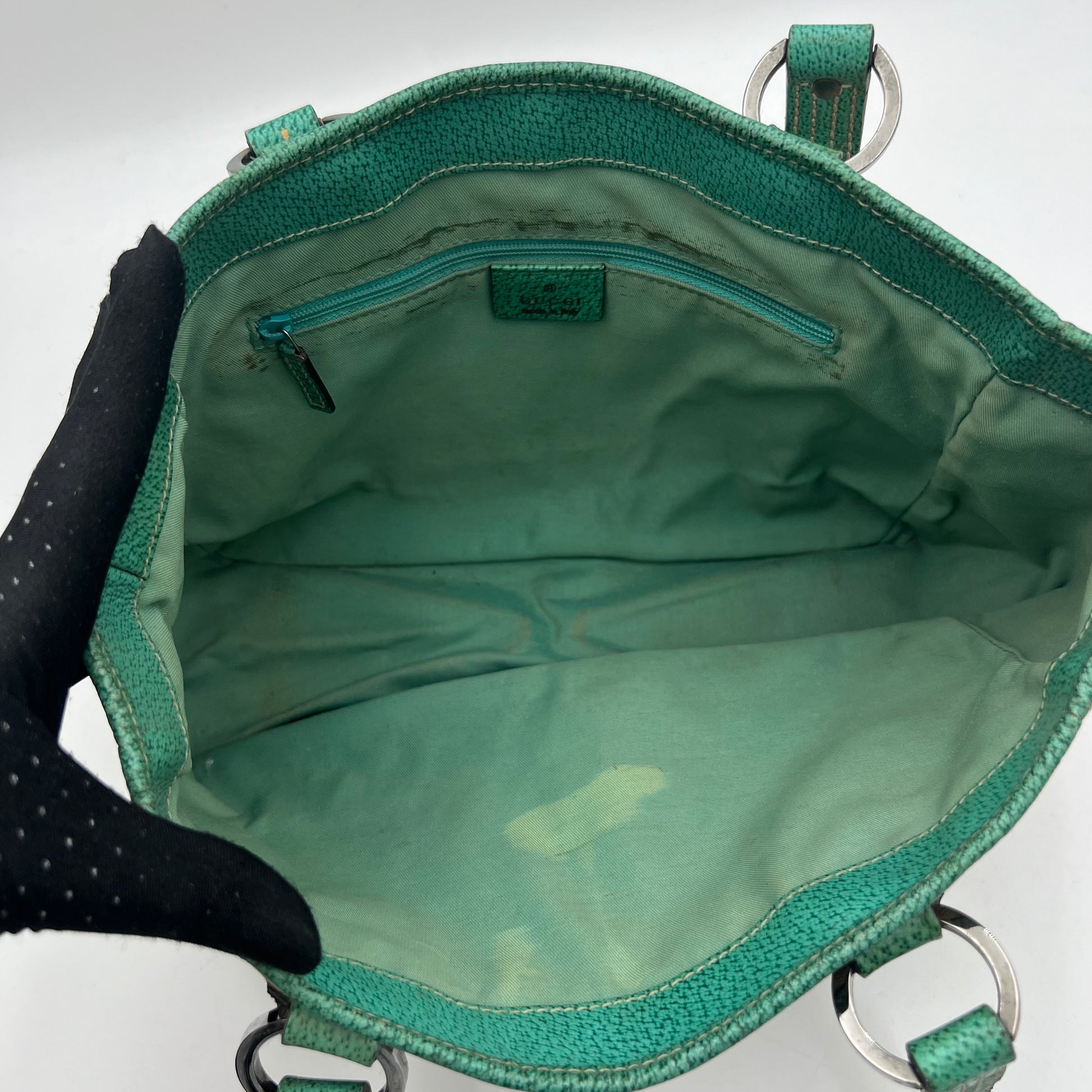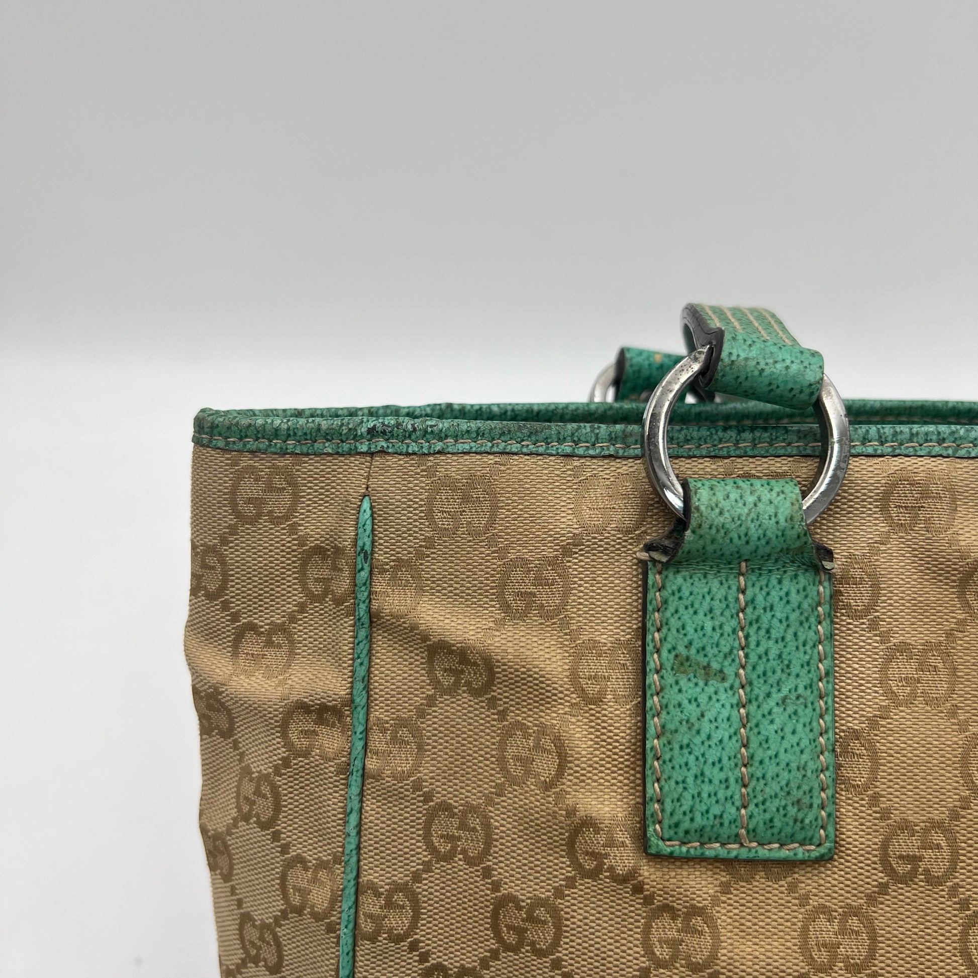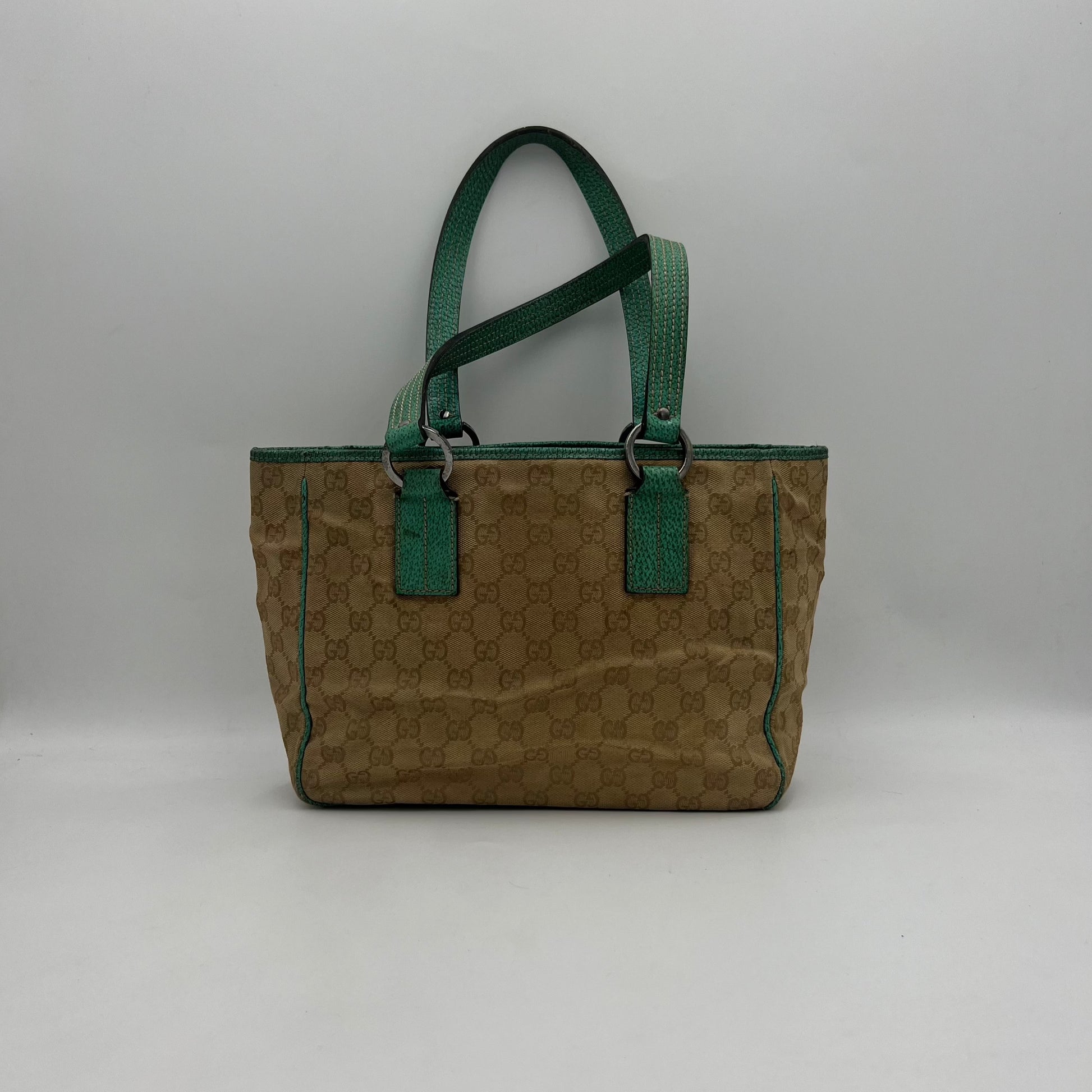 Gucci Light Brown Monogram Canvas Green Leather Handbag