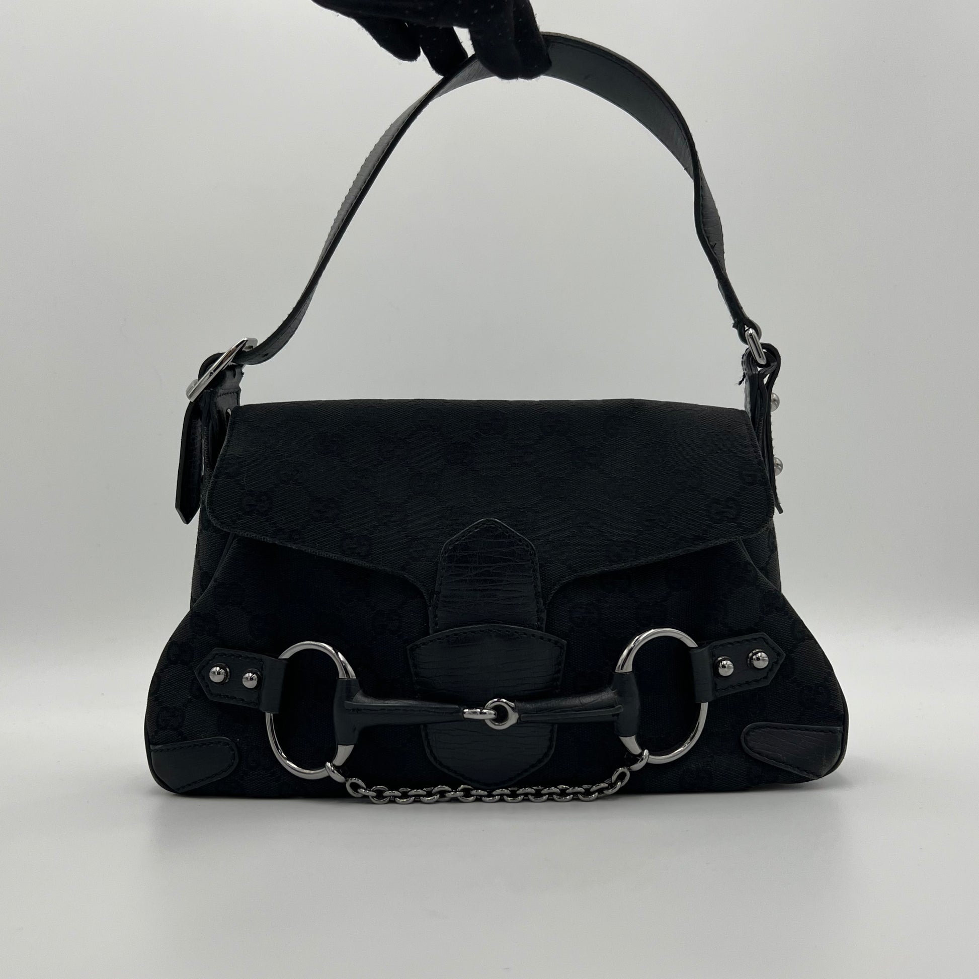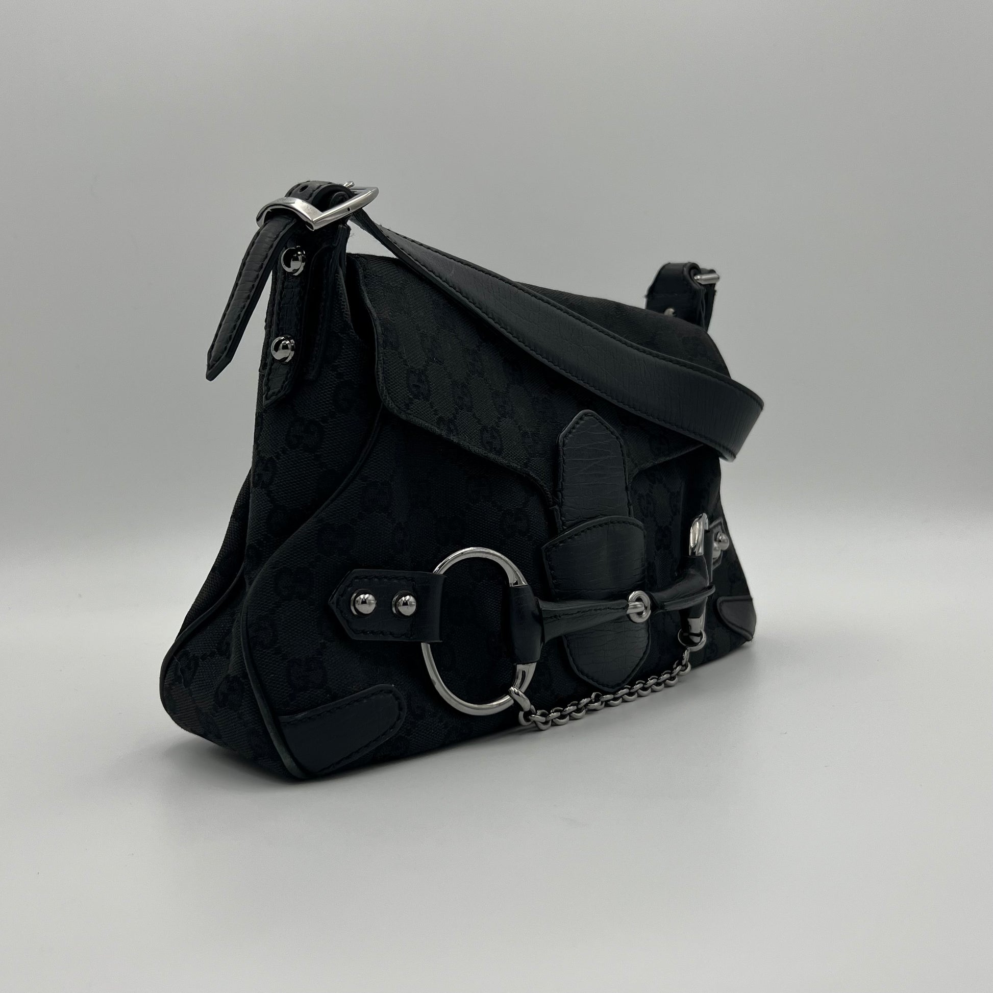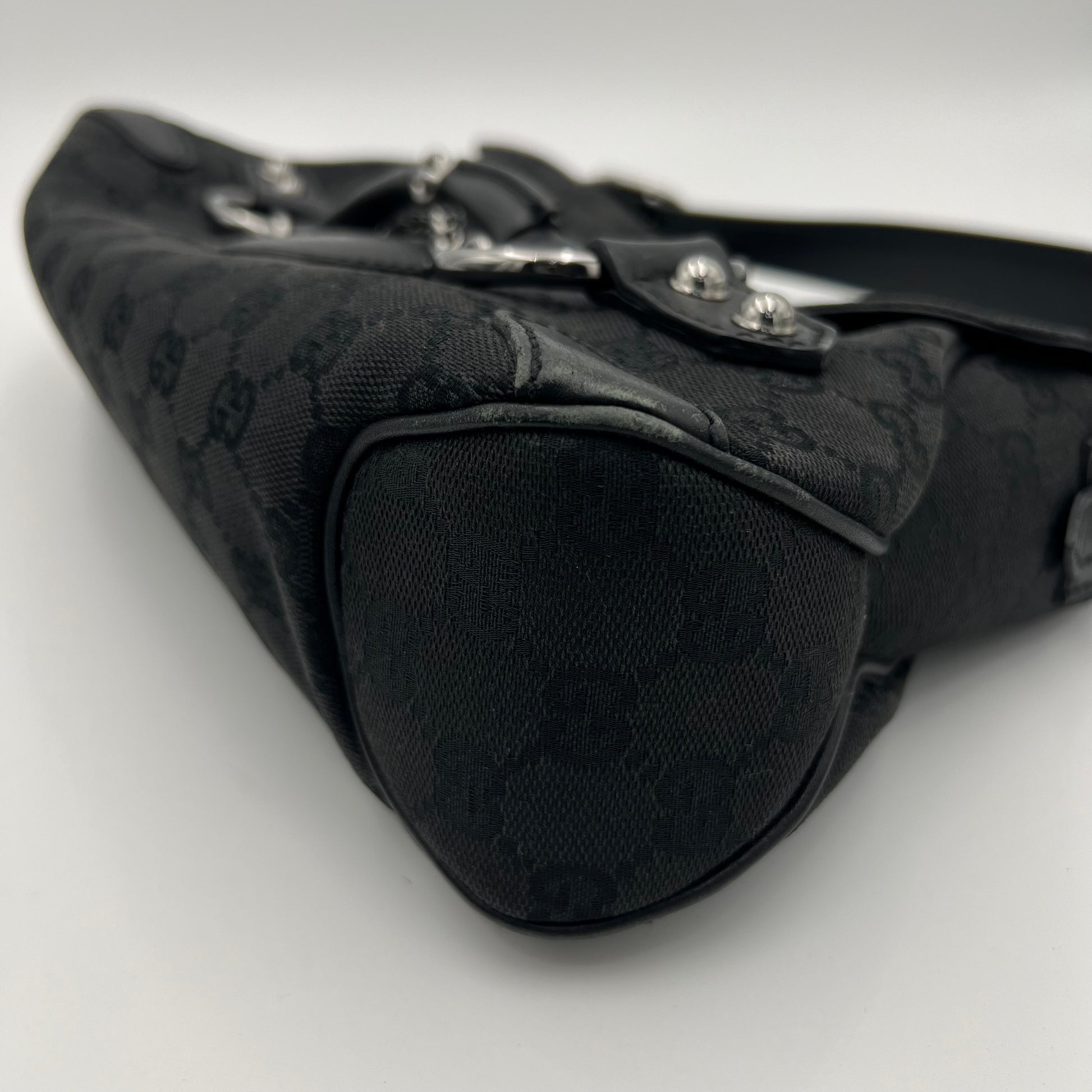 Gucci Monogram Canvas and Leather Horsebit 1955 Chain Shoulder Bag