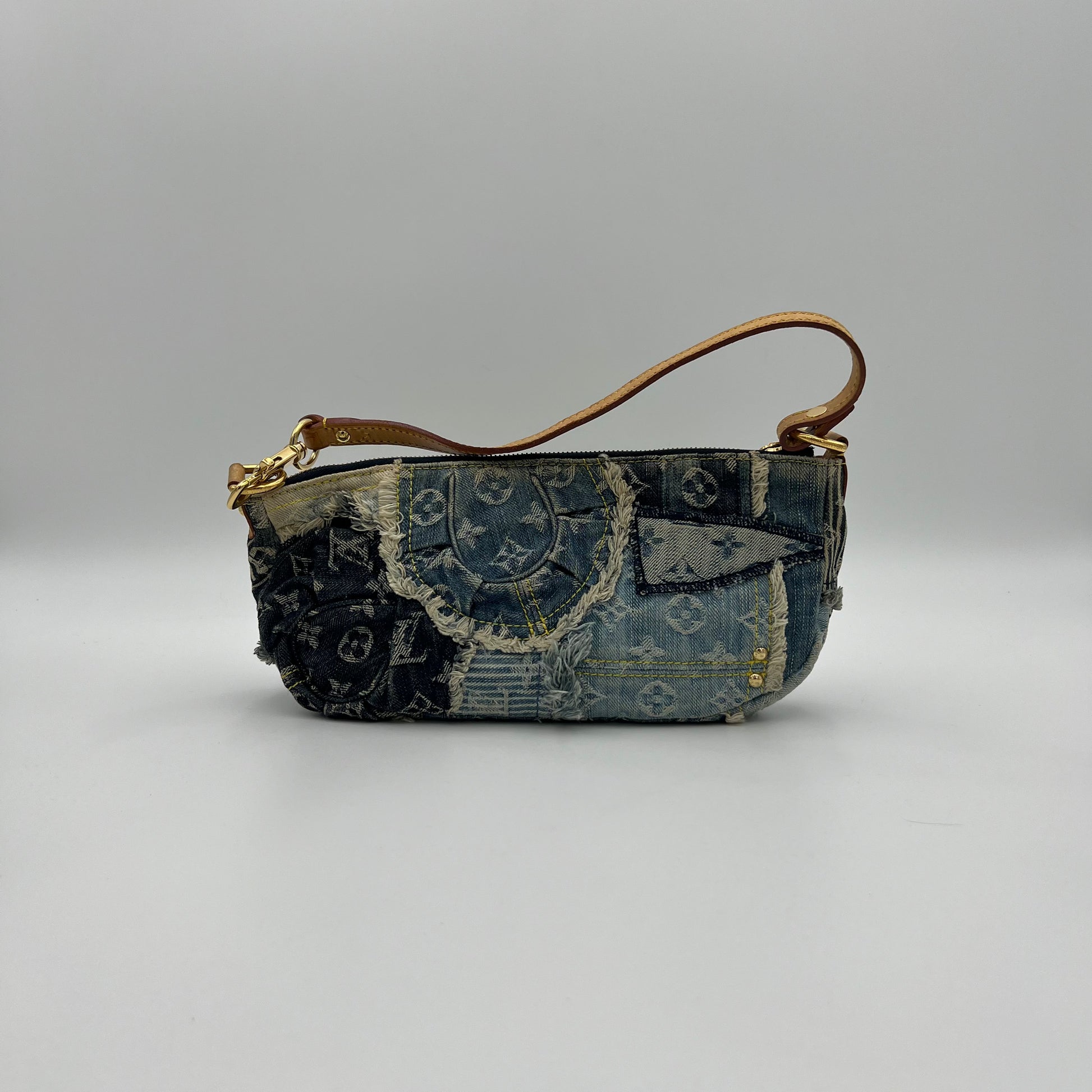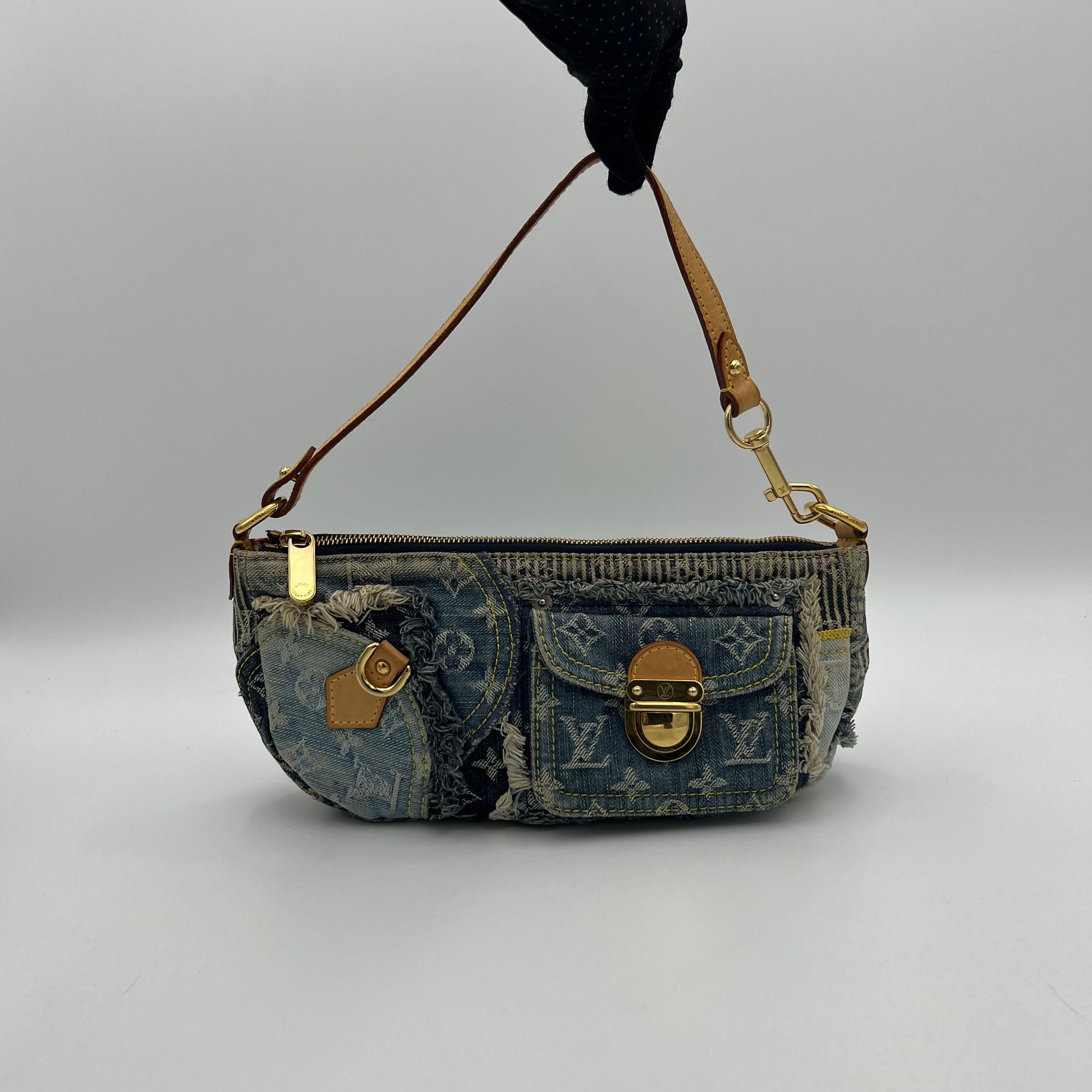 LV Monogram Blue Denim Patchwork Pouchy Shoulder Bag