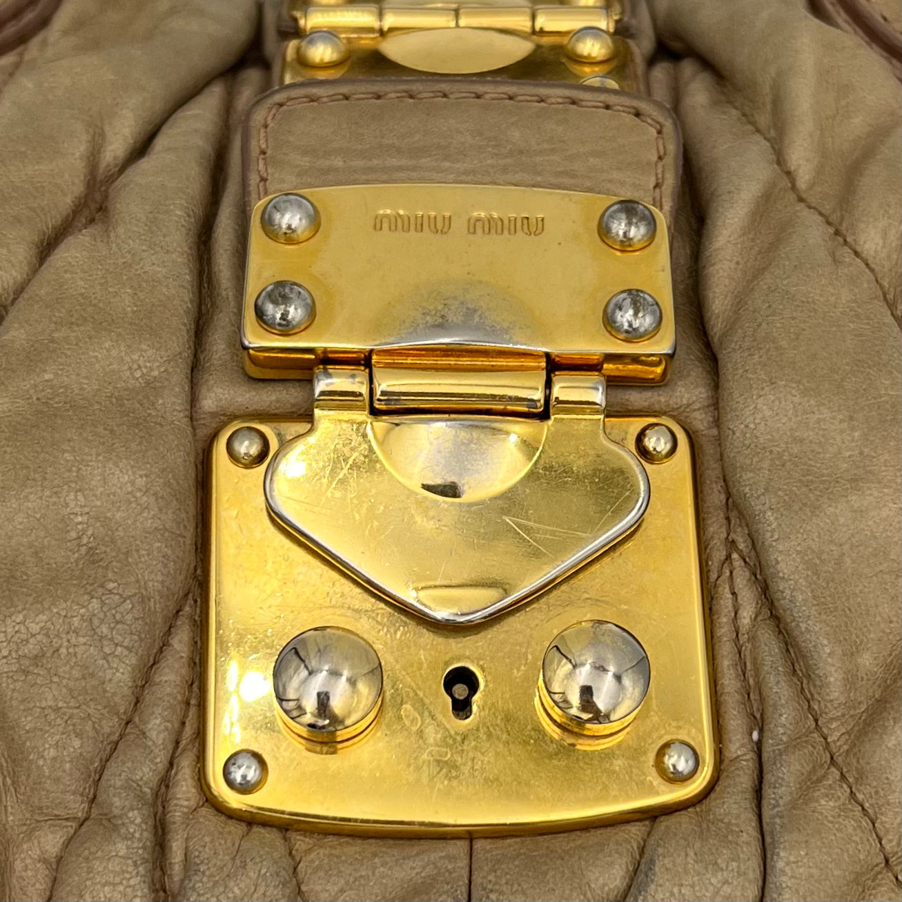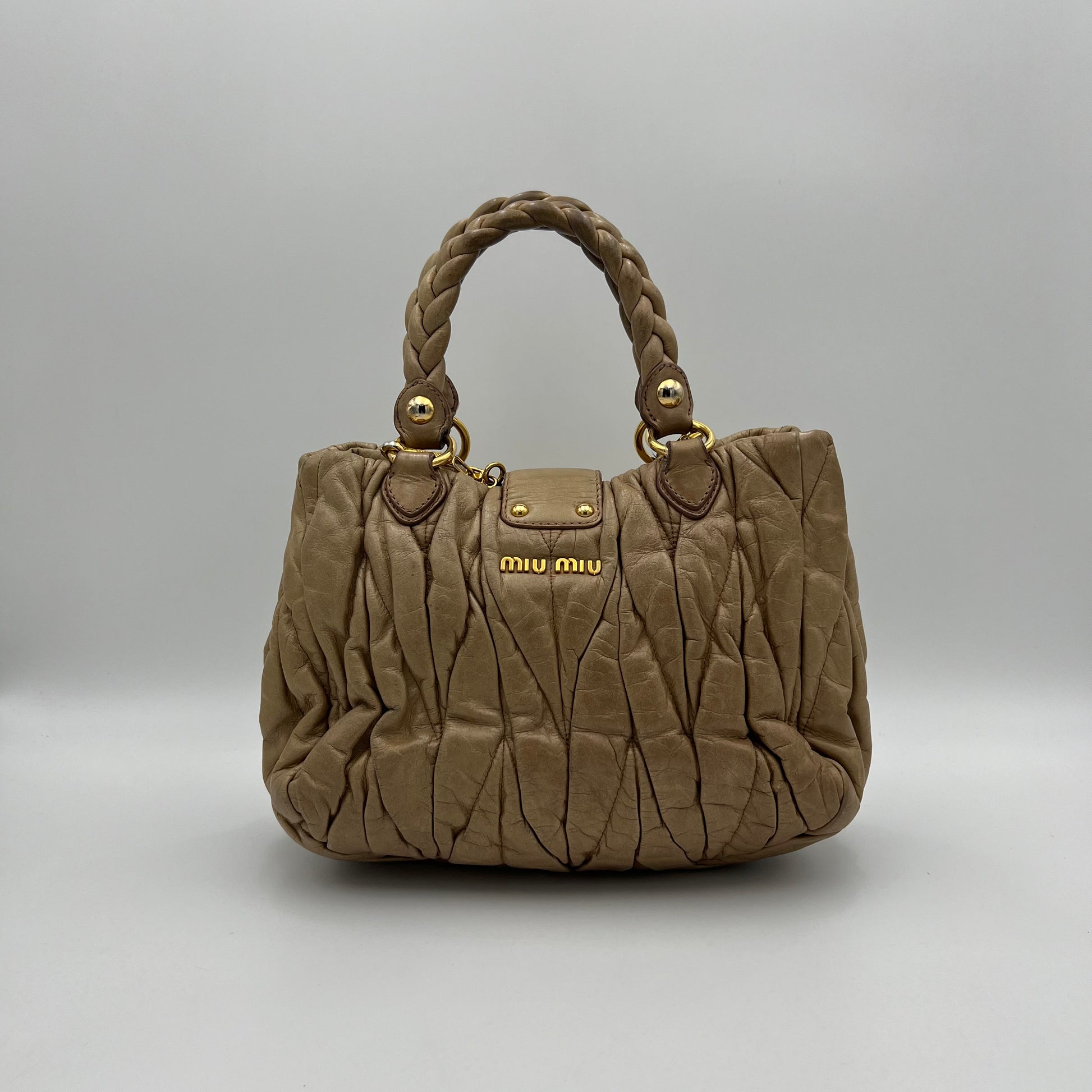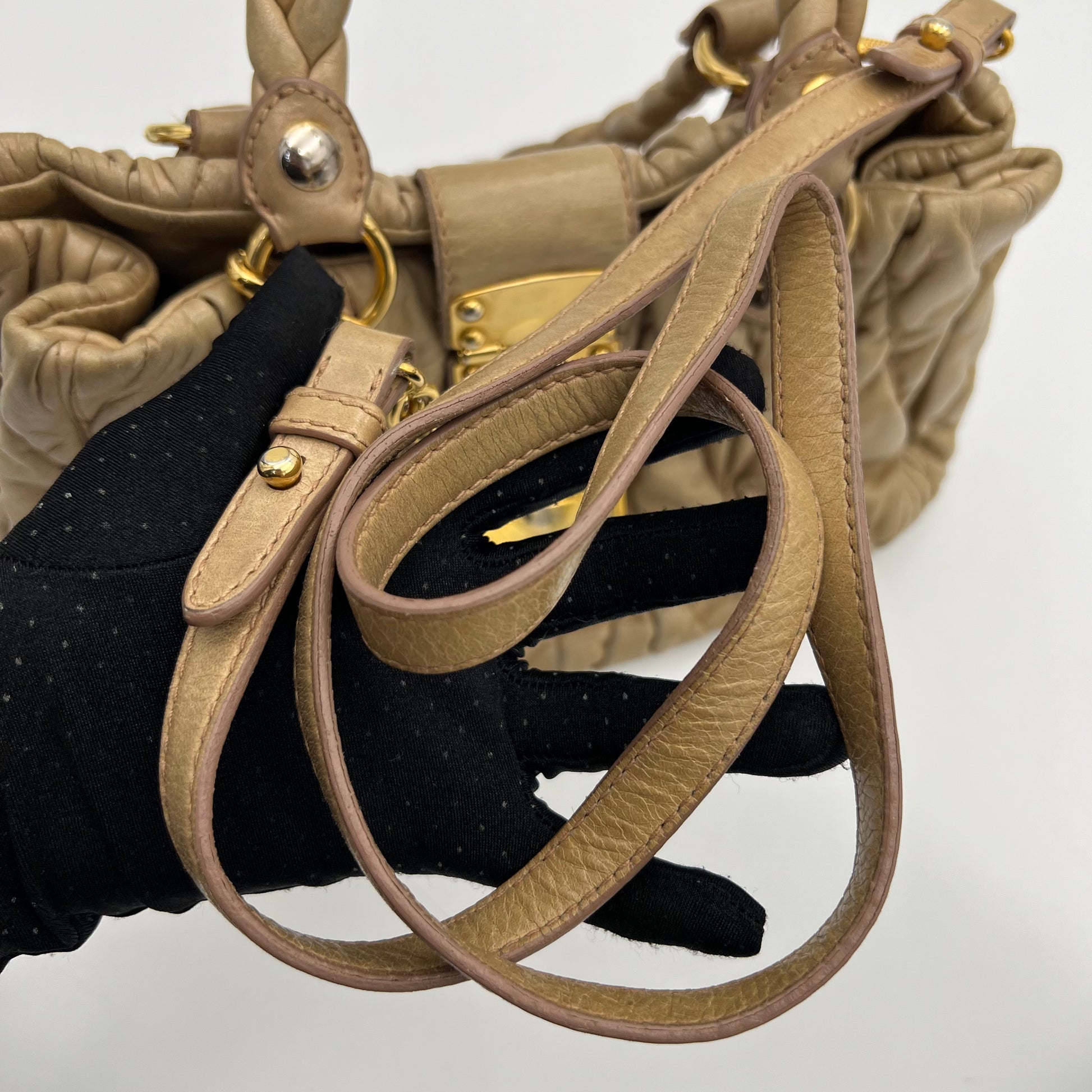 Miu Miu Beige Matelasse Leather Handbag with Long Strap