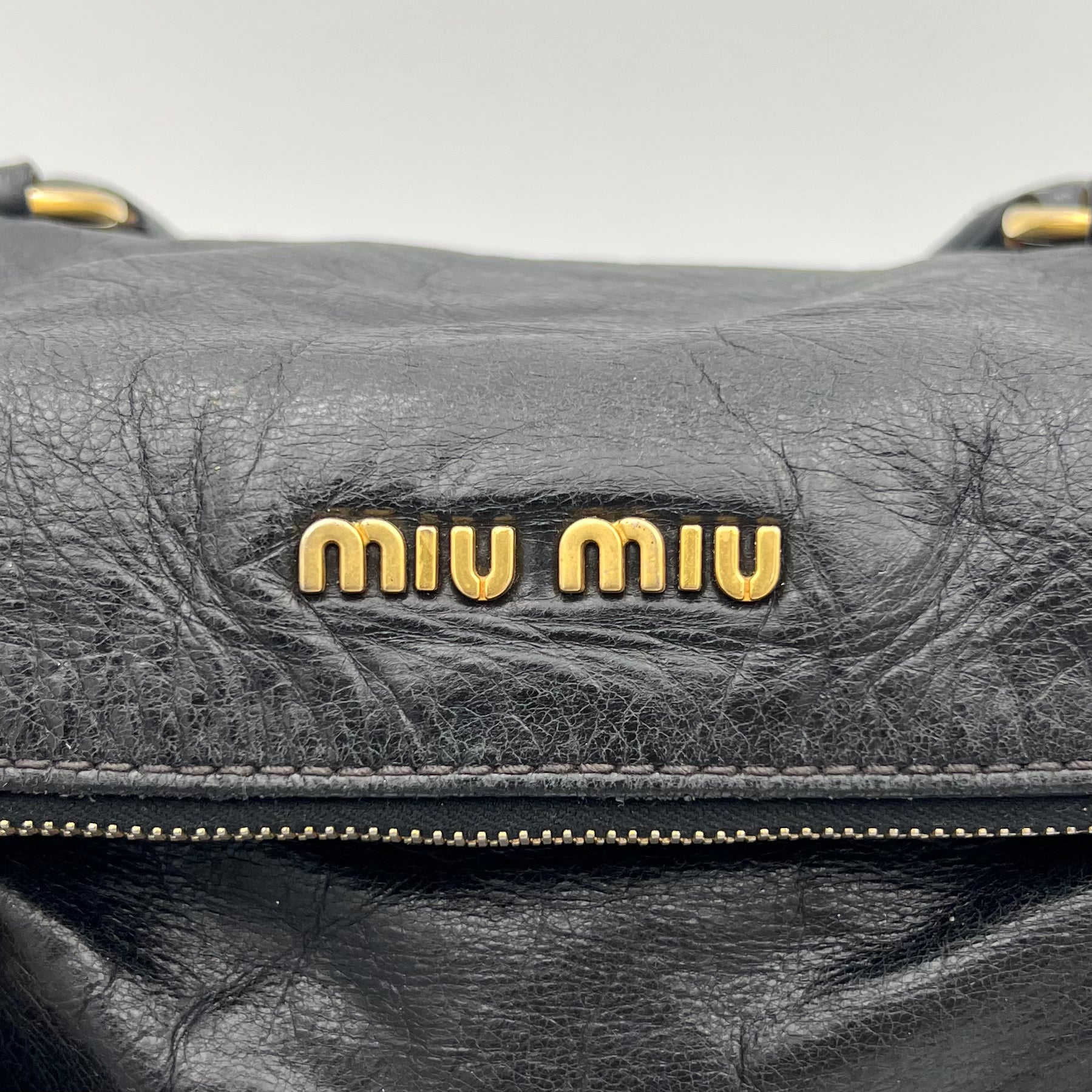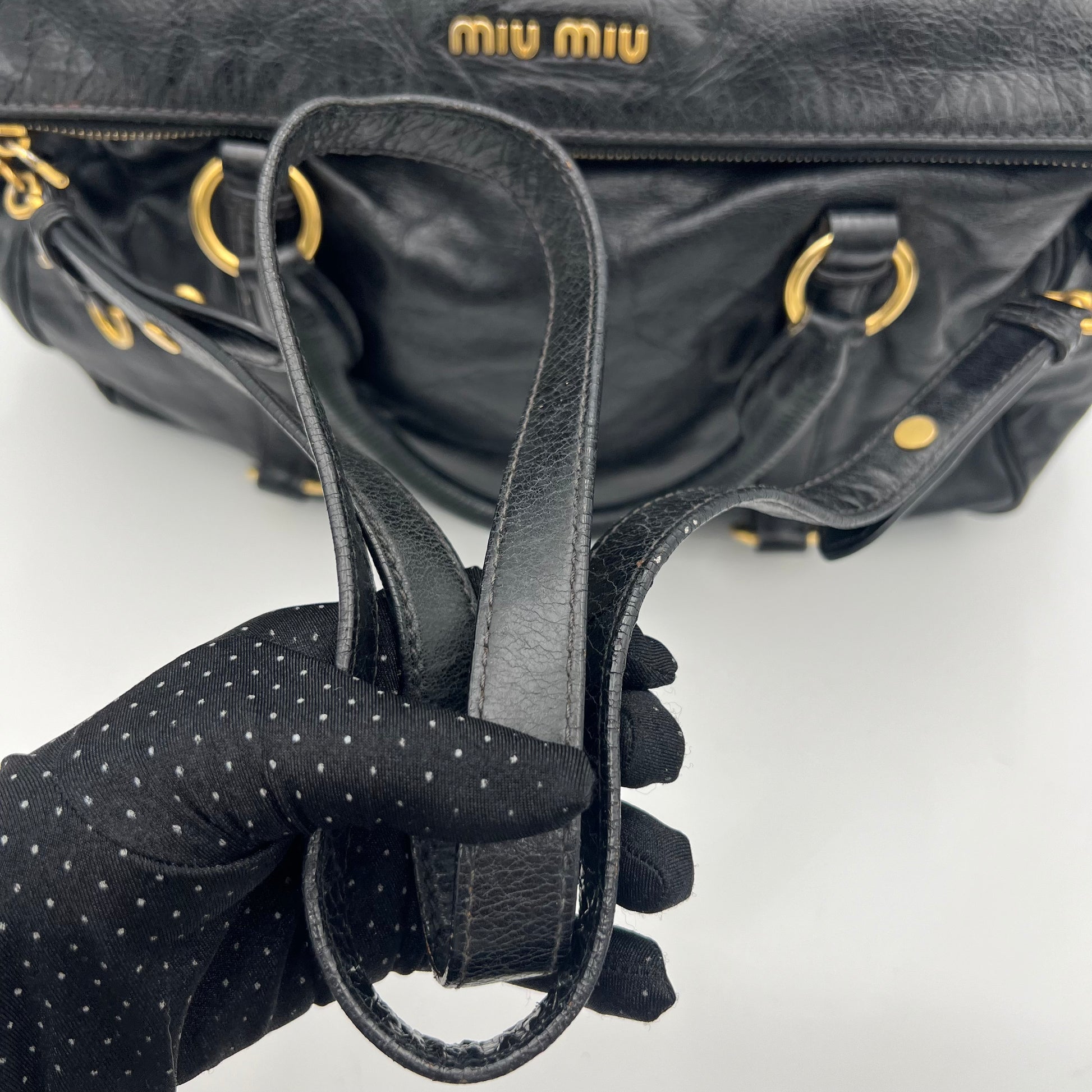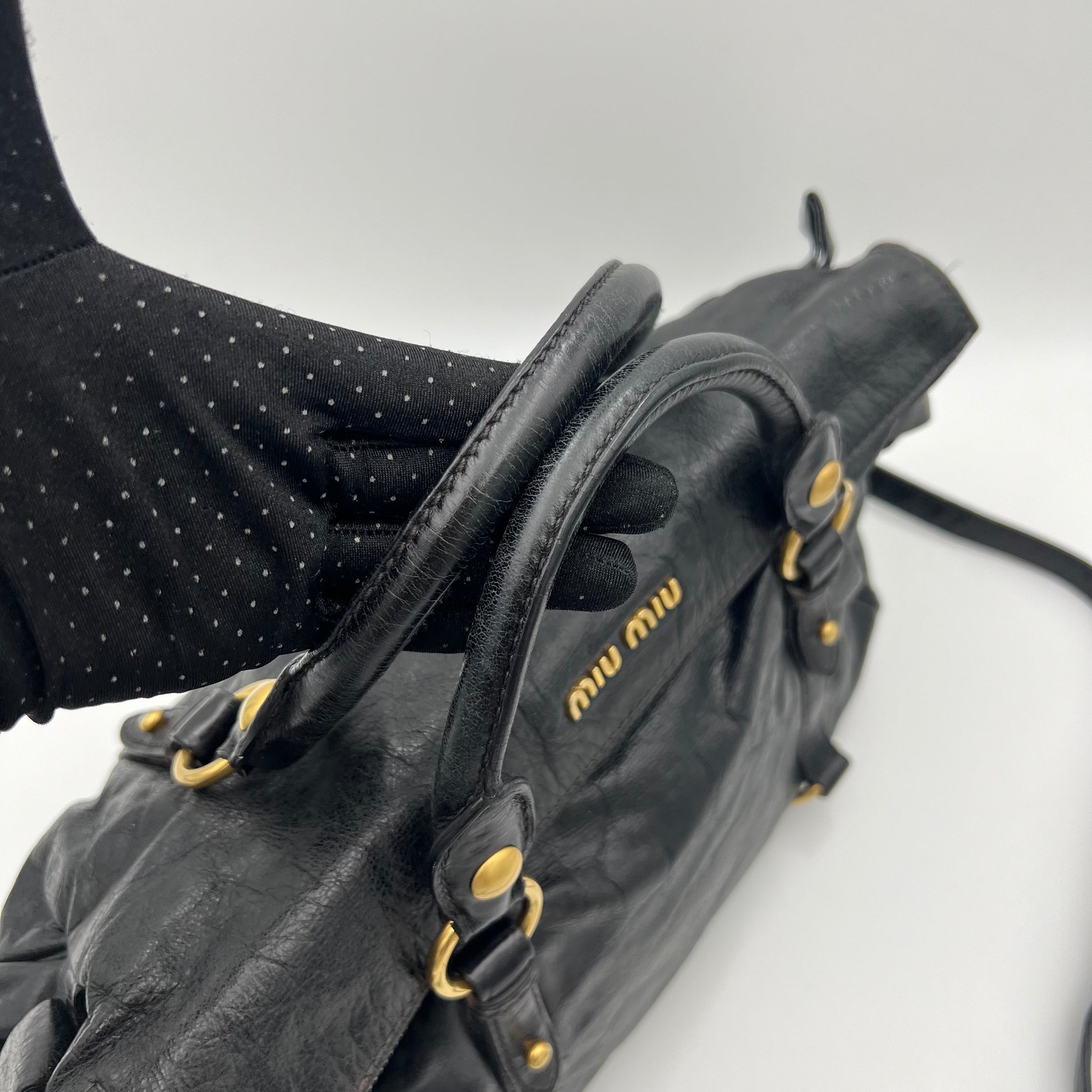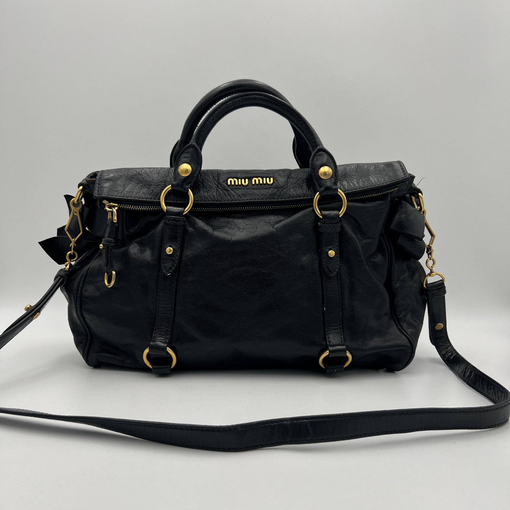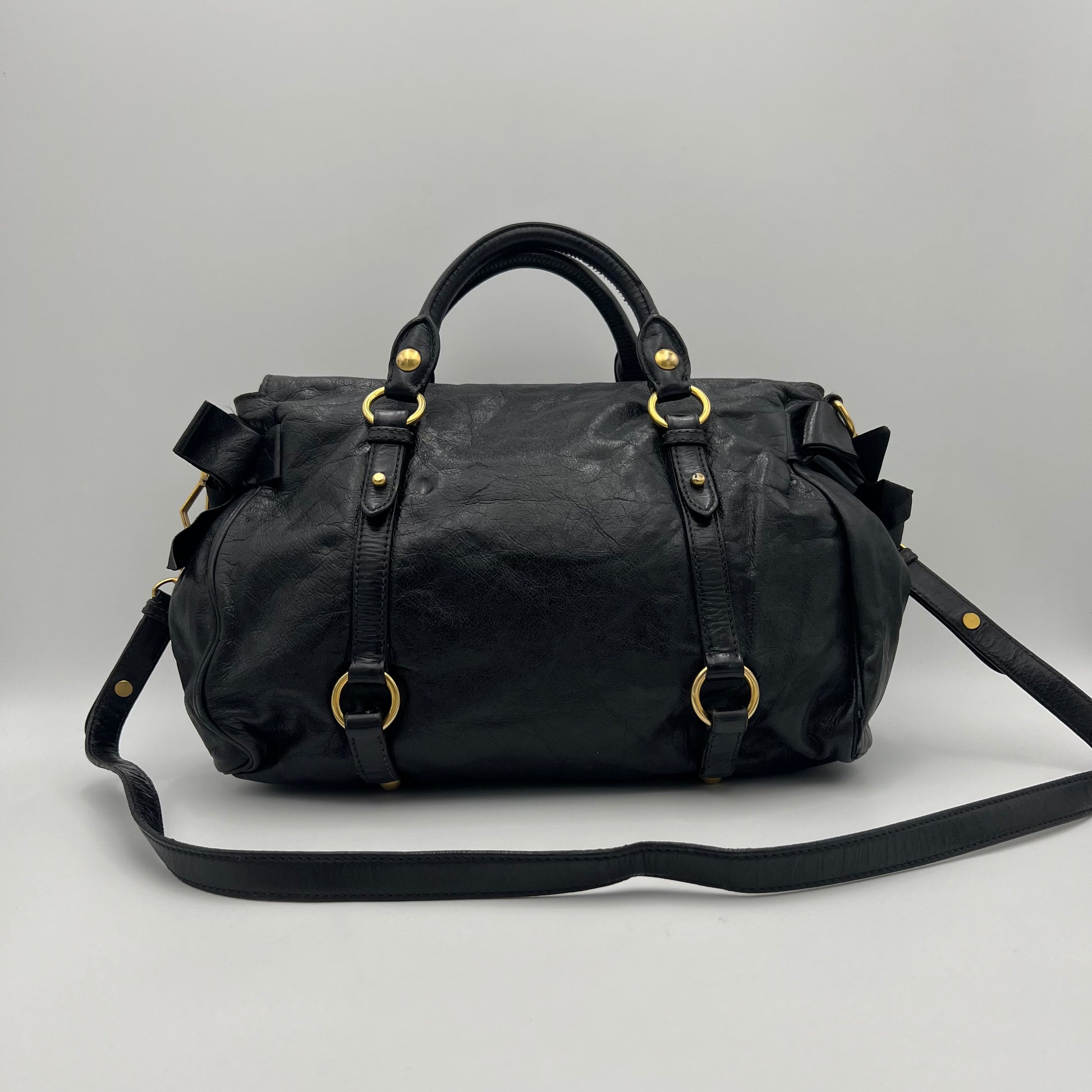 Miu Miu Black Lux Vitello Bow Satchel Bag
