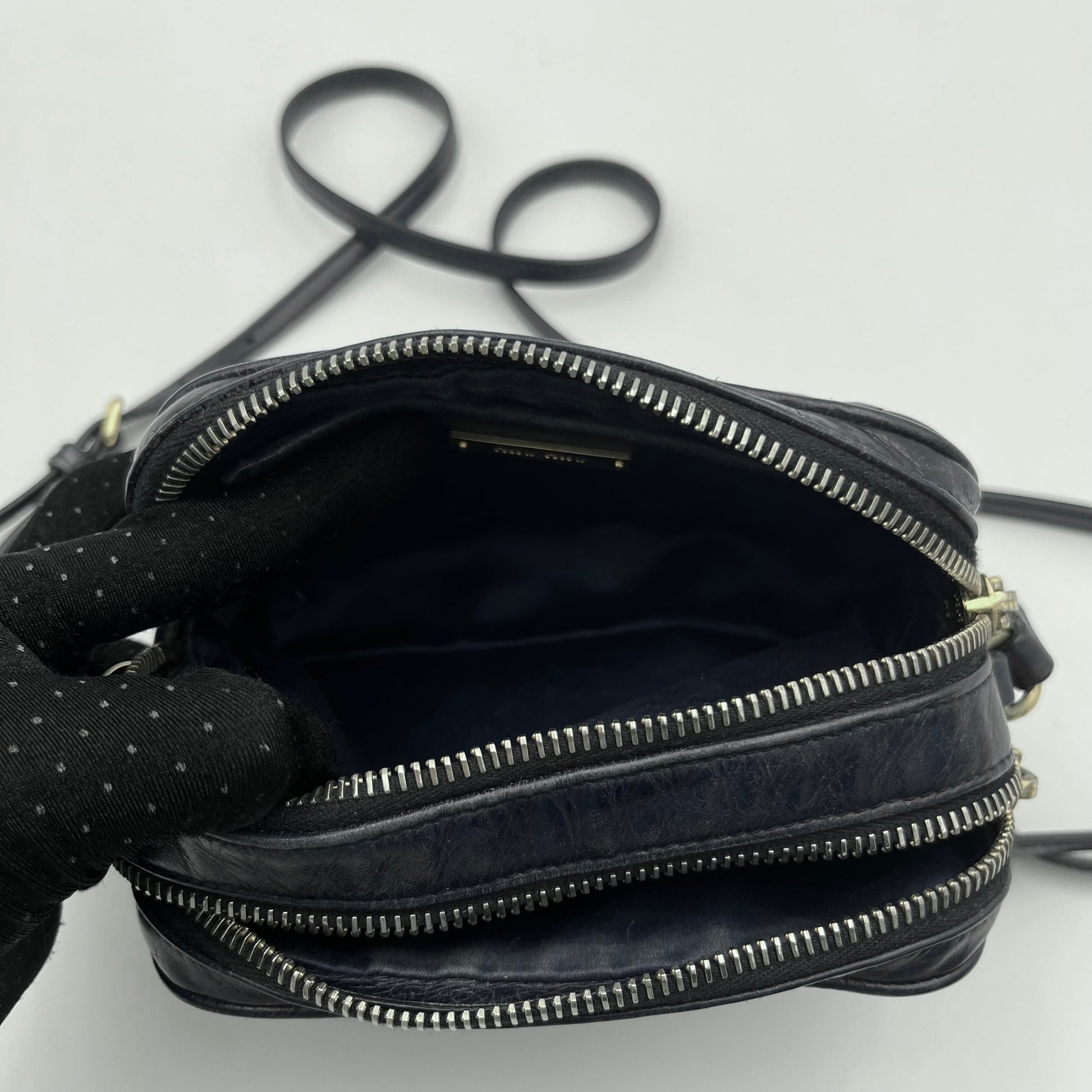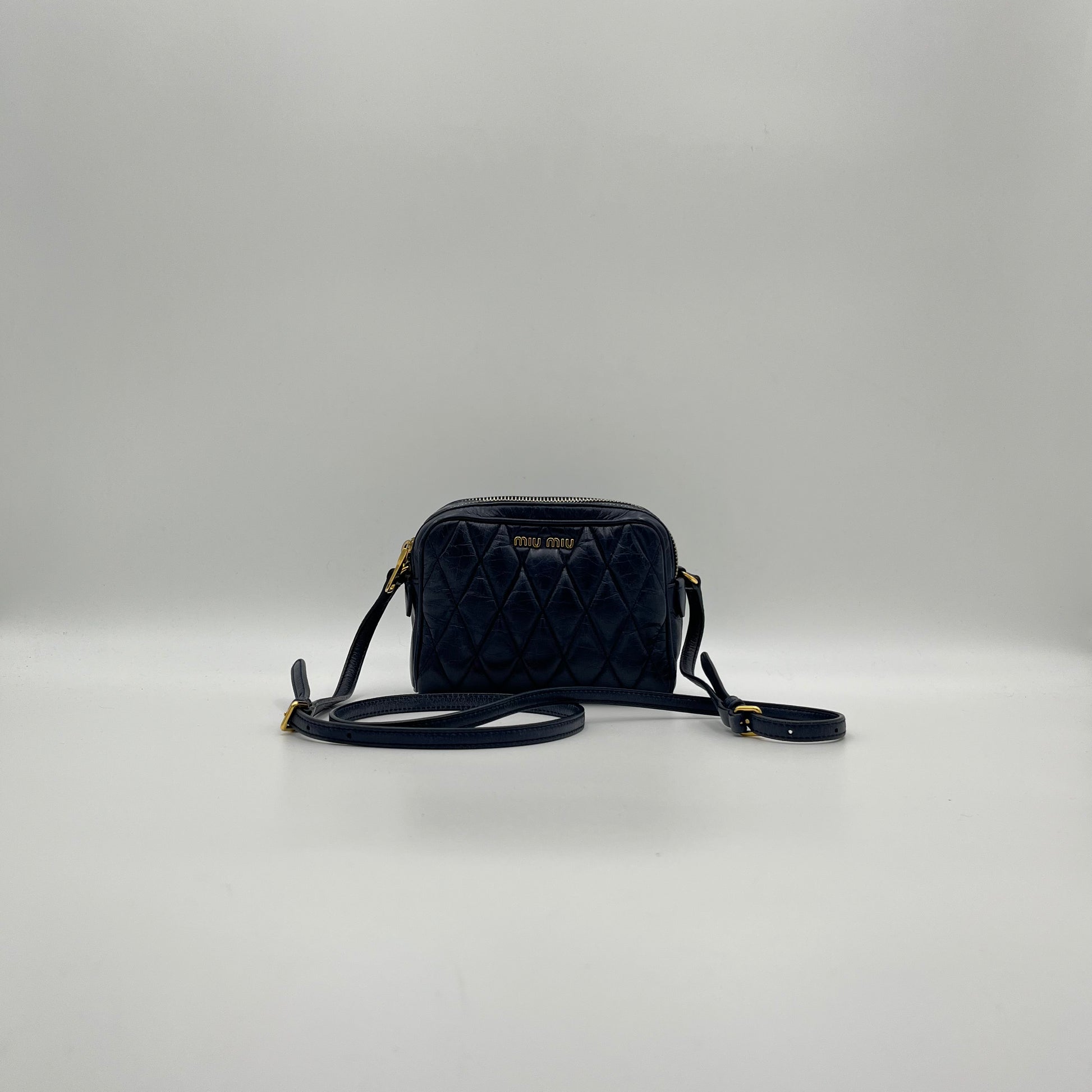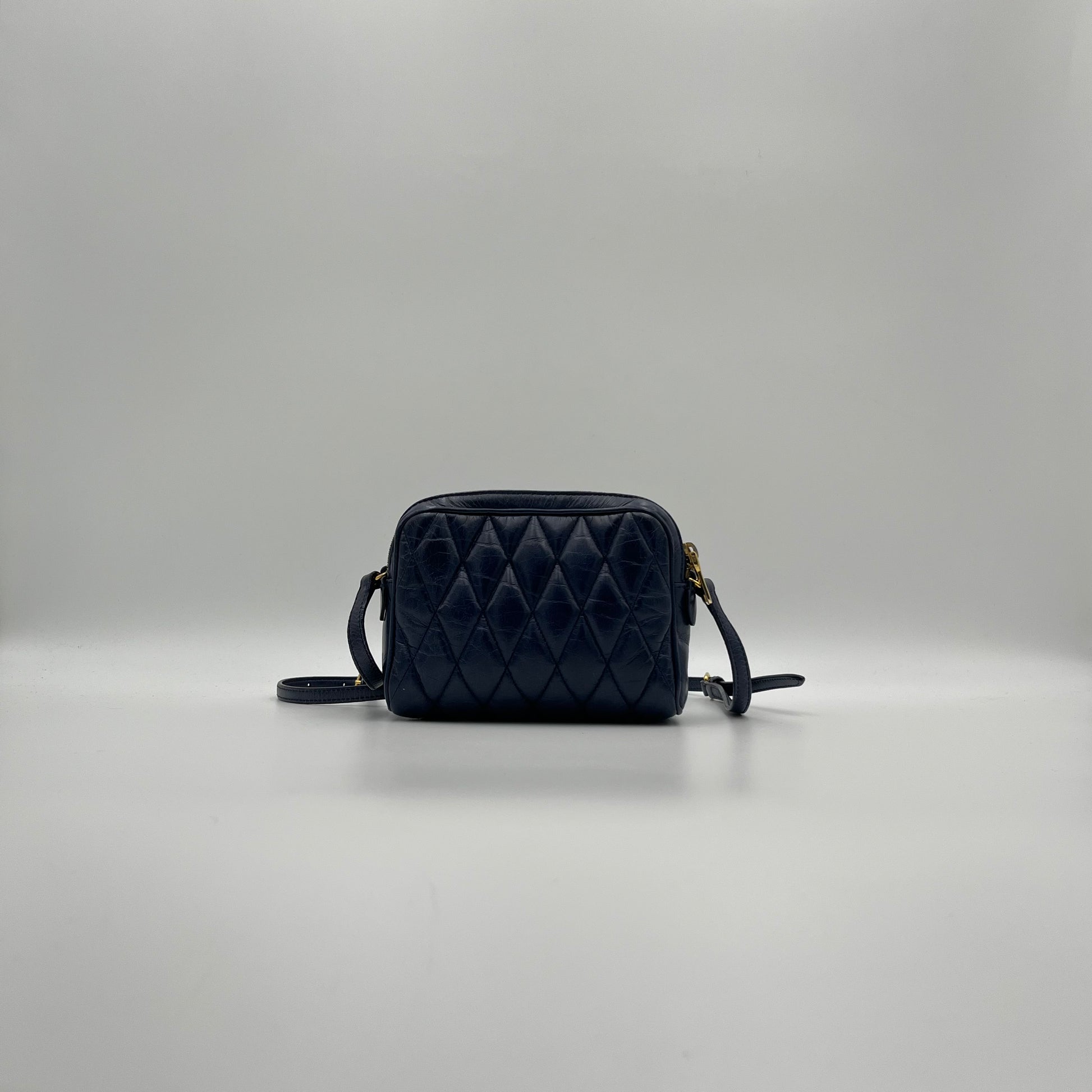 Miu Miu Blue Quilted Vitello Shine Mini Camera Crossbody