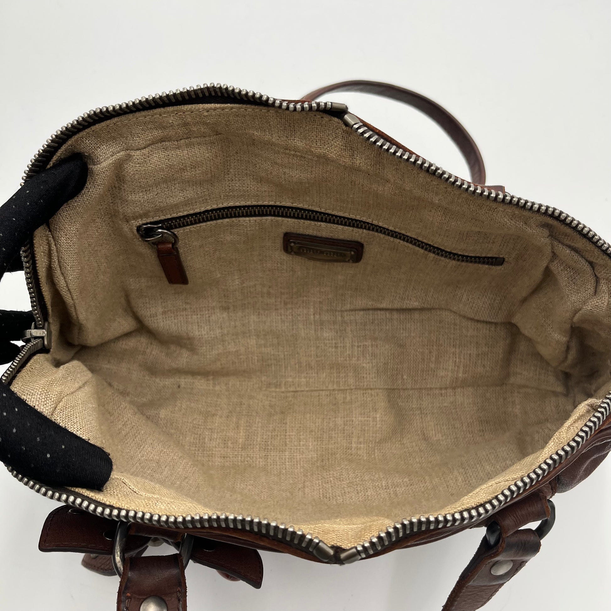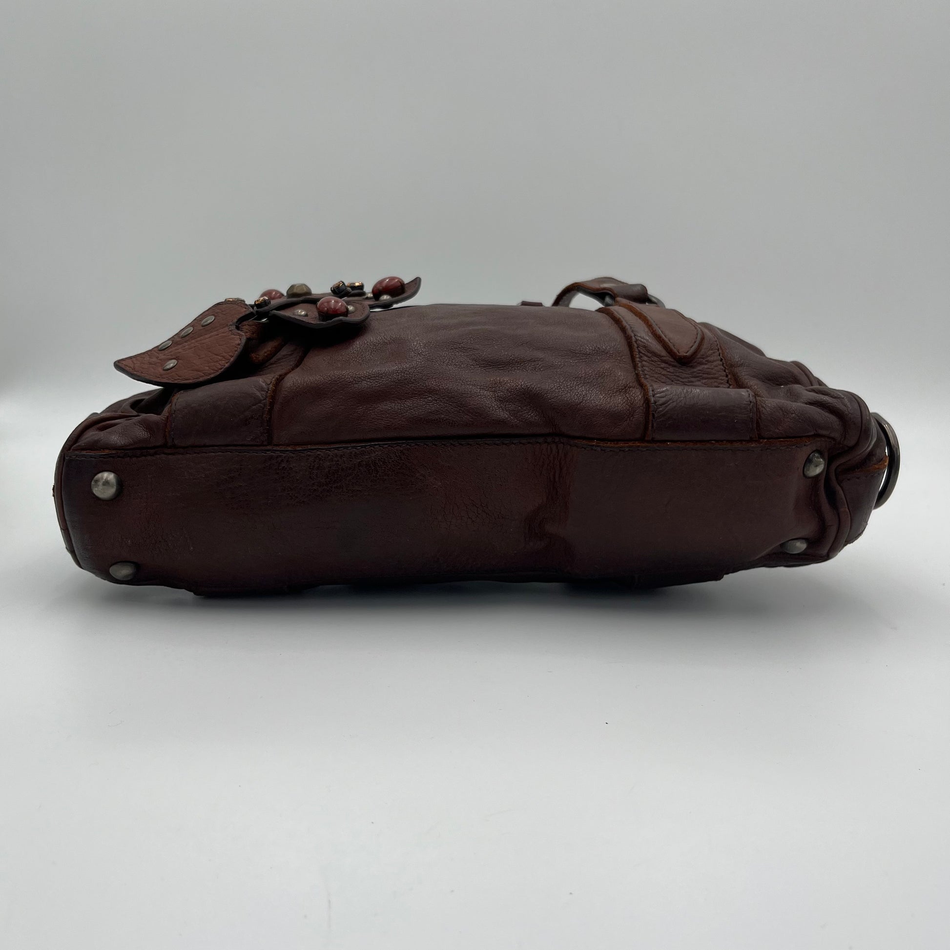 Miu Miu Brown Leather Studded Floral Applique Handbag