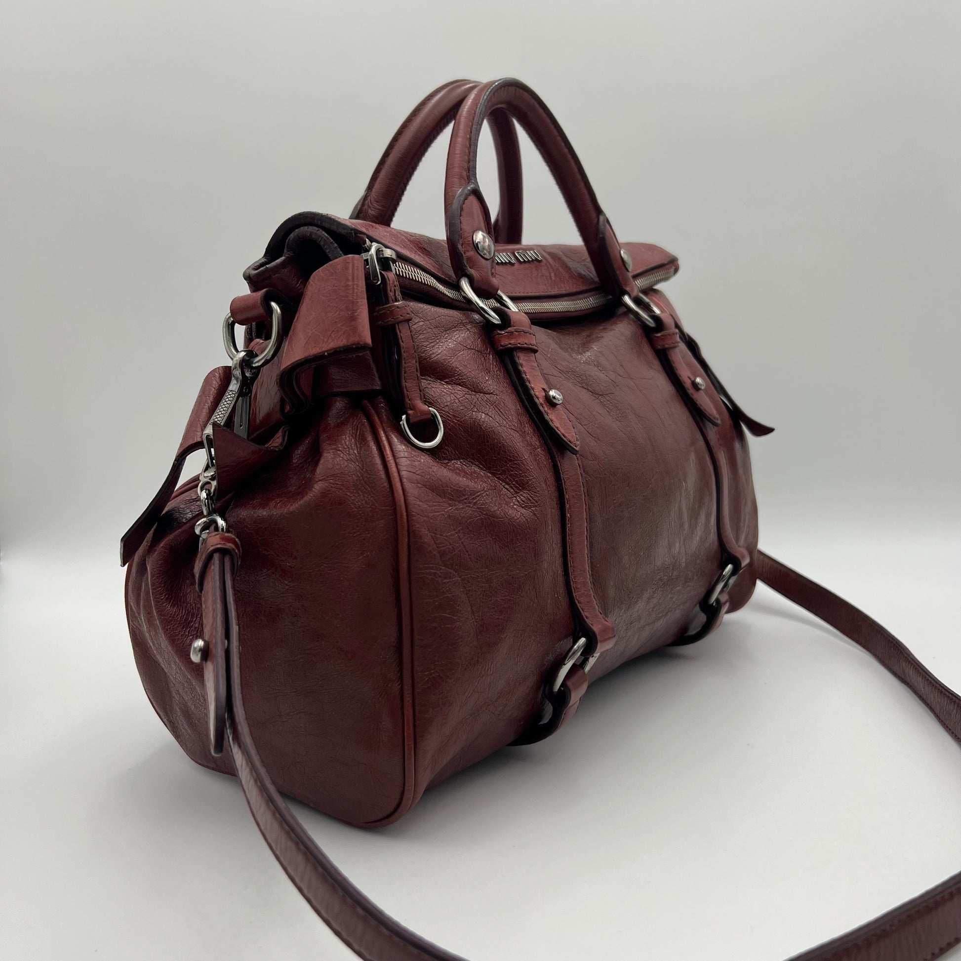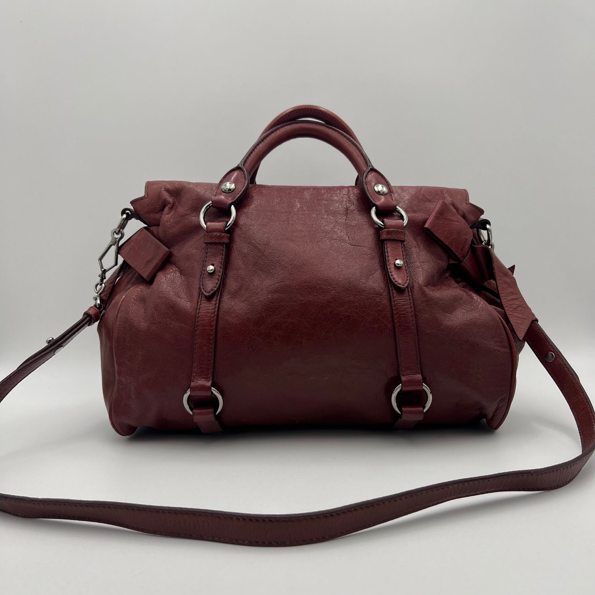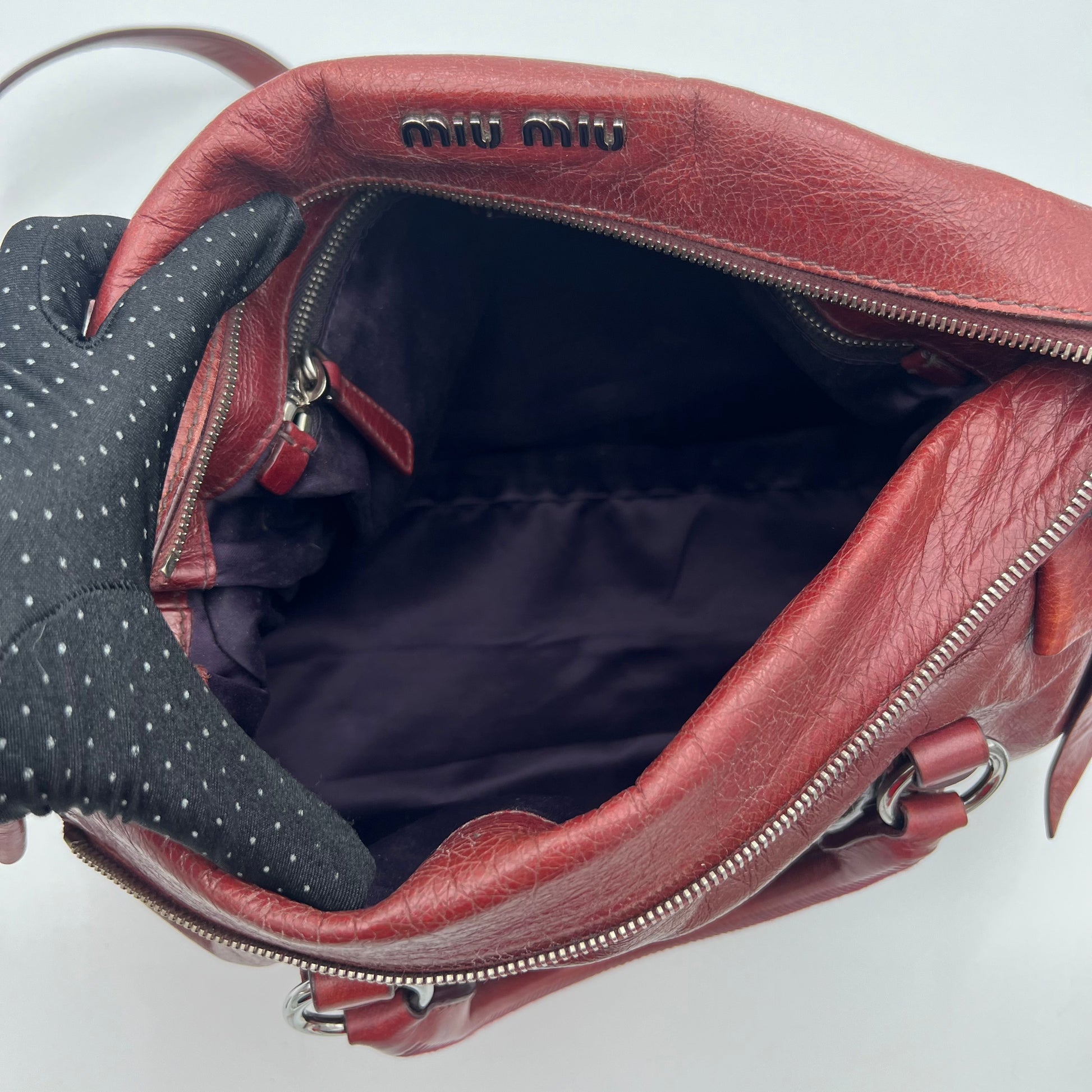 Miu Miu Burgundy Lux Vitello Bow Satchel Bag