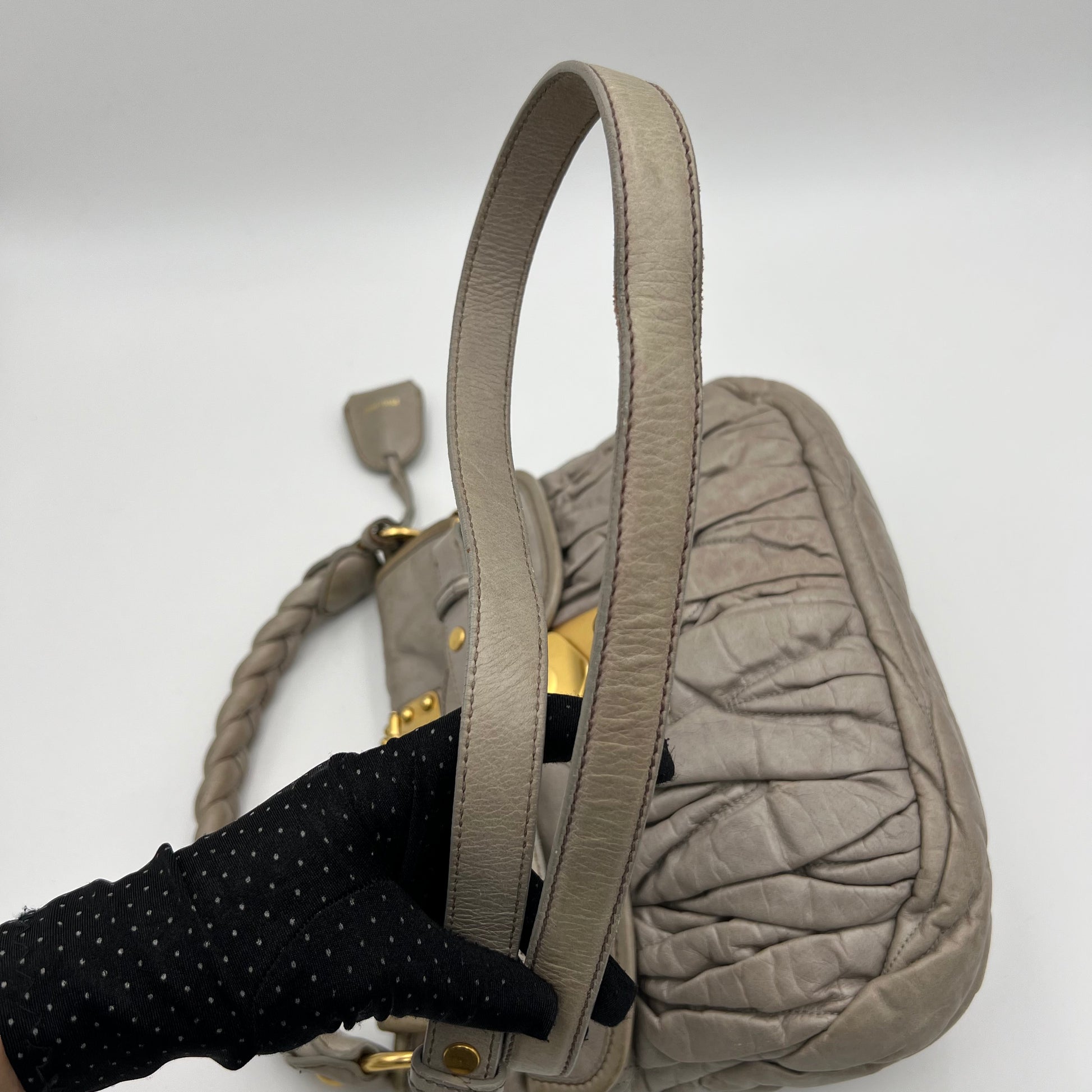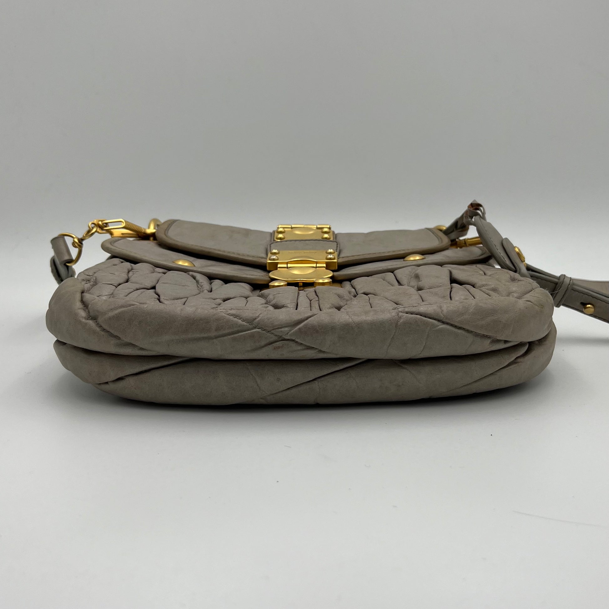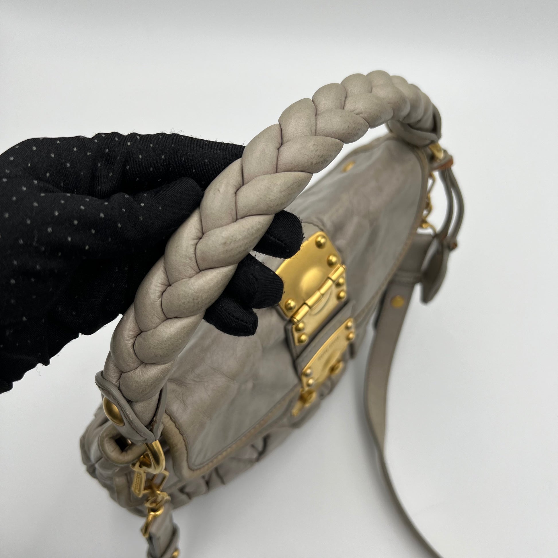 Miu Miu Light Gray Coffer Leather Matelasse Small Two-Way Bag