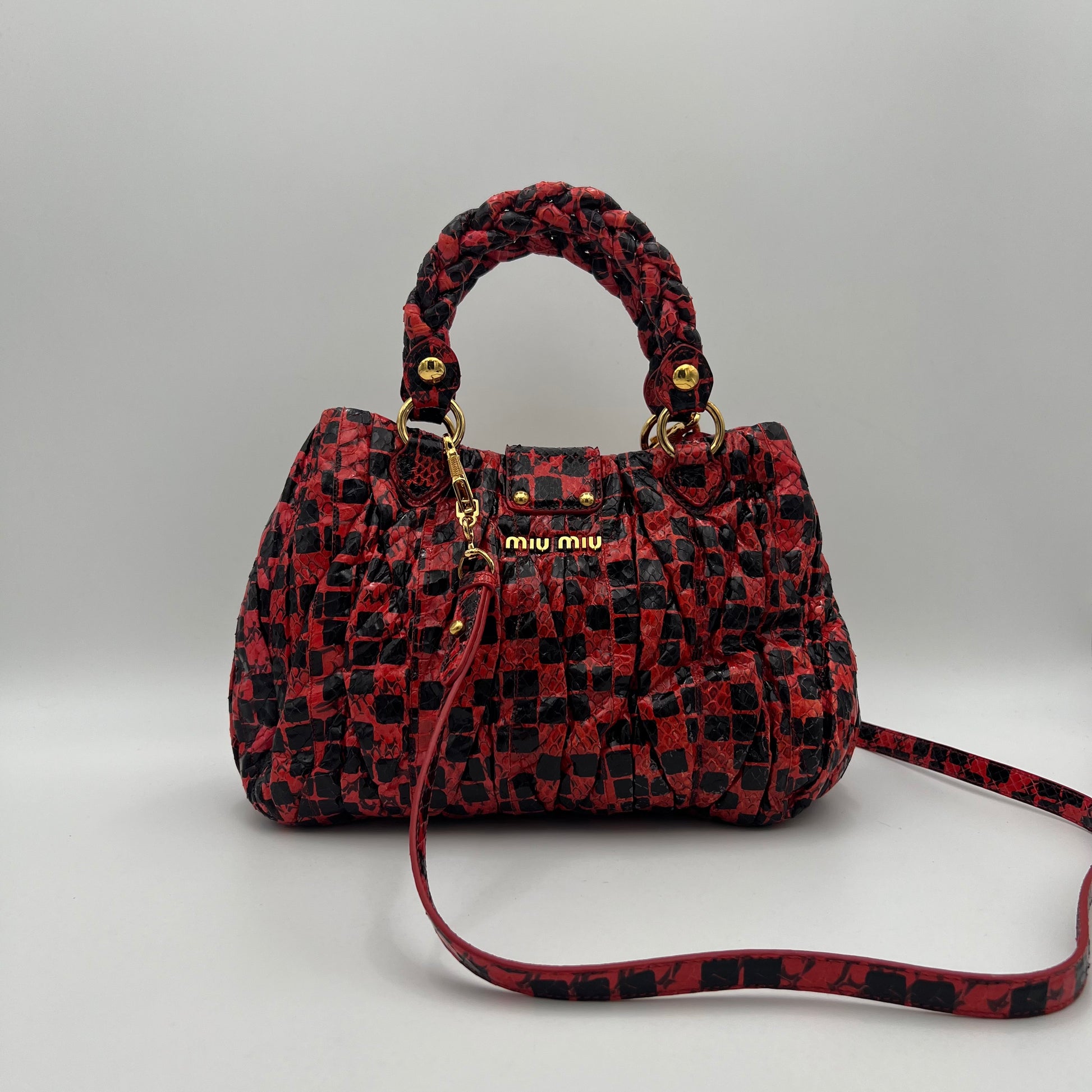 Miu Miu Red and Black Python Leather Coffer Handbag