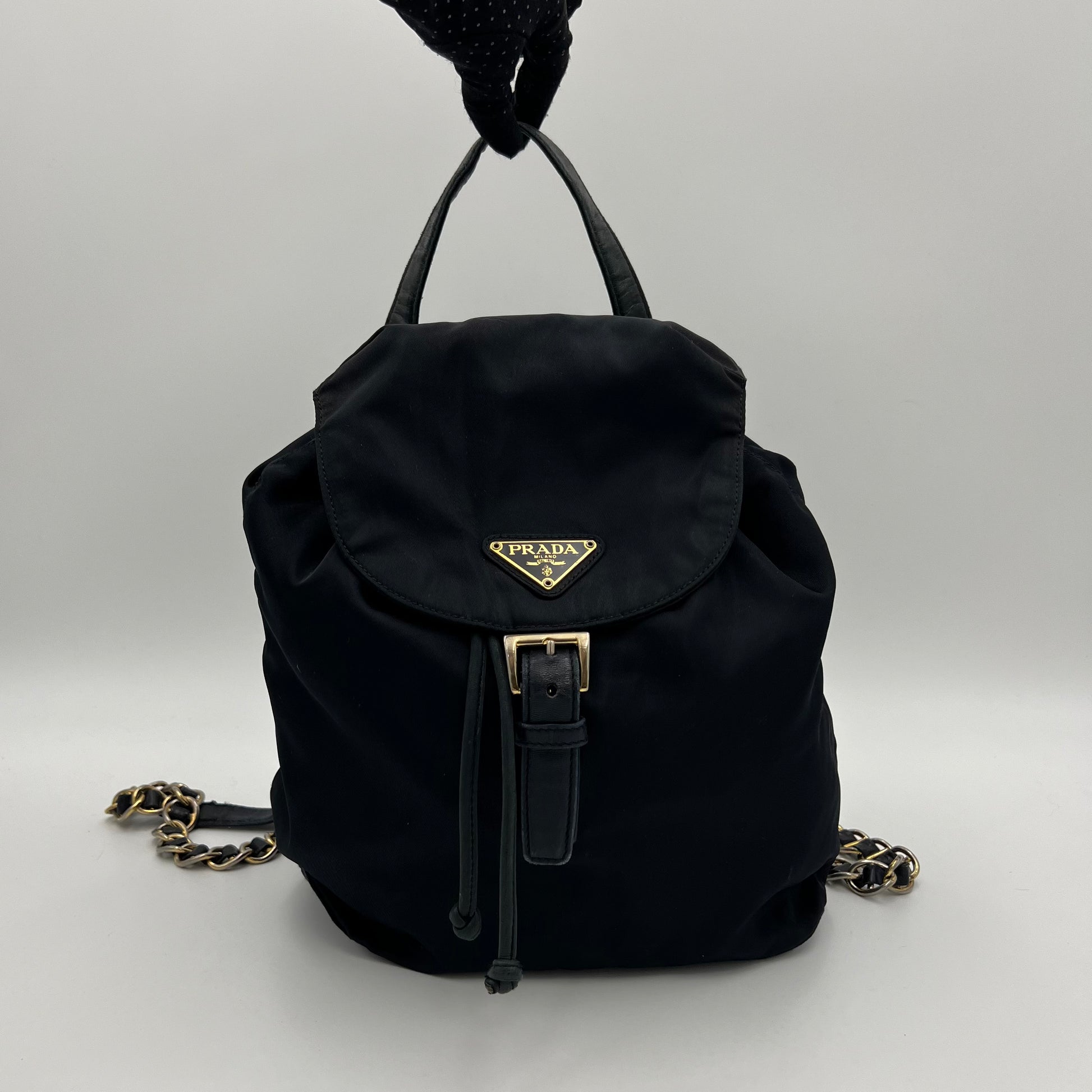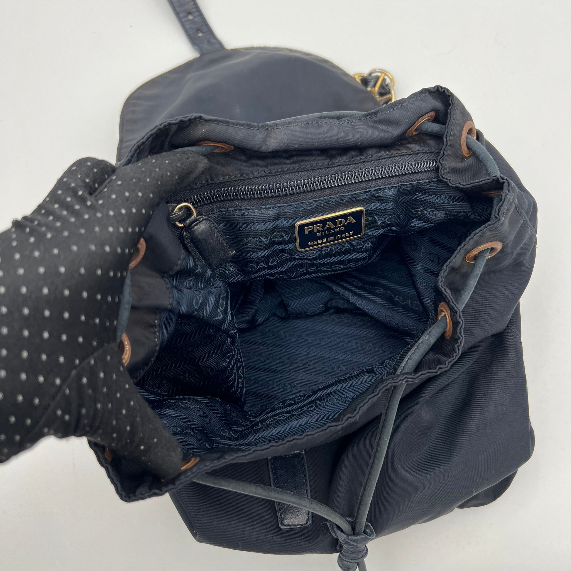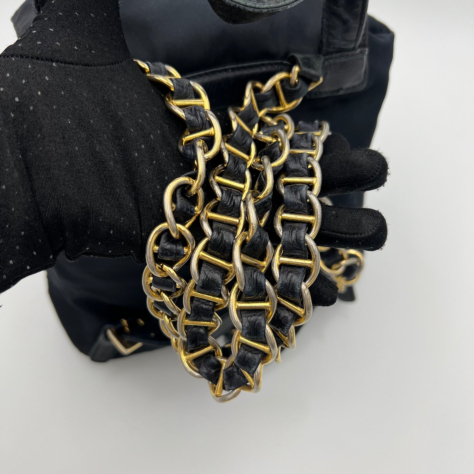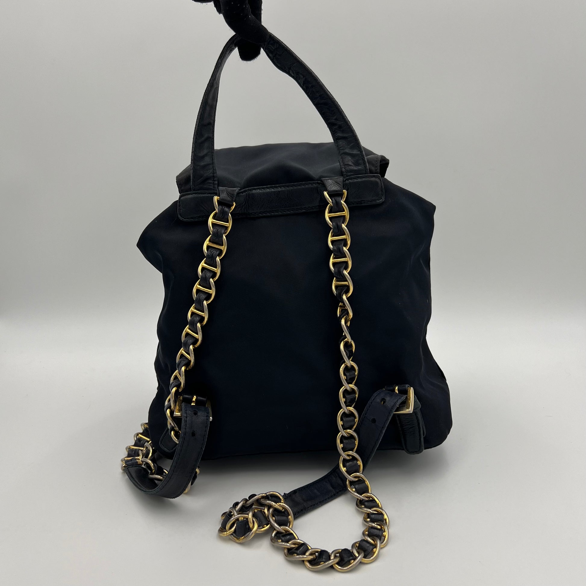 Prada Dark Blue Nylon and Leather Chain Backpack