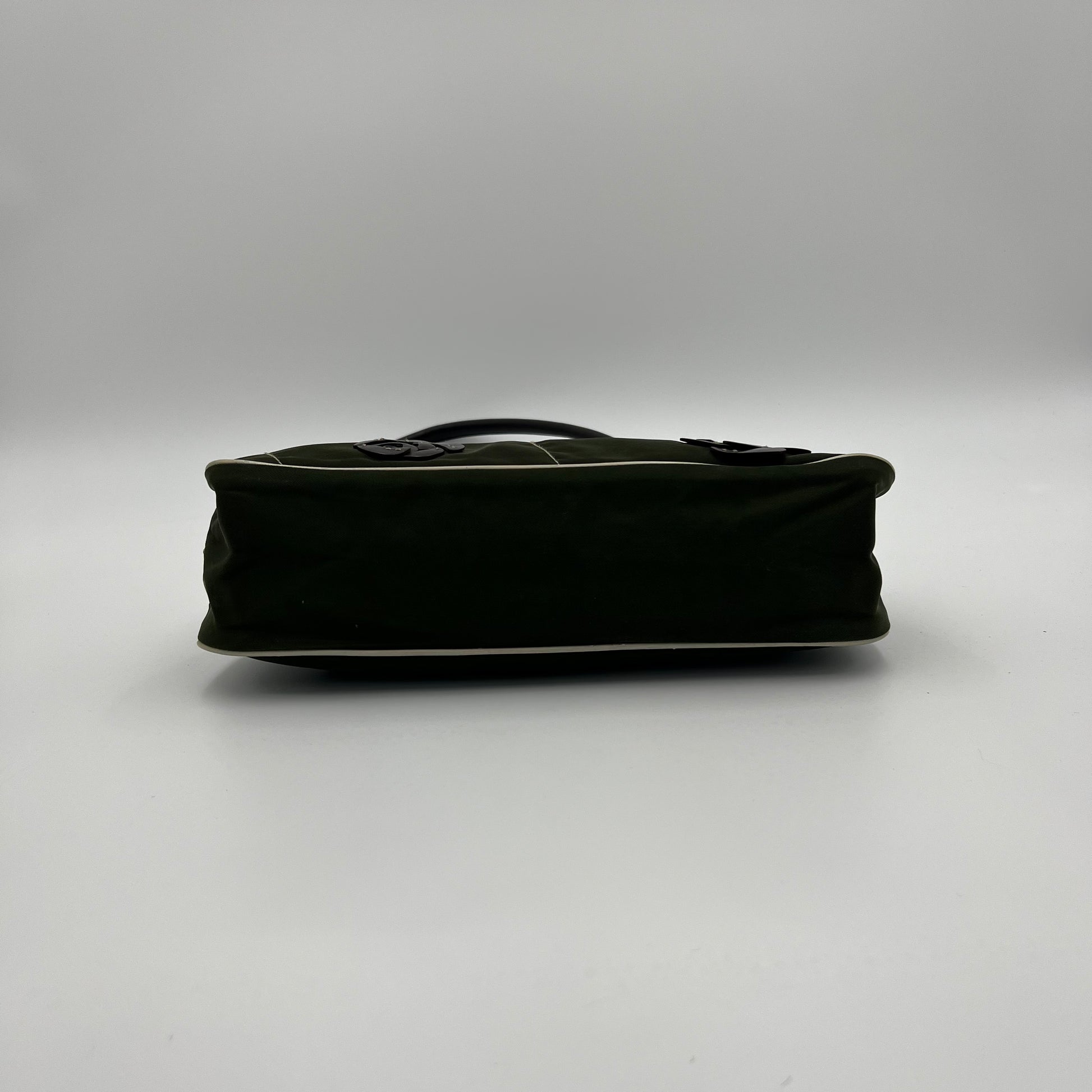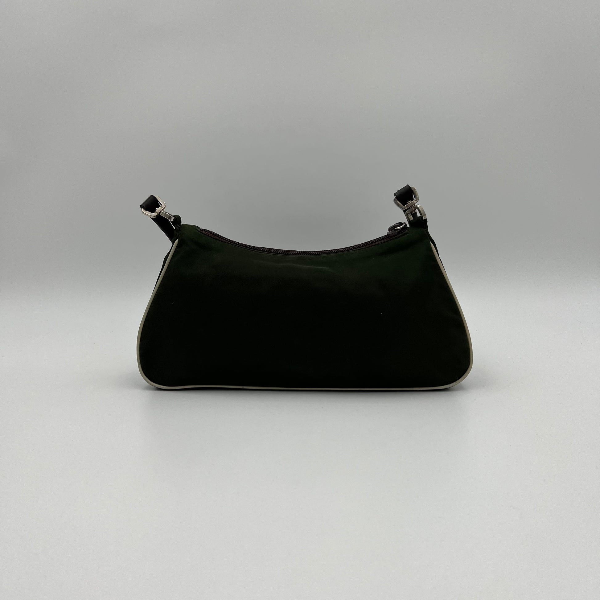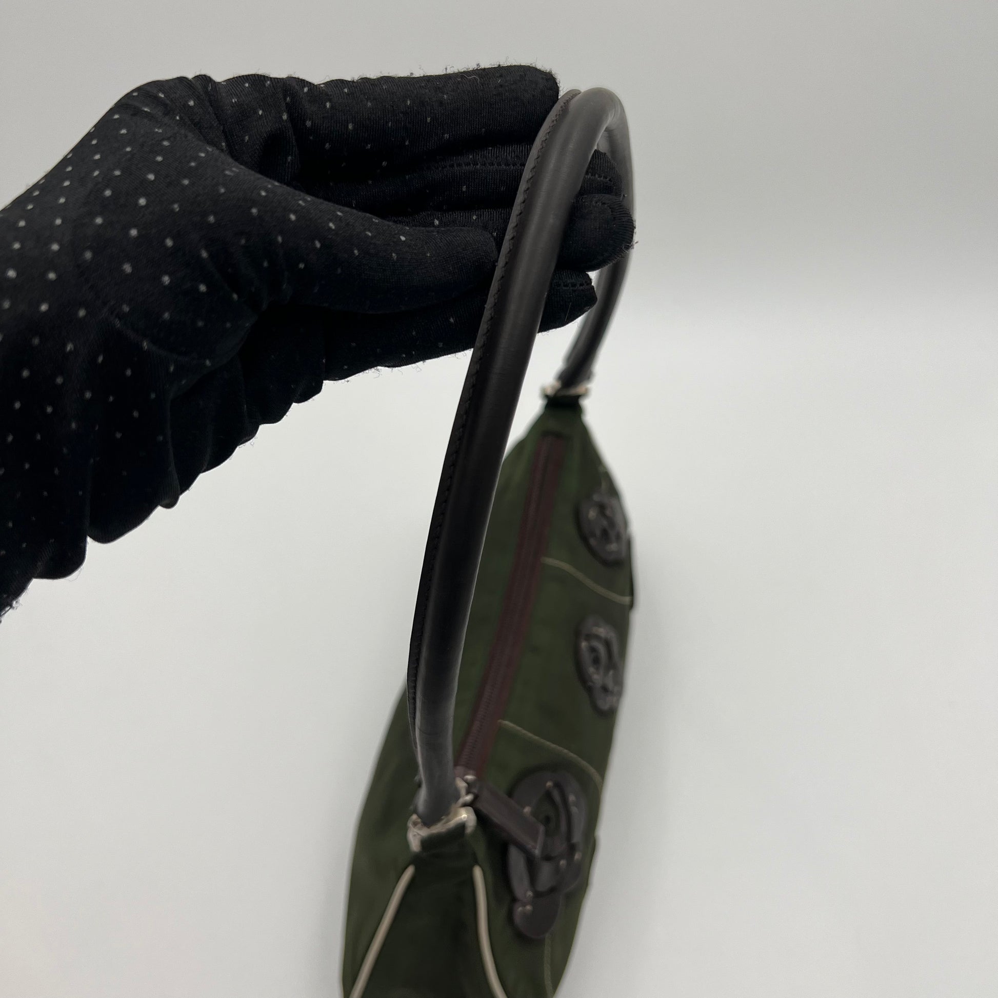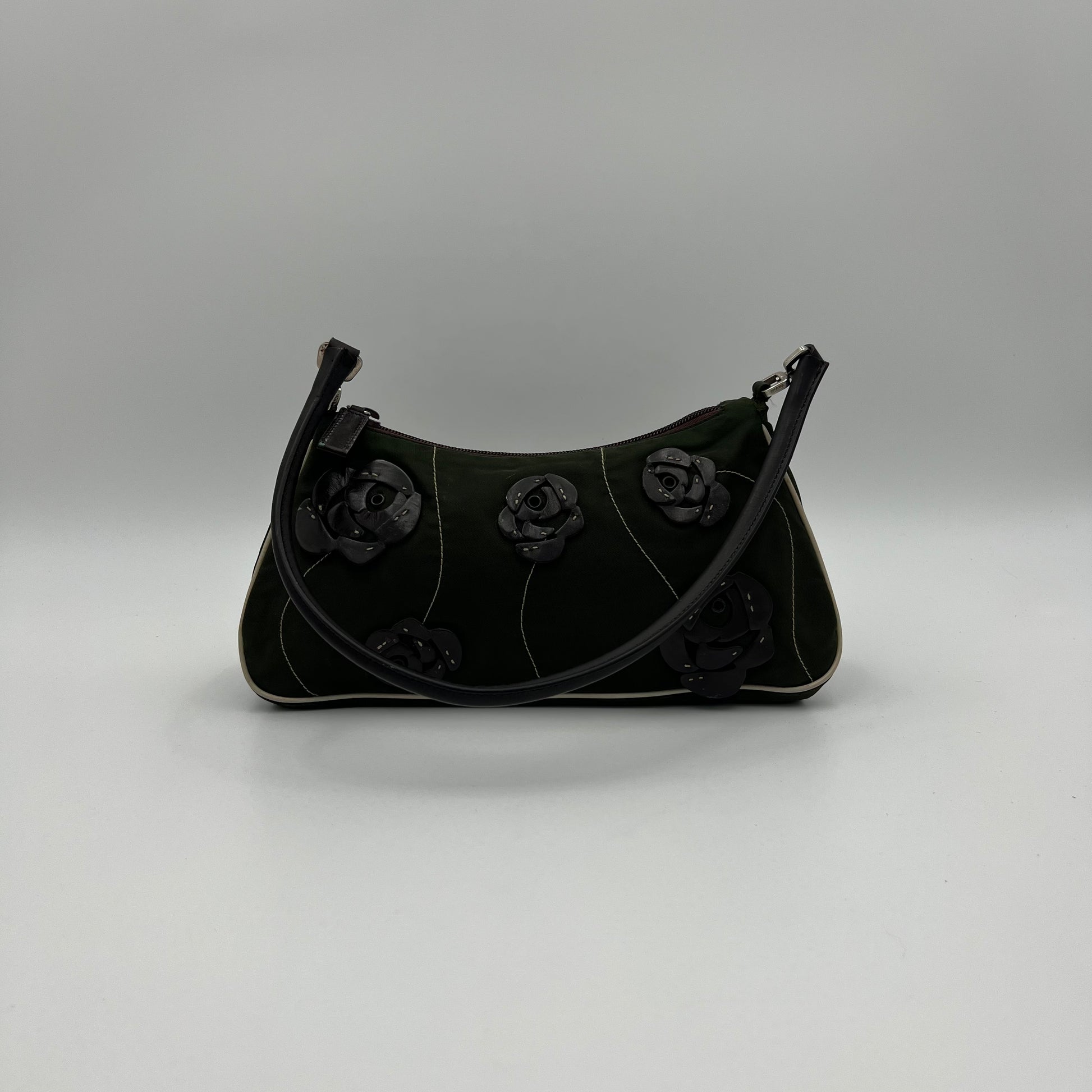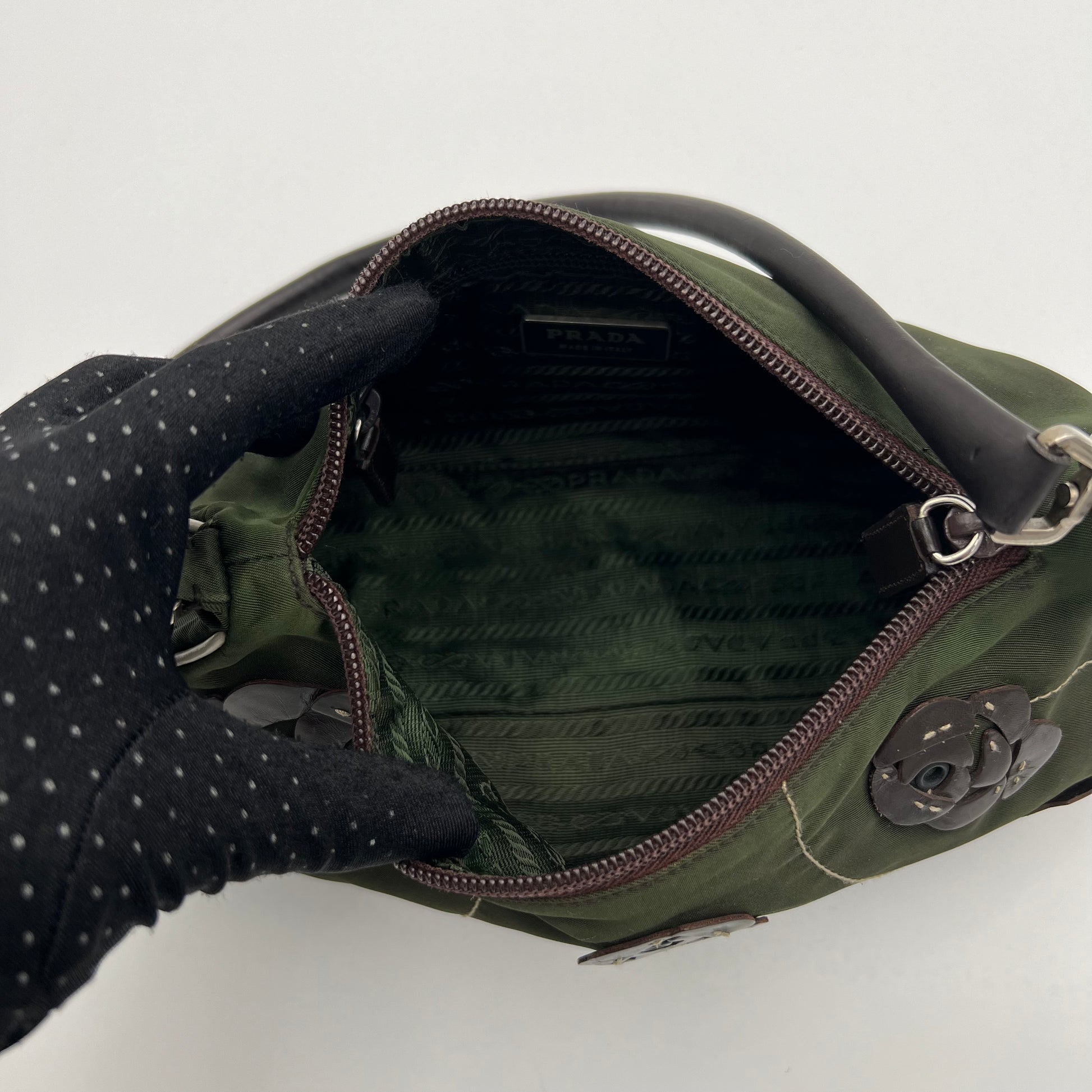 Prada Green Nylon and Leather Floral Applique Shoulder Bag