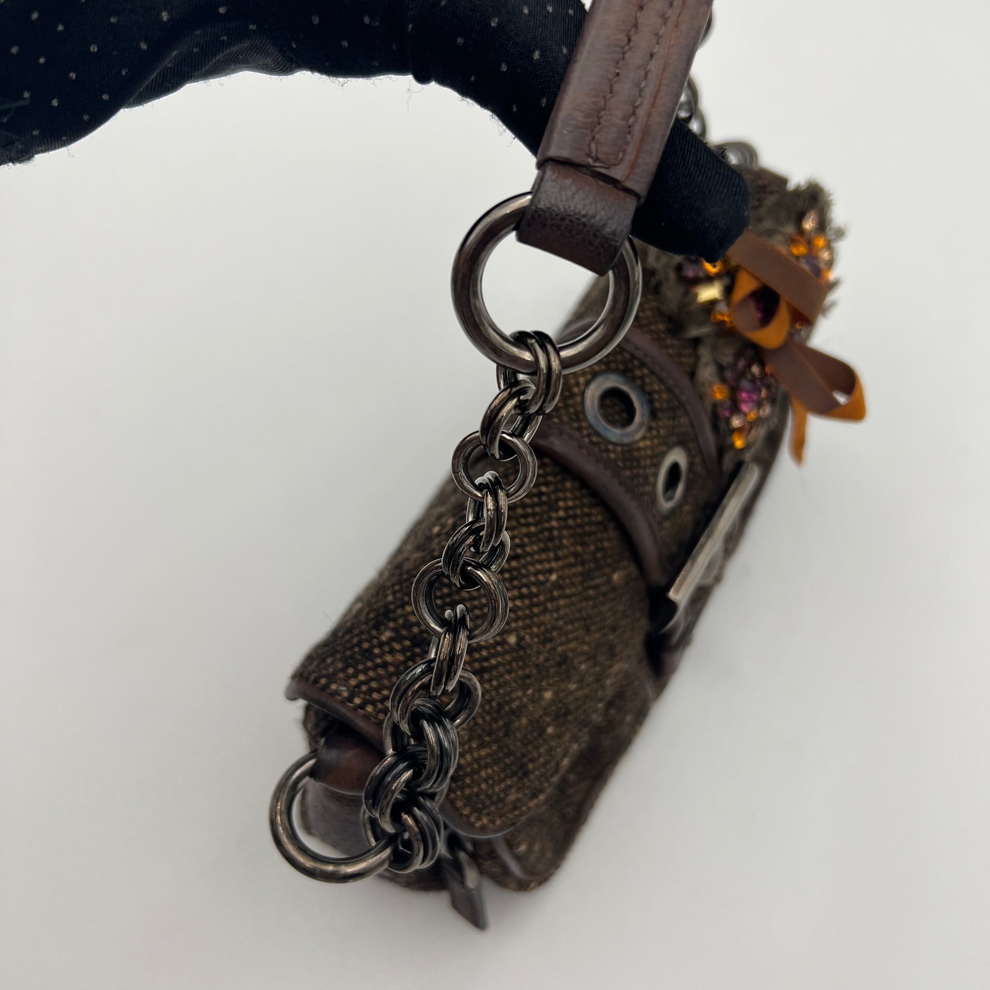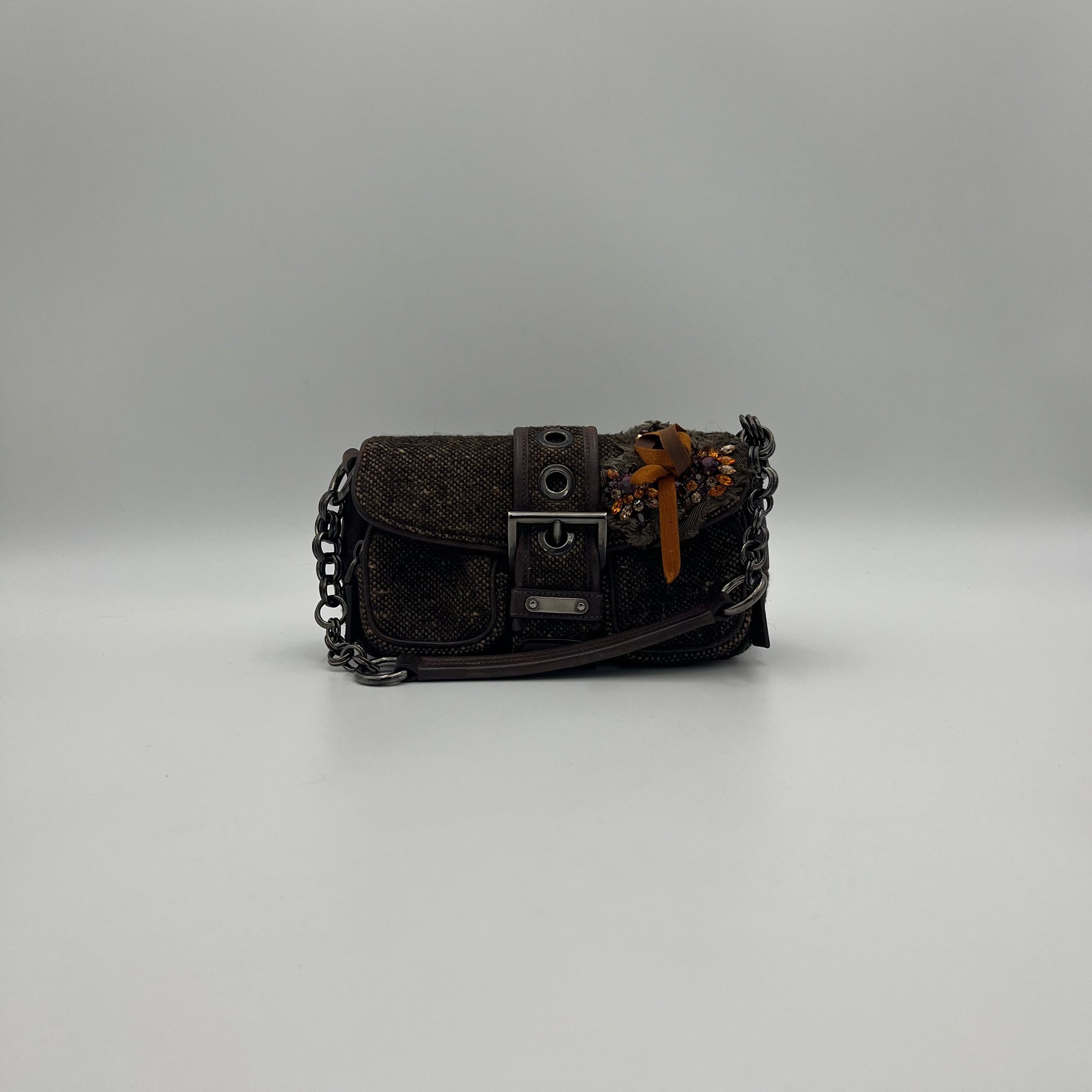 Prada Tweed Ricamo Crystal Applique Shoulder Bag