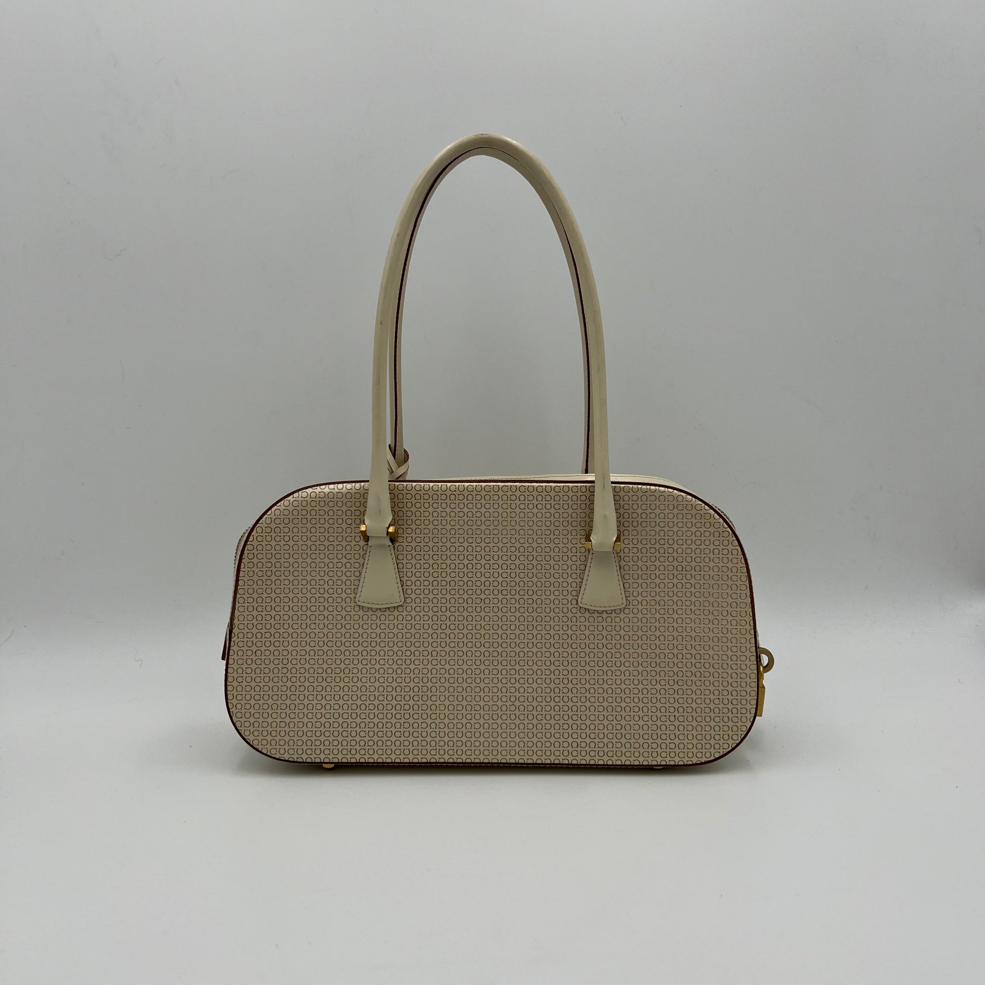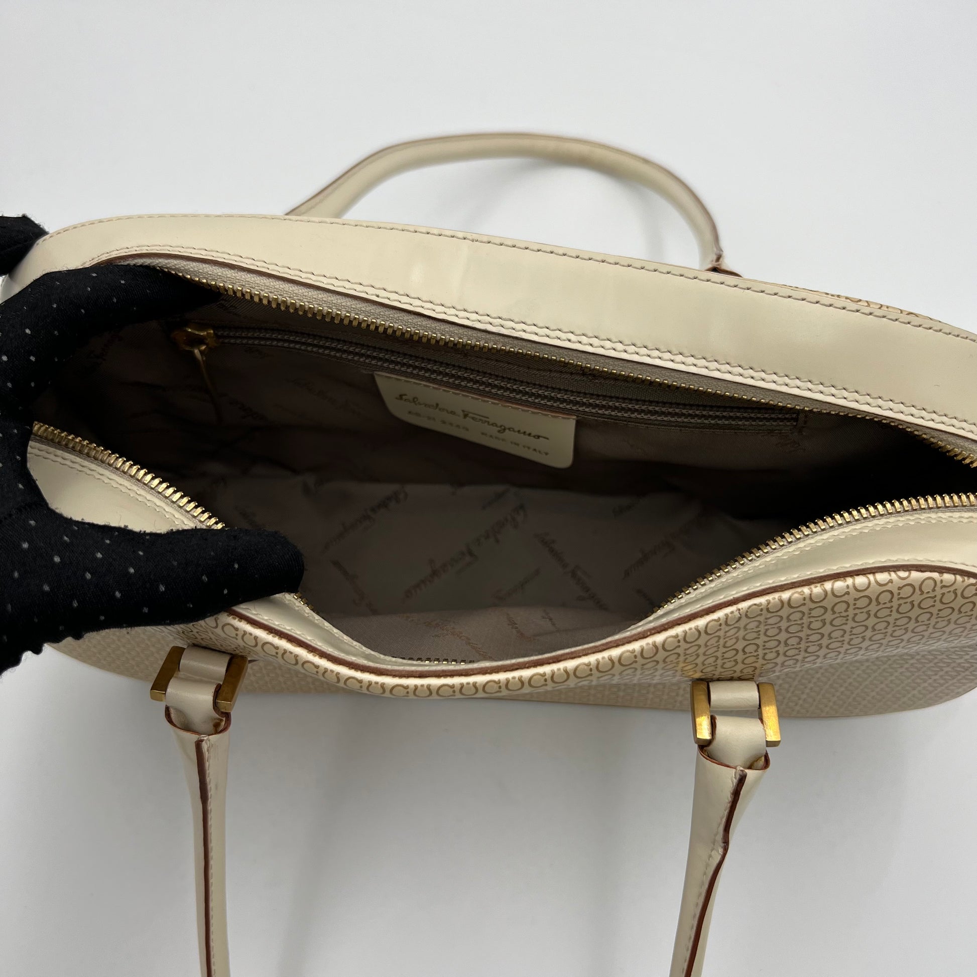 Salvatore Ferragamo Beige Monogram Patent Leather Bauletto
