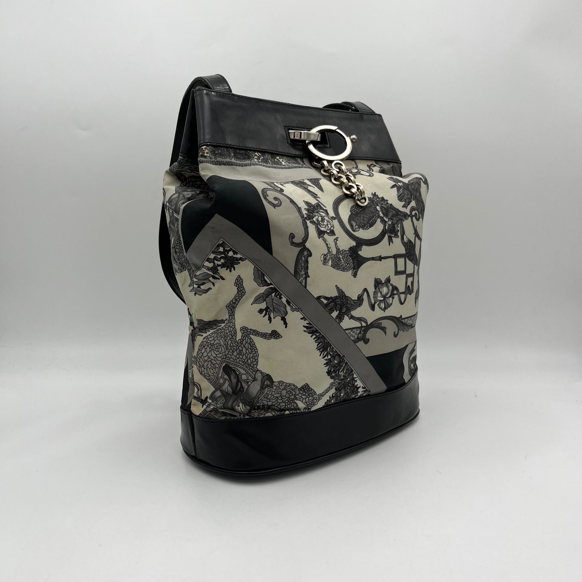 Salvatore Ferragamo Vintage Gray Printed Tote Bag