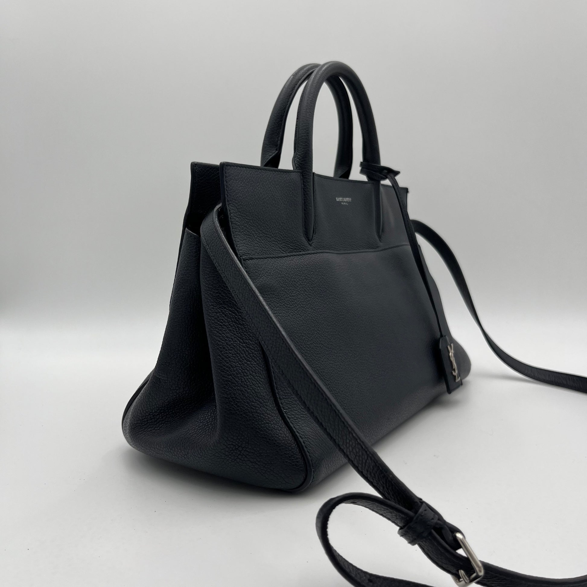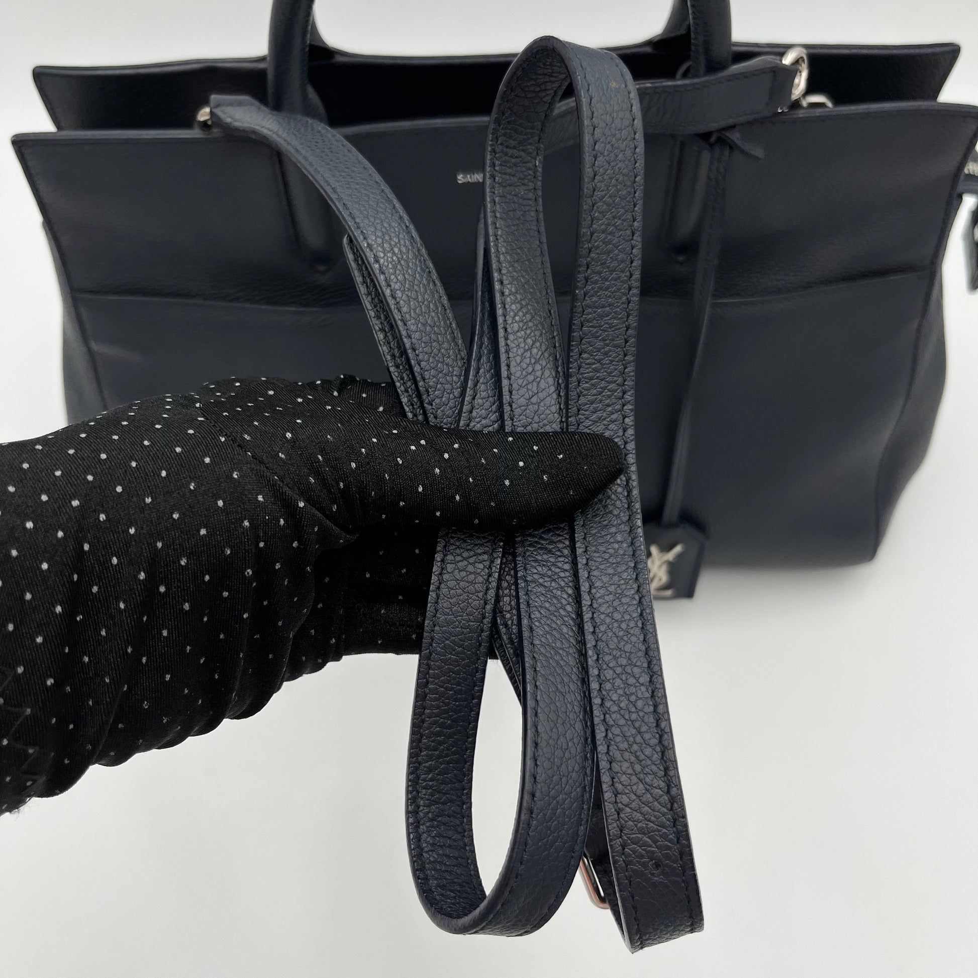 YSL Navy Blue Leather Rive Gauche Cabas Small Tote