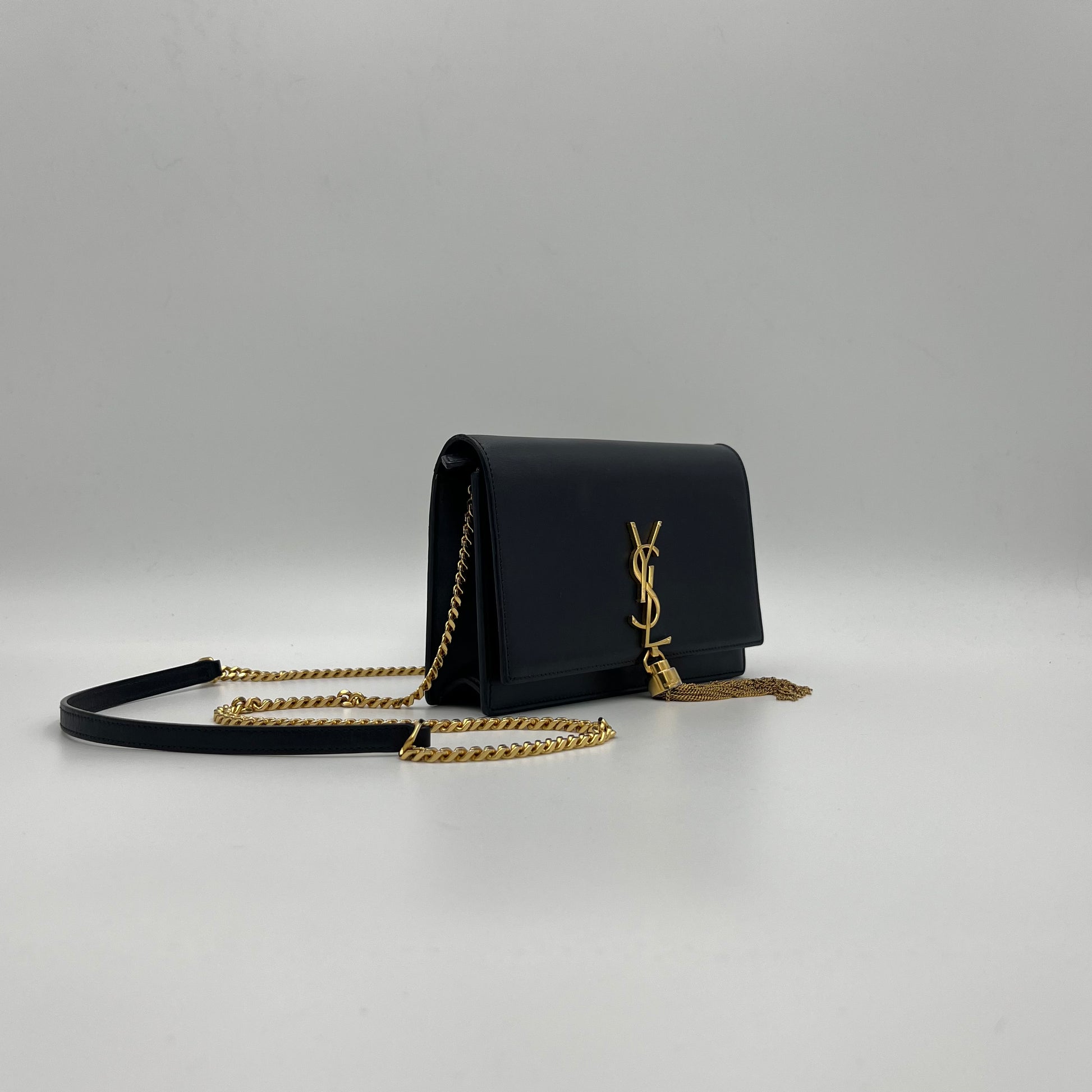 YSL Navy Blue Smooth Calfskin Small Kate Tassel Chain Bag w/ dust bag